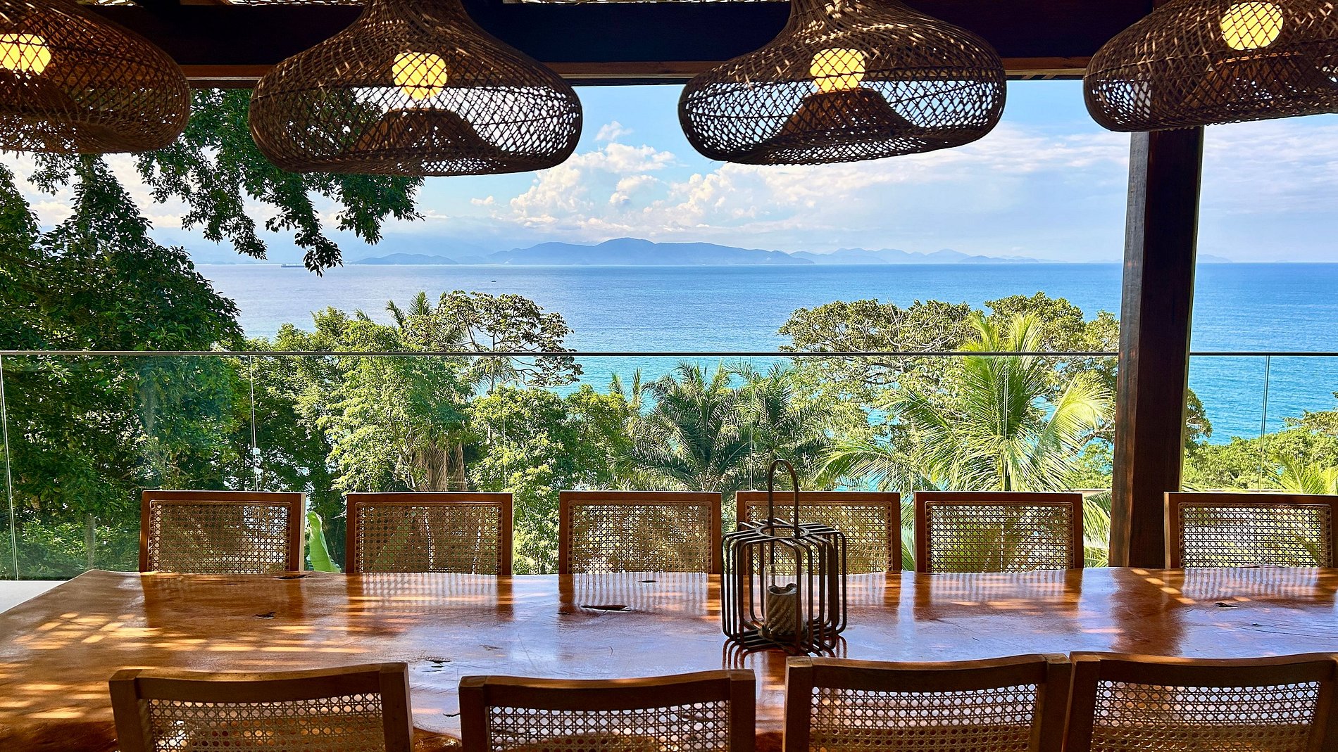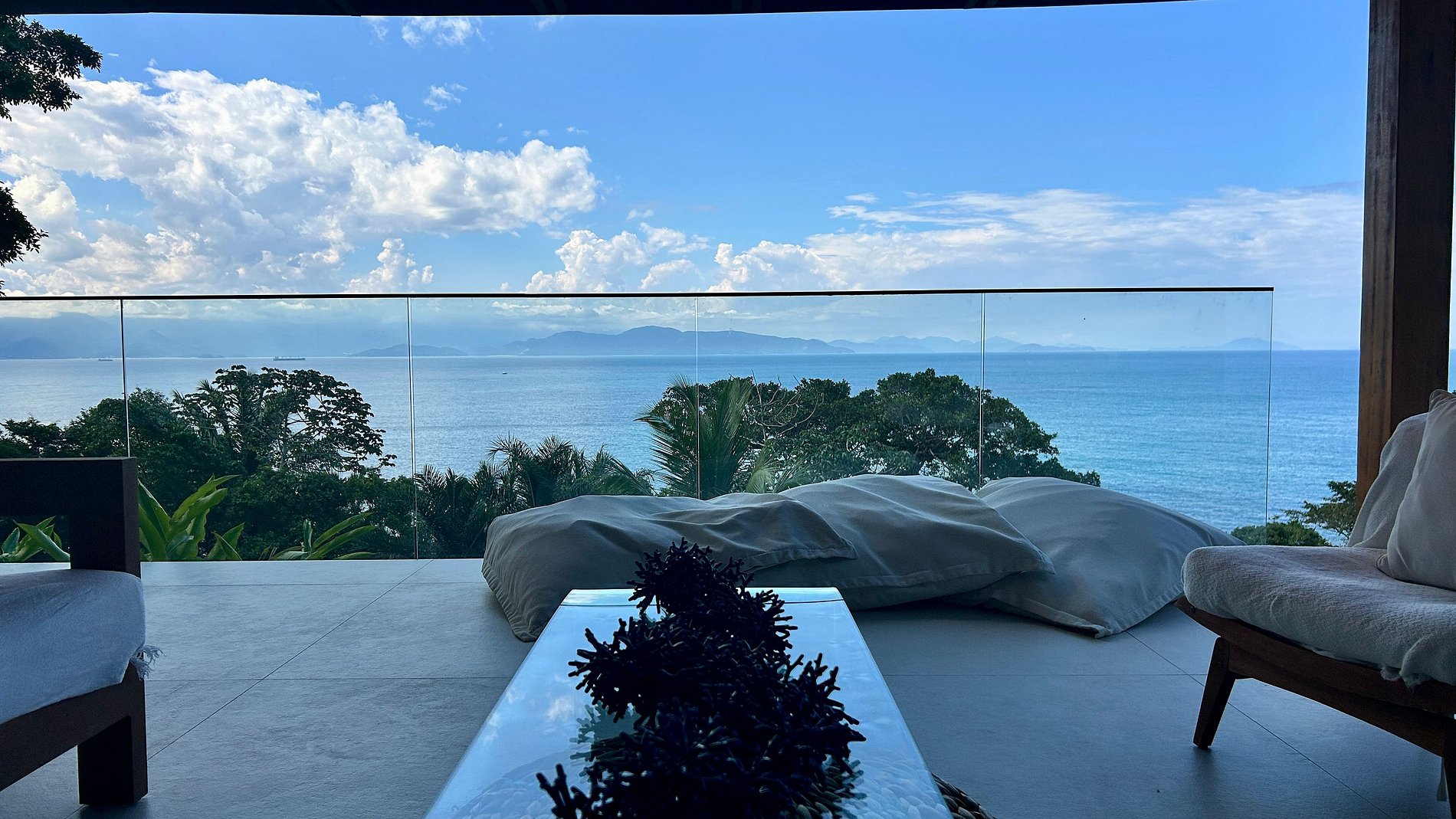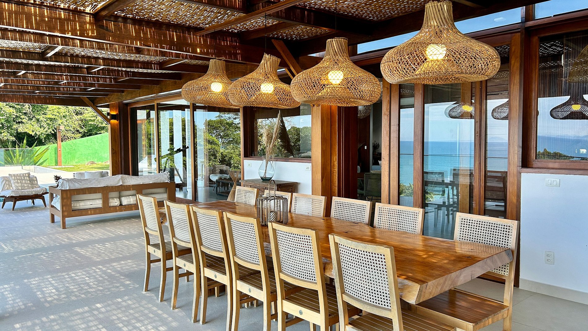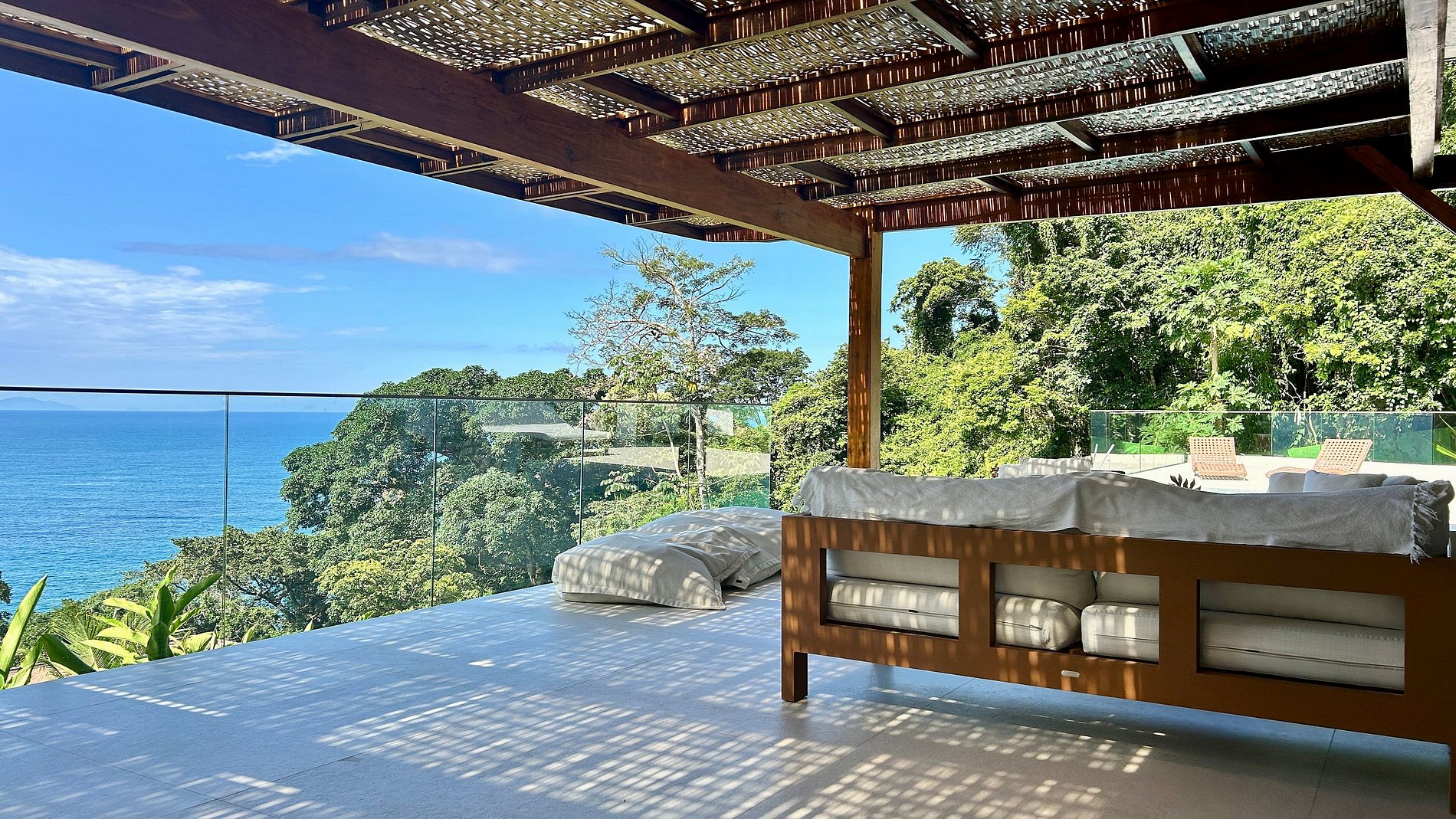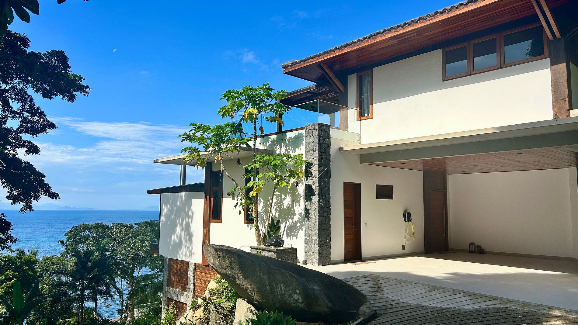 Experiência inesquecível no Norte de Ilhabela. Casa moderna, confortável, com vista panorâmica de todos os cômodos, no condomínio Praia de Pacuíba, que tem acesso direto e privativo à praia. Para até 10 pessoas. São 4 suítes com ar-condicionado. Integrada à natureza, área interna com salas de TV, estar, jantar e cozinha em conceito aberto. Smart TV e Wi-fi. Área externa, com ampla varanda gourmet, piscina aquecida com borda infinita, sauna, jacuzzi aquecida com deck de madeira. É pet friendly!