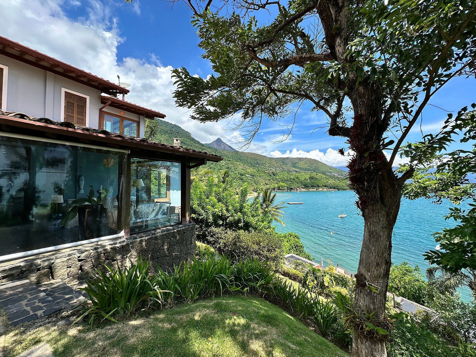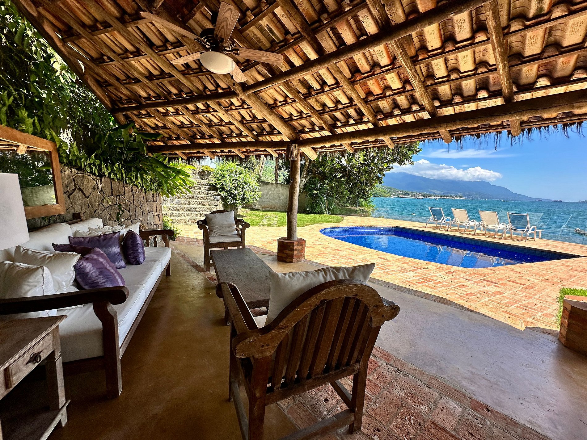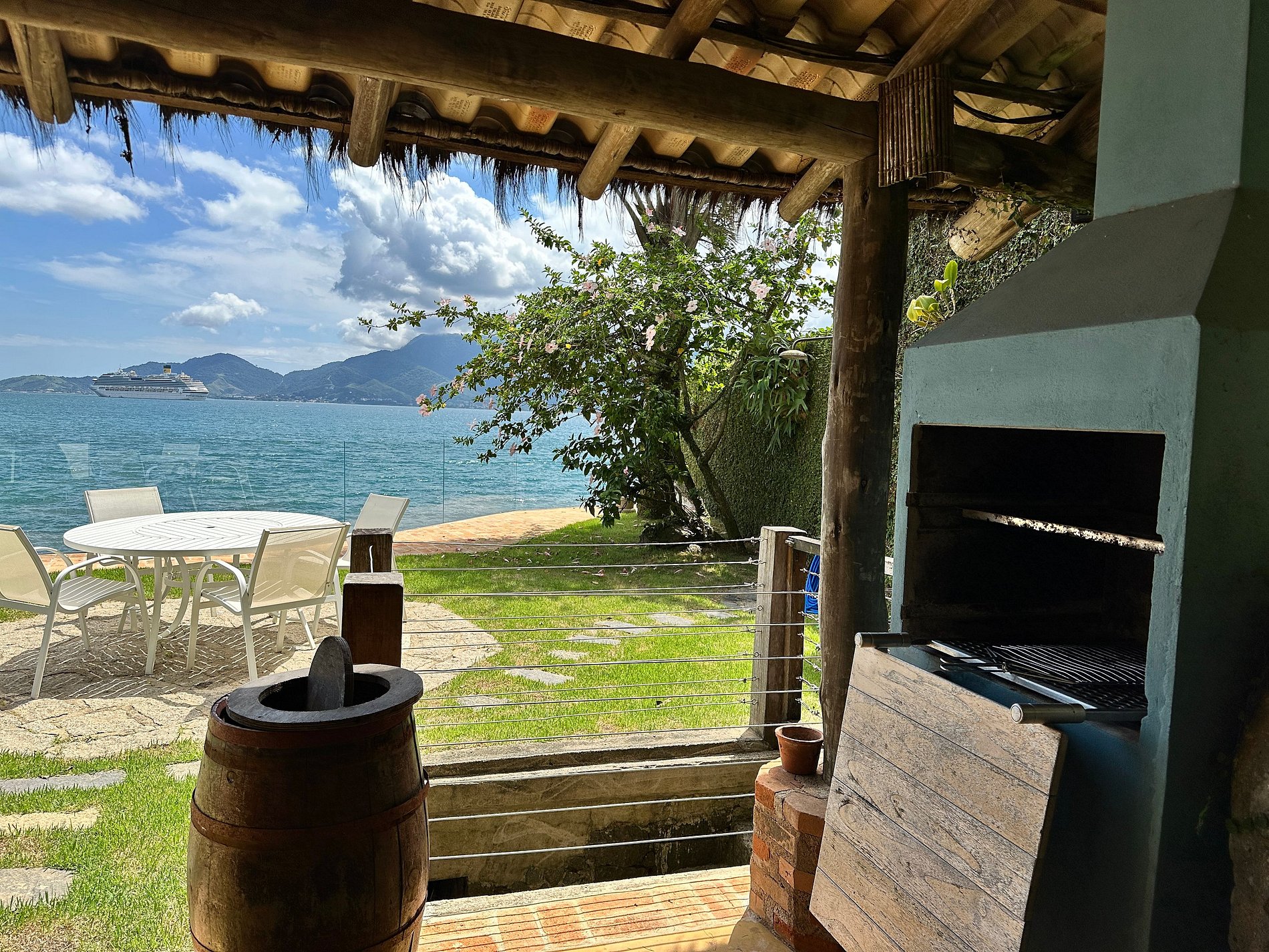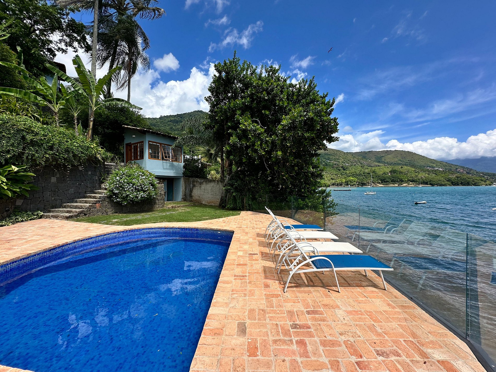 Experiência incrível à beira-mar, a poucos passos da praia do Barreiro, ao Norte de Ilhabela. Casa voltada para o mar, com uma das vistas mais deslumbrantes da ilha. Próxima ao Yatch Club e Viana. Ideal para 8 pessoas. São 3 suítes e 2 quartos com ar-condicionado. Salas de TV, estar, jantar e cozinha em ambiente integrado. Smart e Wi-fi. Área externa com piscina, espreguiçadeiras, espaço gourmet com churrasqueira e deliciosa varanda, além de acesso à costeira e rampa para jetski. É pet friendly!