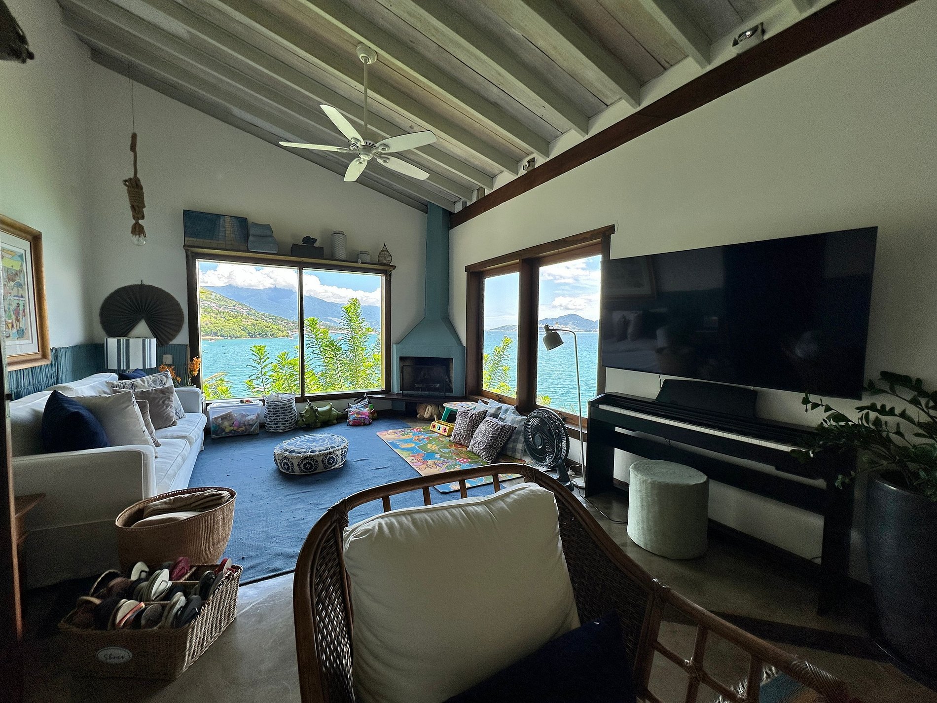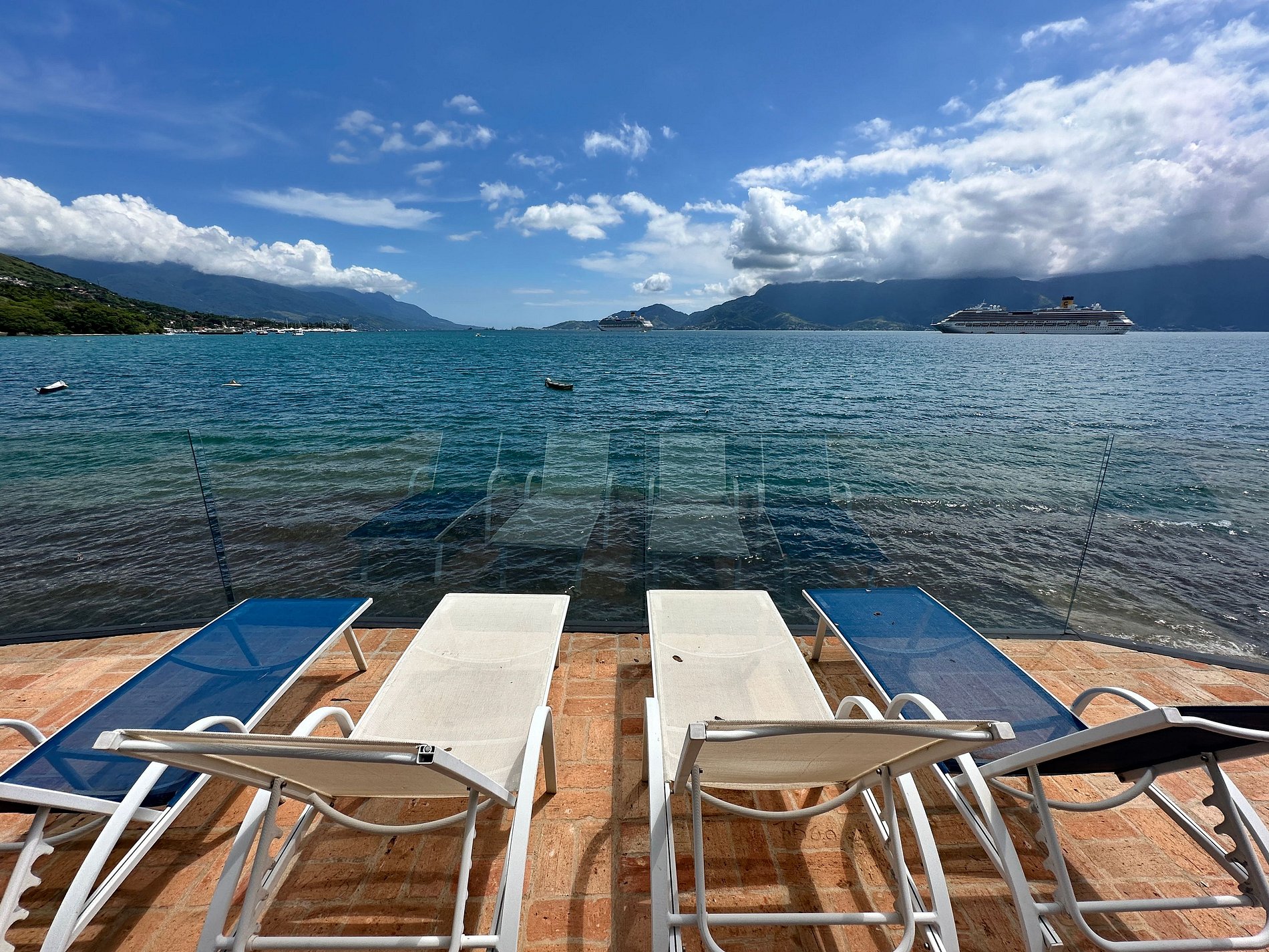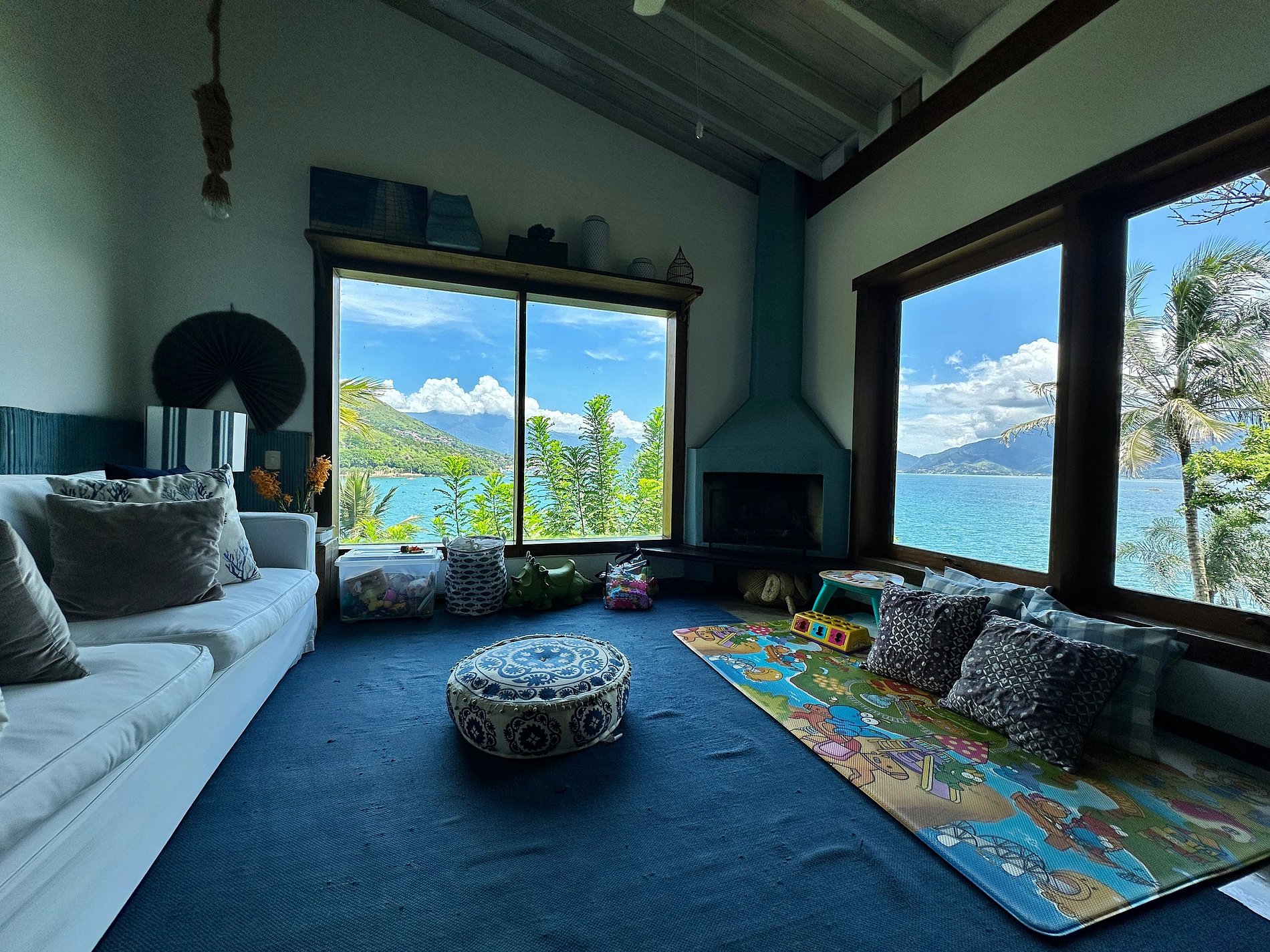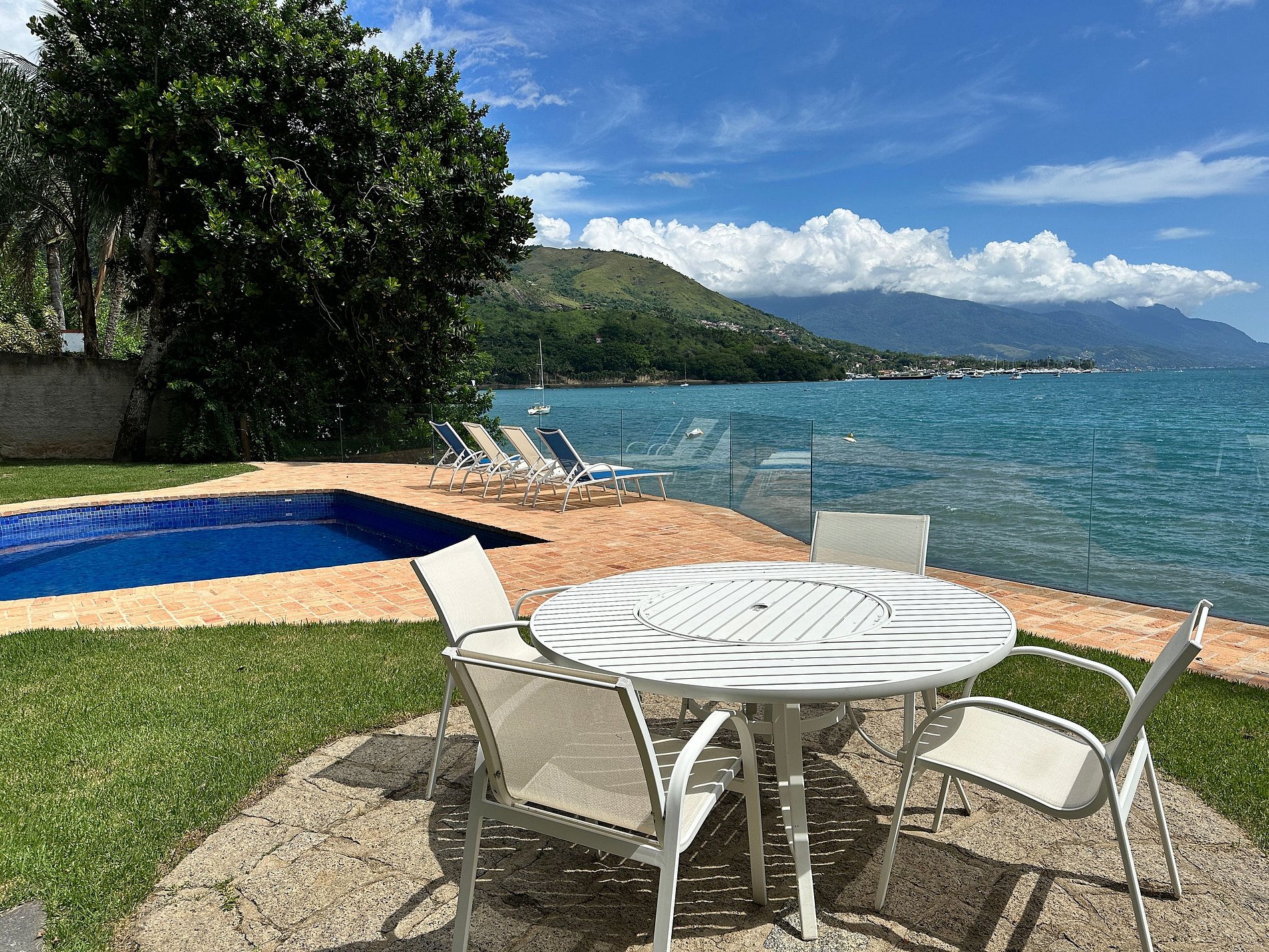 Experiência incrível à beira-mar, a poucos passos da praia do Barreiro, ao Norte de Ilhabela. Casa voltada para o mar, com uma das vistas mais deslumbrantes da ilha. Próxima ao Yatch Club e Viana. Ideal para 8 pessoas. São 3 suítes e 2 quartos com ar-condicionado. Salas de TV, estar, jantar e cozinha em ambiente integrado. Smart e Wi-fi. Área externa com piscina, espreguiçadeiras, espaço gourmet com churrasqueira e deliciosa varanda, além de acesso à costeira e rampa para jetski. É pet friendly!