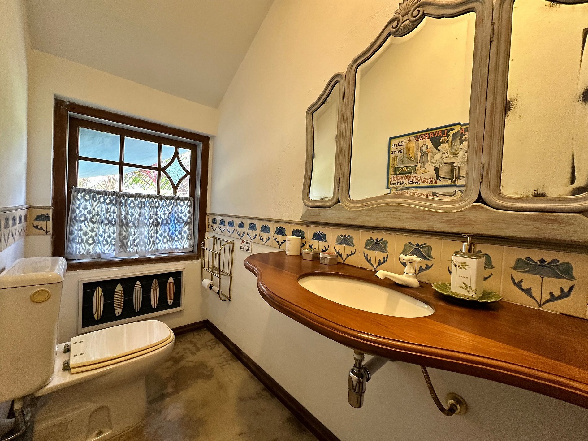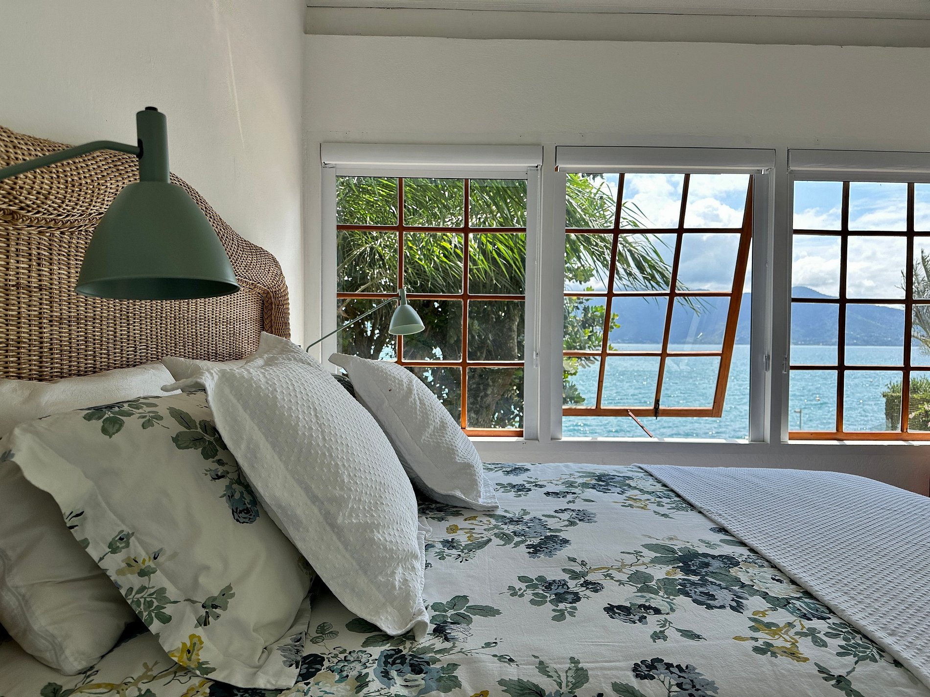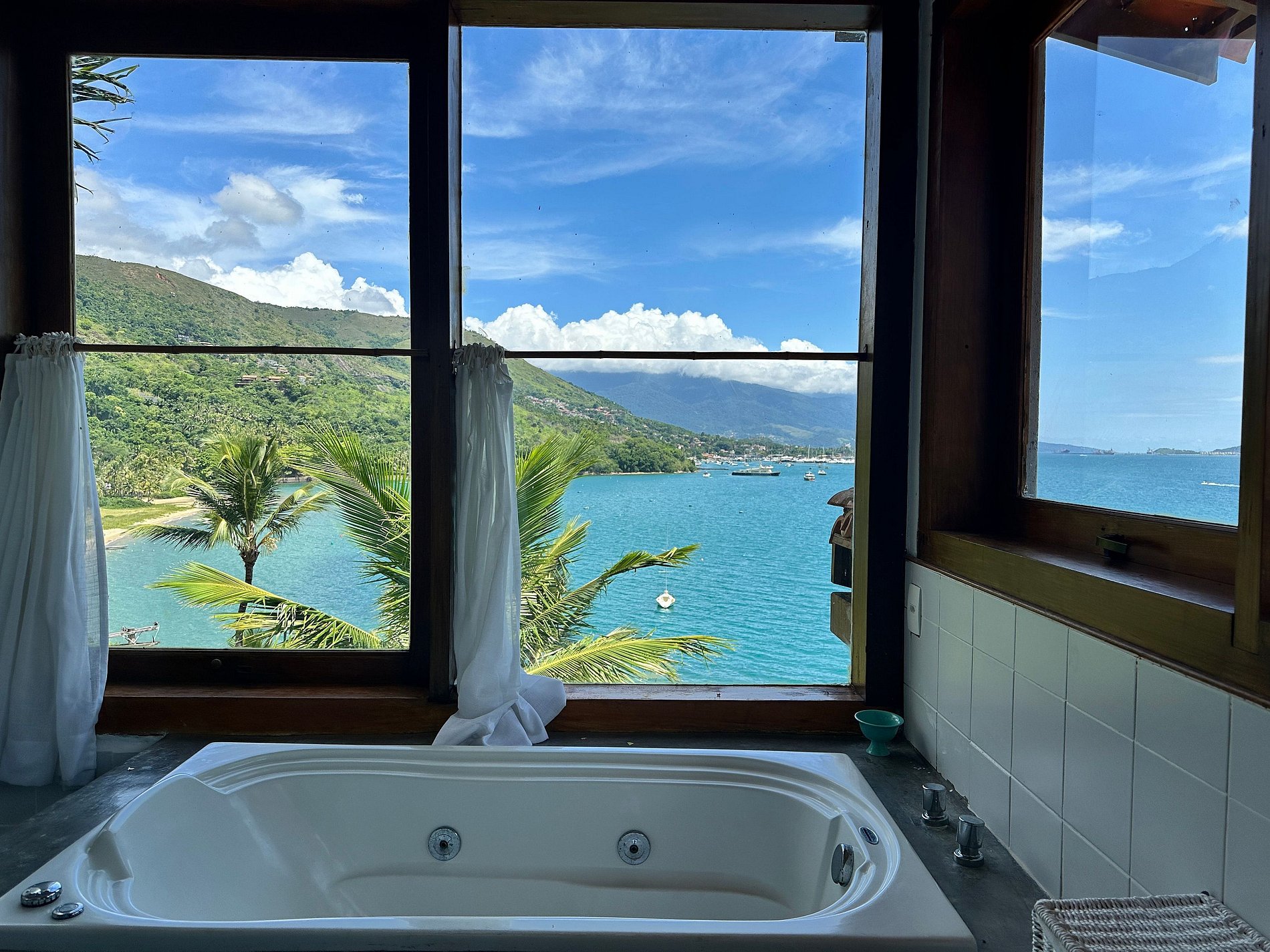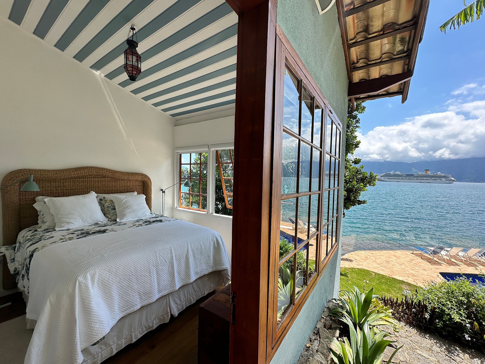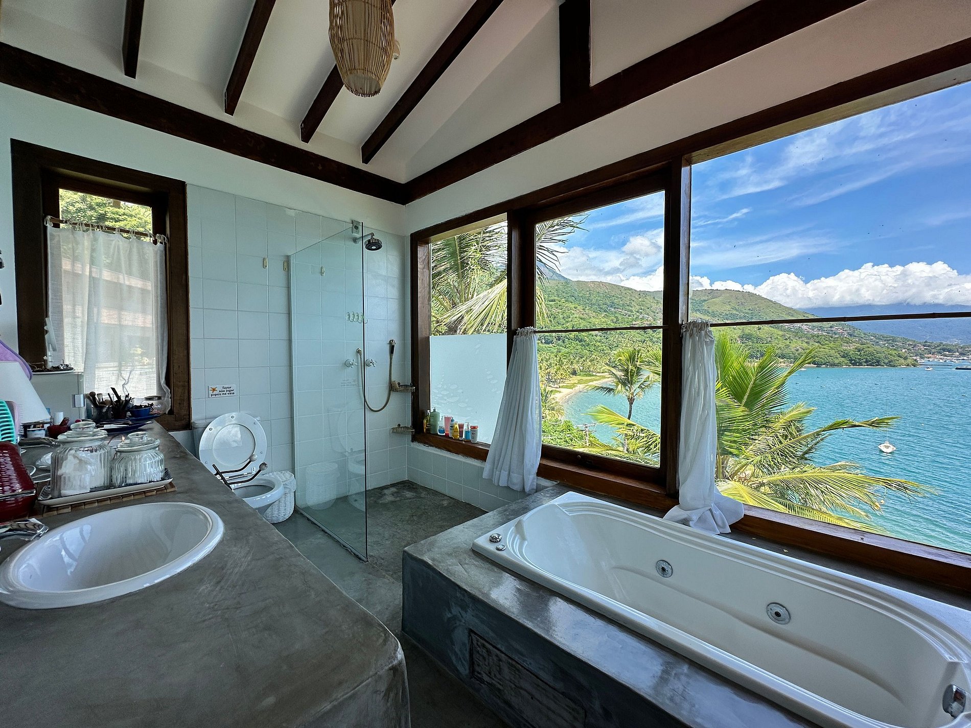 Suíte 1 (superior) - 1 cama de casal, banheira e vista para o mar;