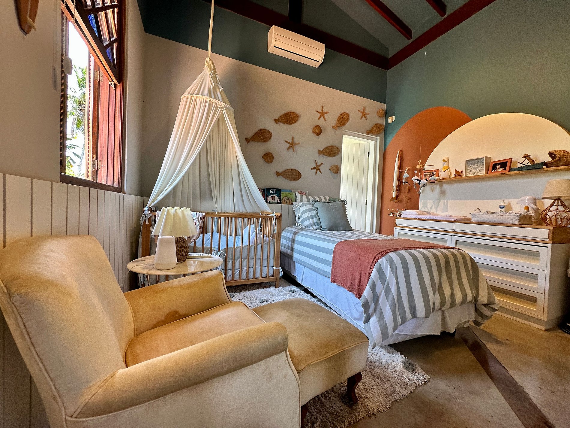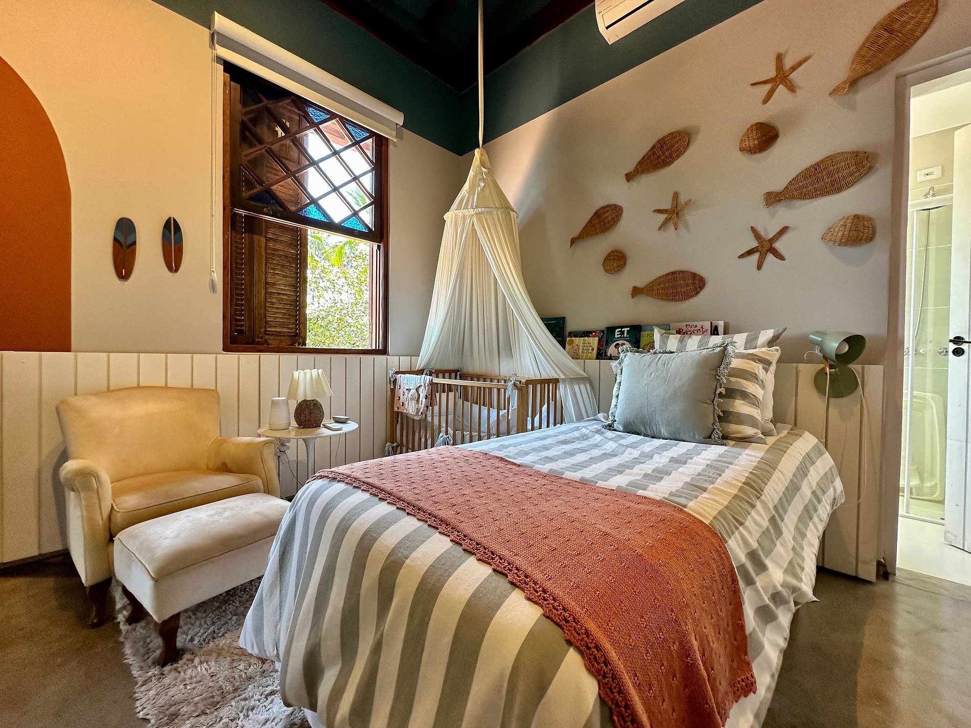 Suíte 2 (superior) - 1 cama de solteiro (bicama) e 1 berço;
