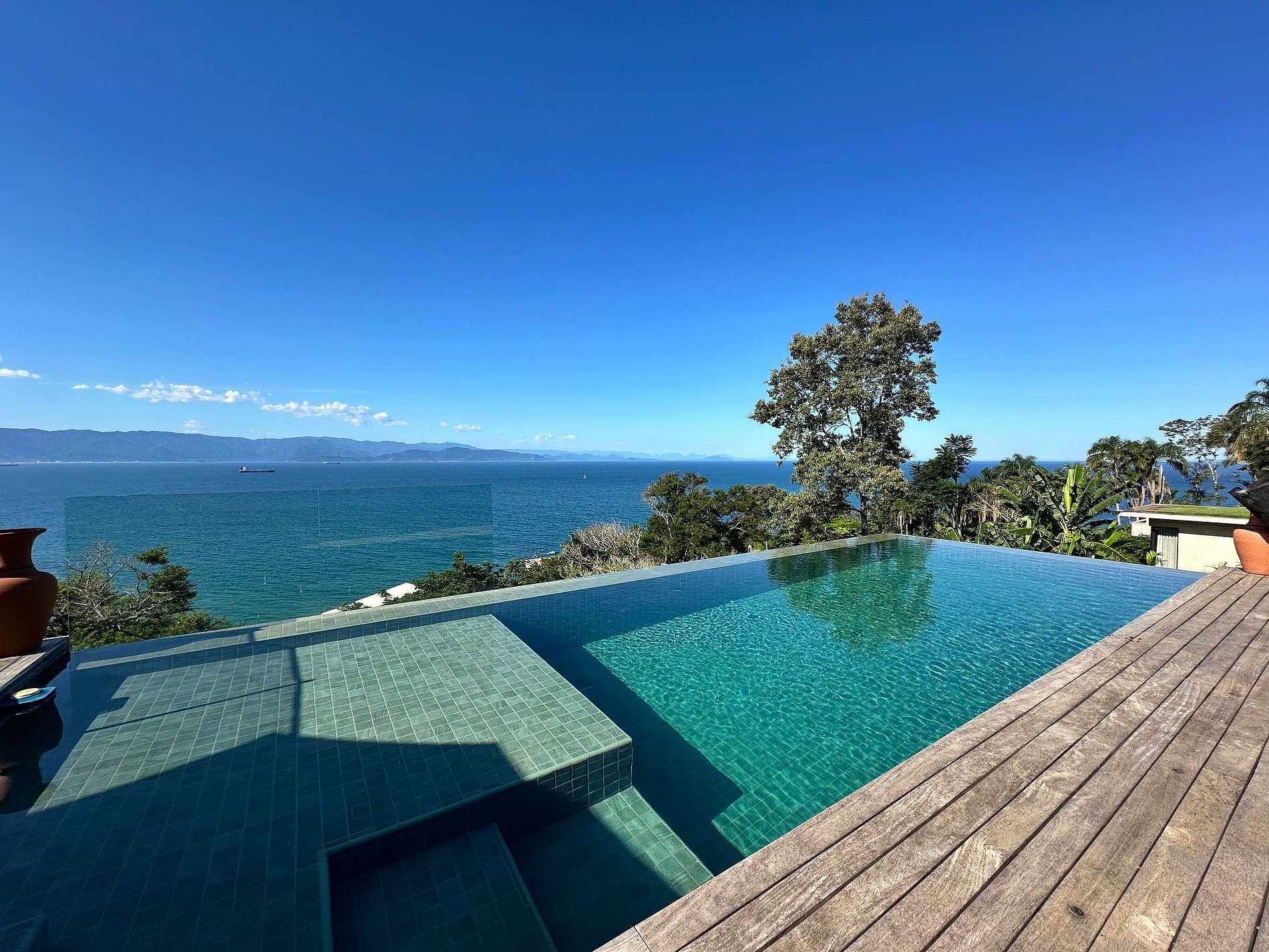 Descubra a melhor experiência ao norte de Ilhabela: casa moderna e térrea, no exclusivo Condomínio Pacuíba, com vista panorâmica e total privacidade. Acesso direto à praia. Ideal para famílias de 10 pessoas, não serão aceitos grupos maiores. São 4 suítes com ar-condicionado. Área interna com salas integradas, TV e cozinha bem equipada. A área externa conta com piscina aquecida de borda infinita aquecida, espaço gourmet, churrasqueira e fogueira. Ideal para momentos inesquecíveis e de desconexão!