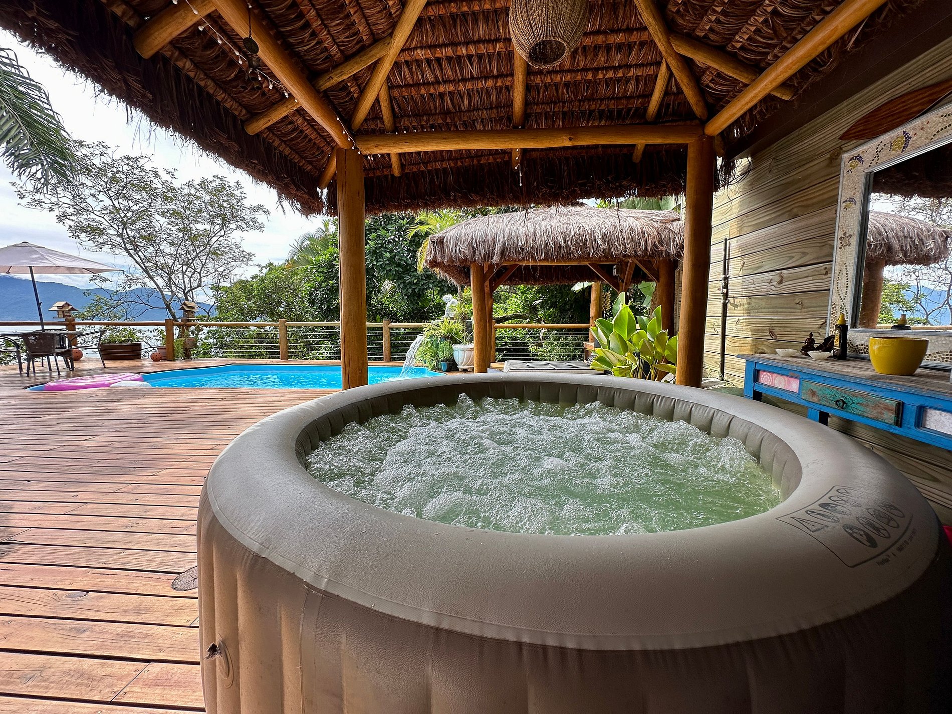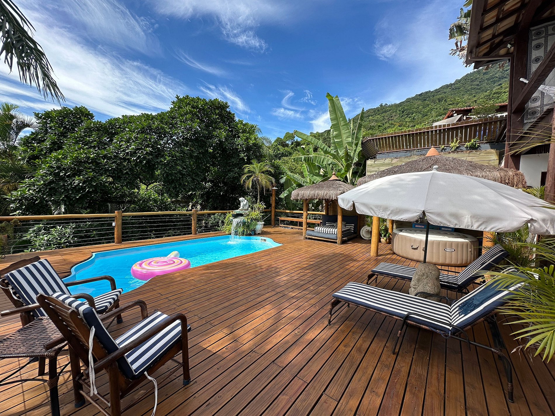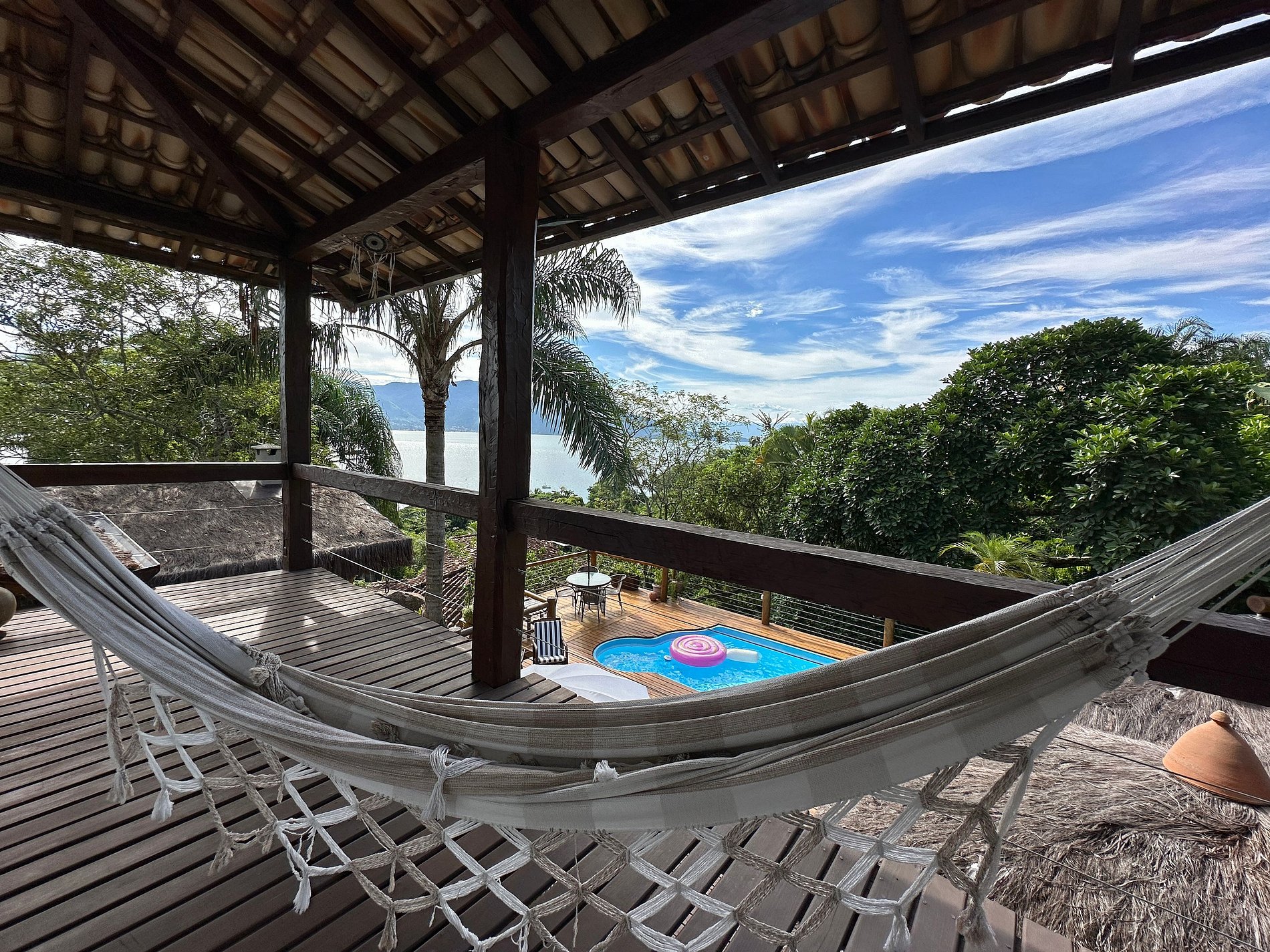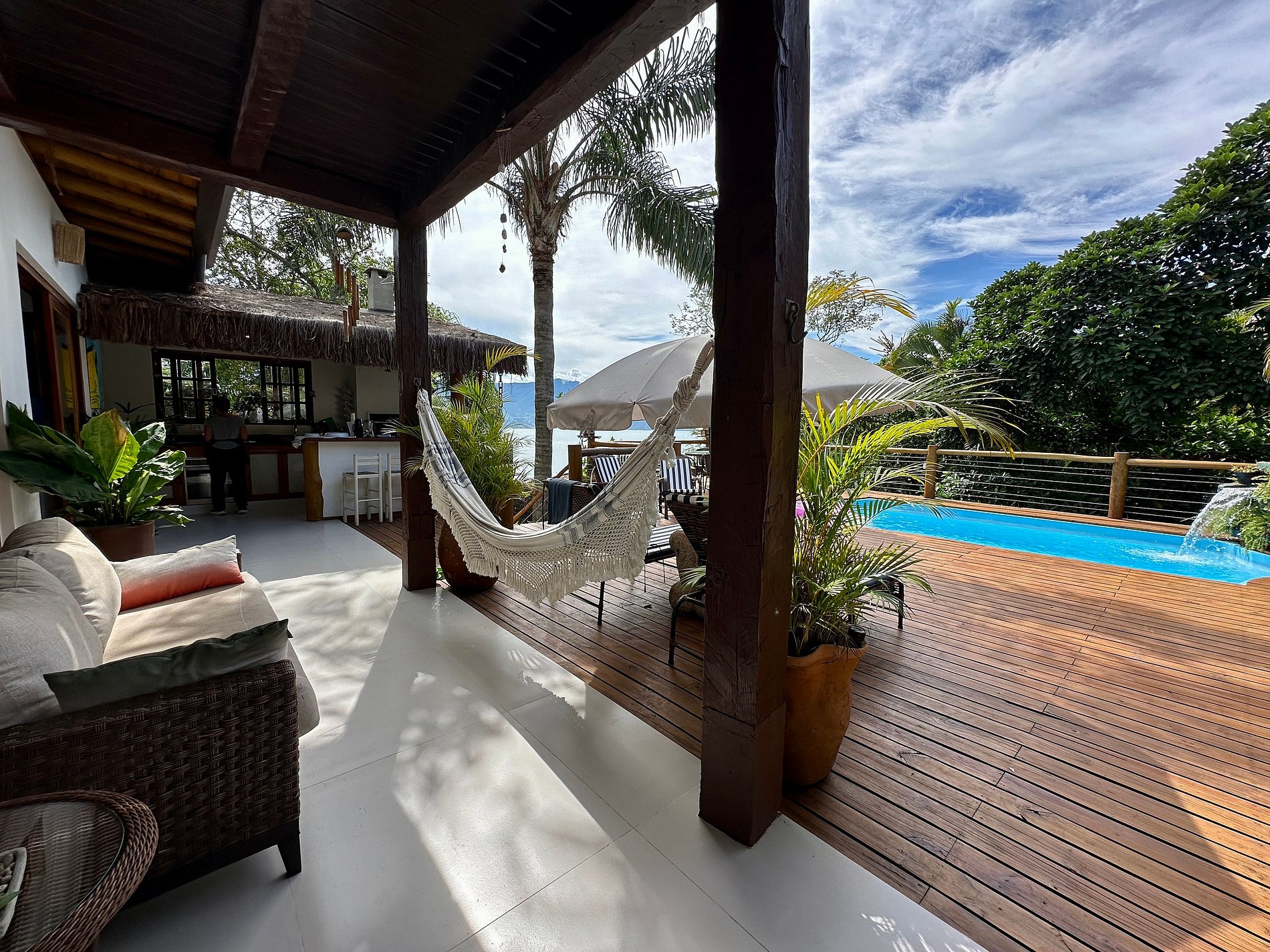 Com uma deslumbrante vista para o mar, a casa conta com 4 suítes amplas e arejadas, projetadas para oferecer máximo aconchego. A área externa é um convite ao lazer e relaxamento, com piscina, jacuzzi, sauna e um espaço exclusivo para massagem e meditação, imerso na exuberante Mata Atlântica, ao lado de uma encantadora cachoeira.