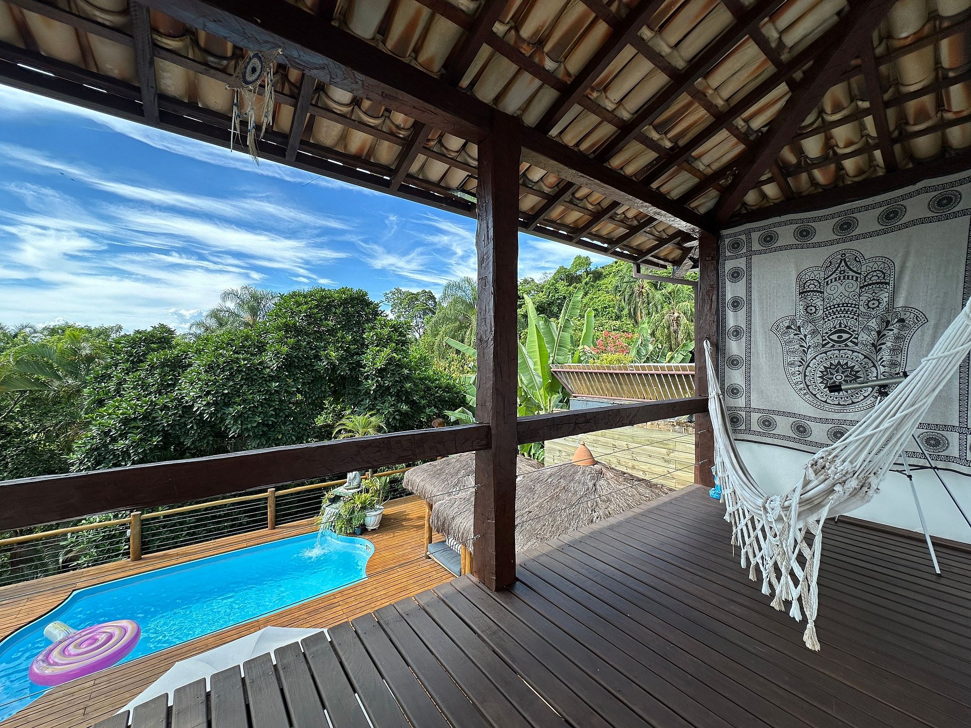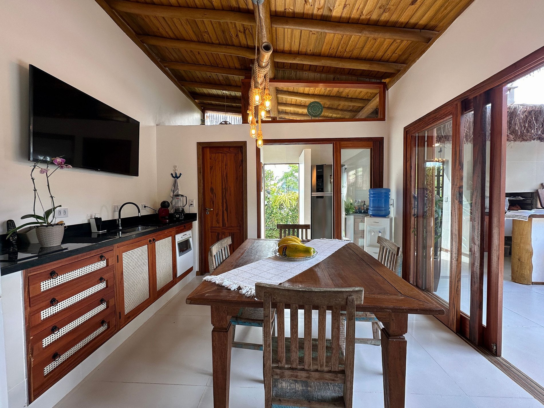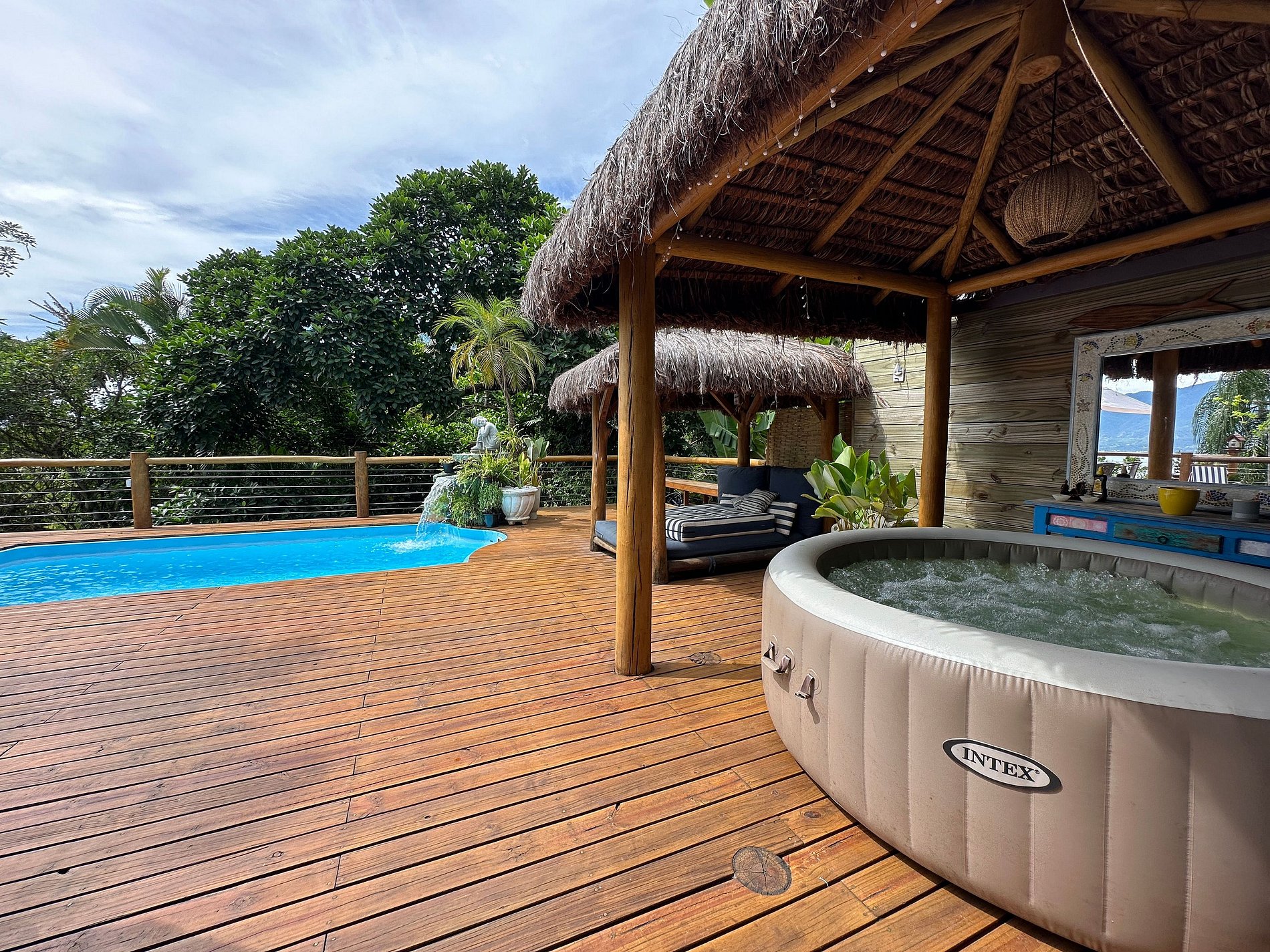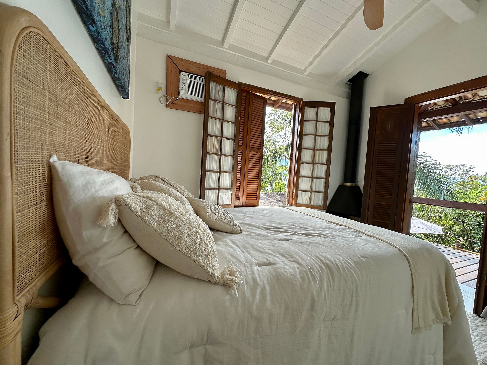 Com uma deslumbrante vista para o mar, a casa conta com 4 suítes amplas e arejadas, projetadas para oferecer máximo aconchego. A área externa é um convite ao lazer e relaxamento, com piscina, jacuzzi, sauna e um espaço exclusivo para massagem e meditação, imerso na exuberante Mata Atlântica, ao lado de uma encantadora cachoeira.