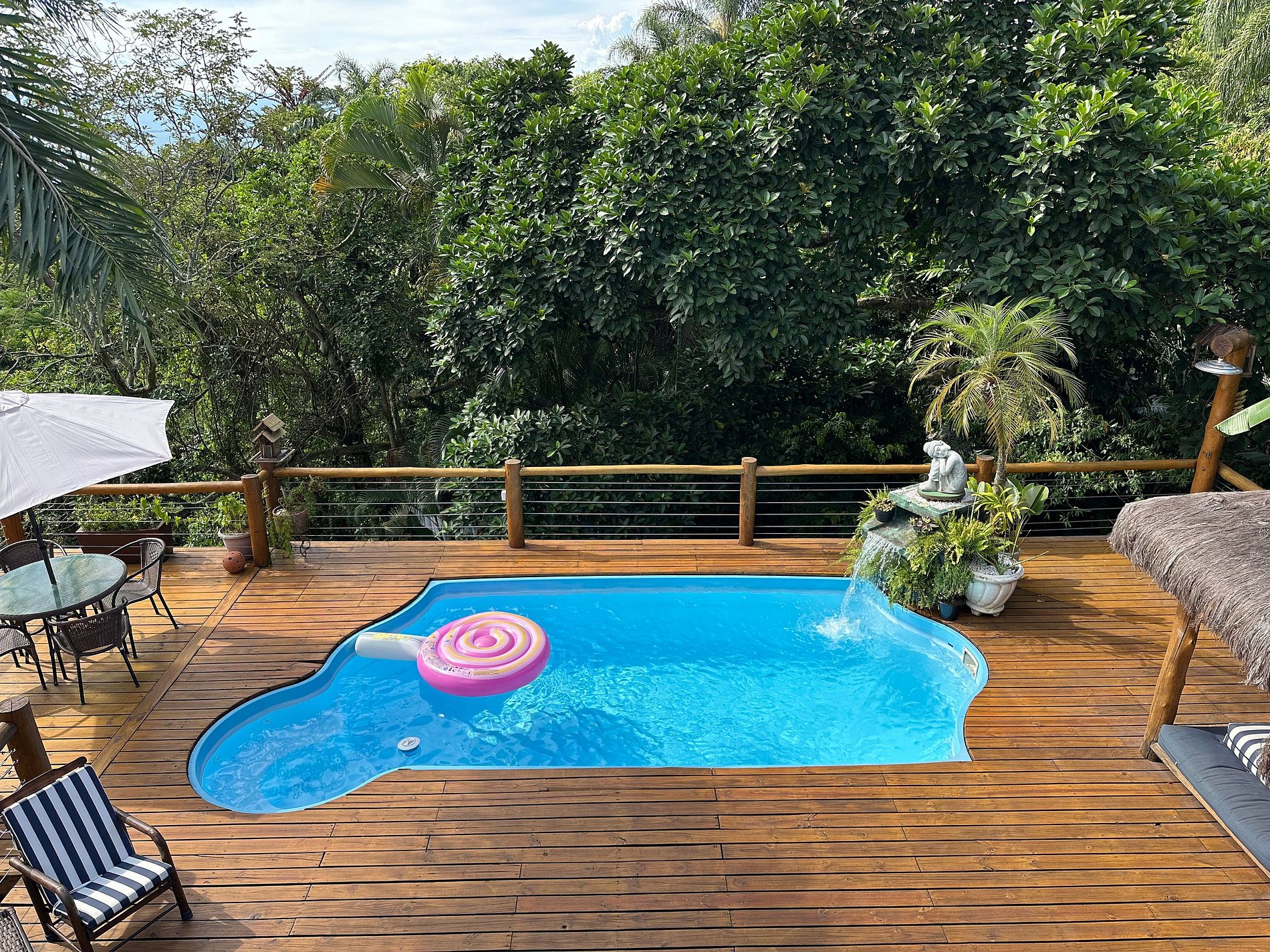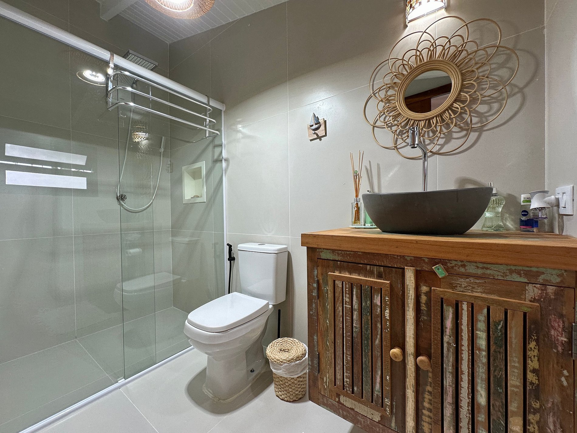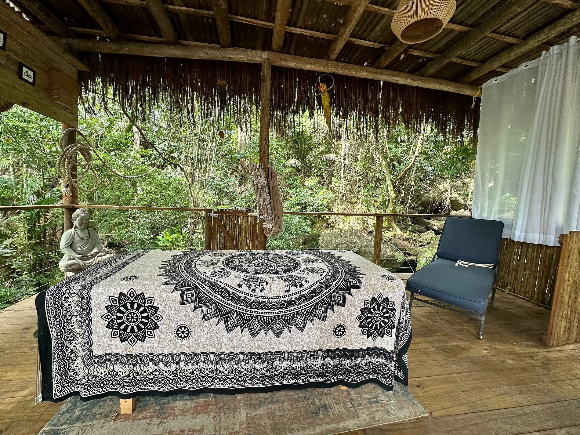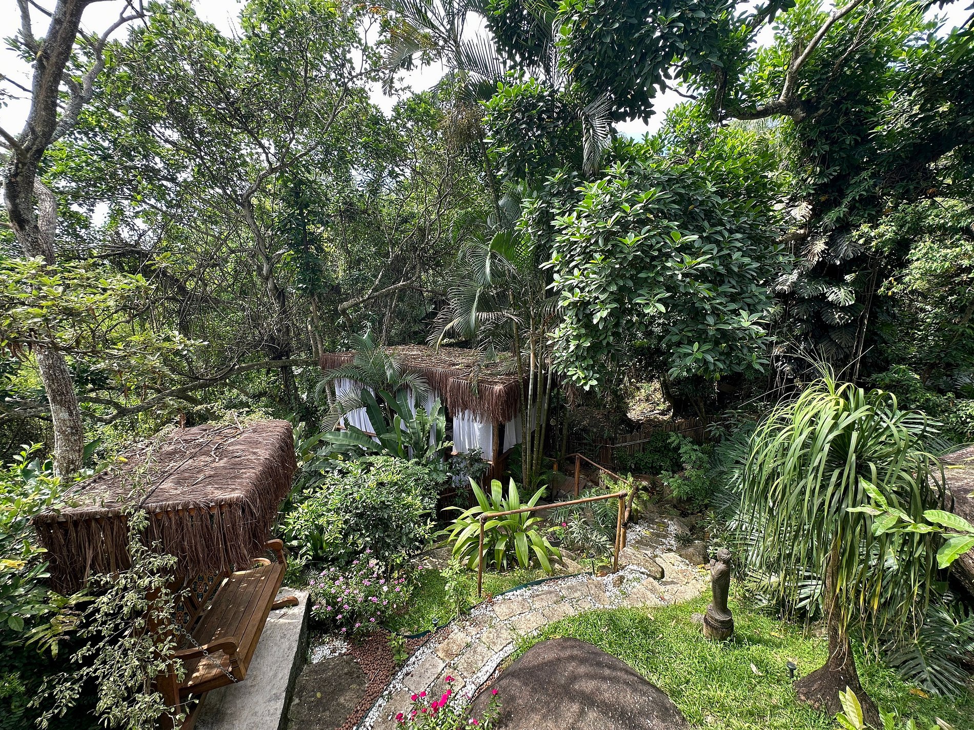 Com uma deslumbrante vista para o mar, a casa conta com 4 suítes amplas e arejadas, projetadas para oferecer máximo aconchego. A área externa é um convite ao lazer e relaxamento, com piscina, jacuzzi, sauna e um espaço exclusivo para massagem e meditação, imerso na exuberante Mata Atlântica, ao lado de uma encantadora cachoeira.