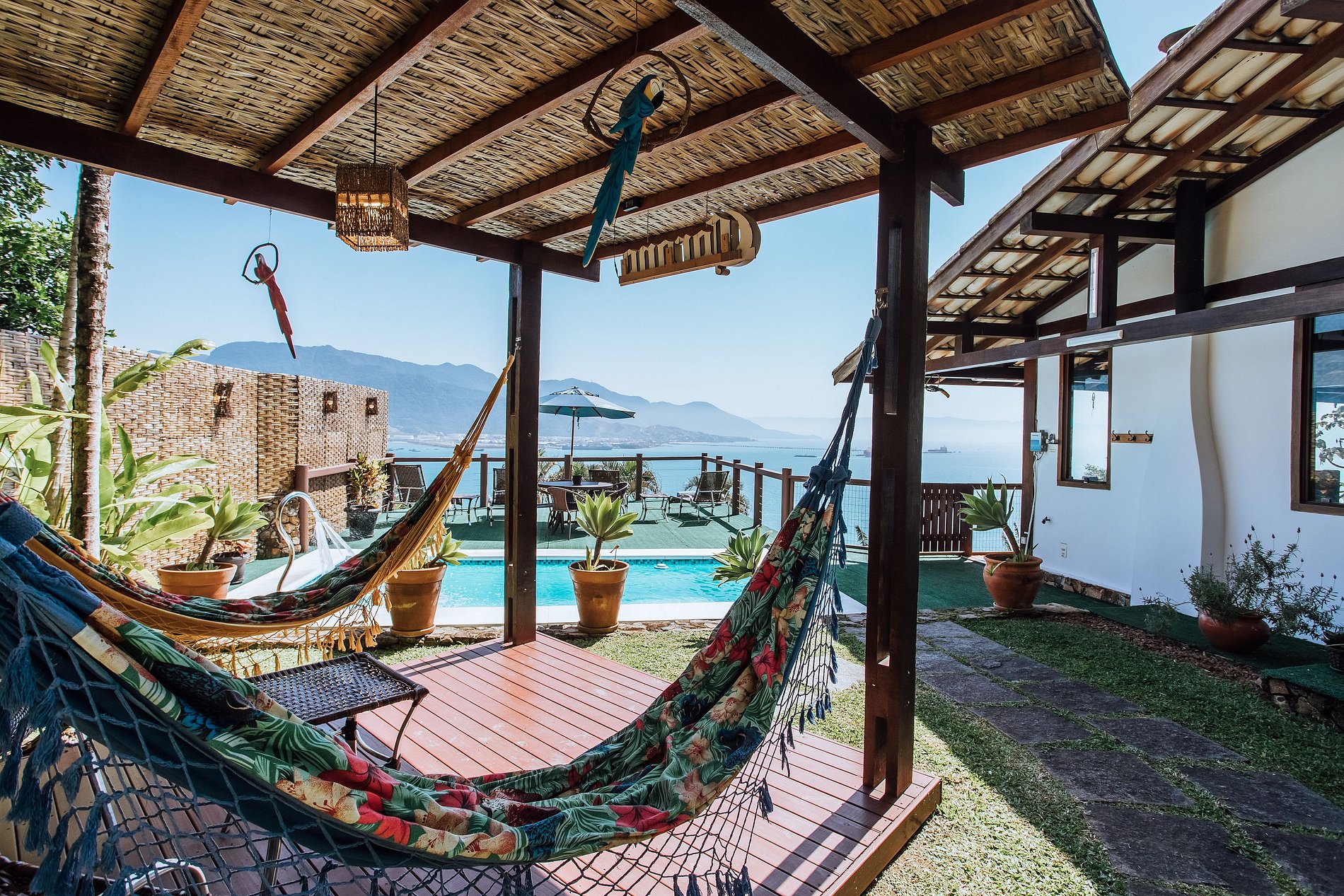 We were blown away with the beauty of this home and the view. The pictures don't do it justice! The home was spotless and had everything we needed. We even stayed in and used the barbecue brick oven while enjoying the sunset. The pool was great, a short walk to the beach, and lots of shopping close by. If we come back to Ilhabela in the future, we'd stay in this home again. Thank you