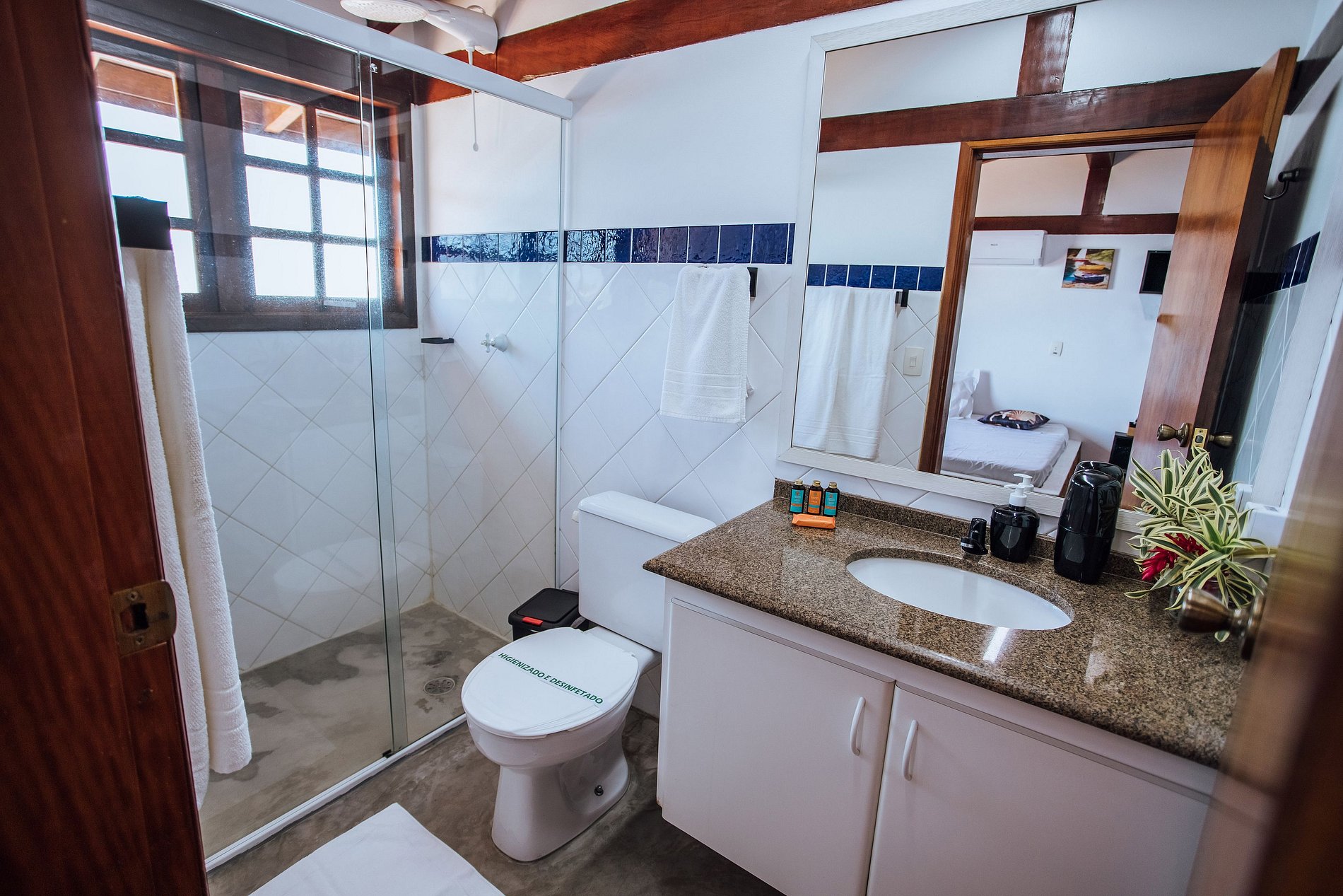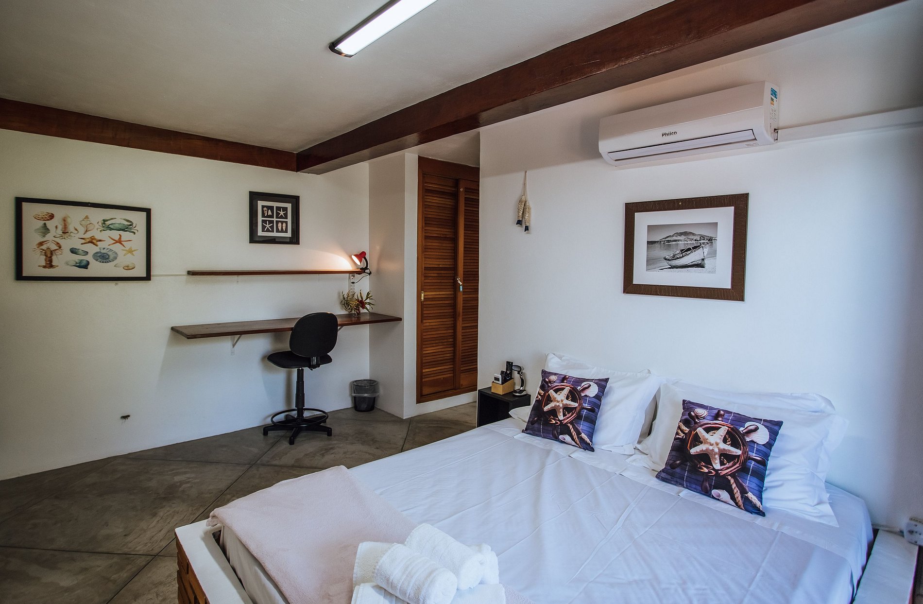 - Suíte 1 - 1 cama de casal; 1 Smart TV com acesso à Sky / Netflix; espaço para home office e ar-condicionado com as funções quente e frio;