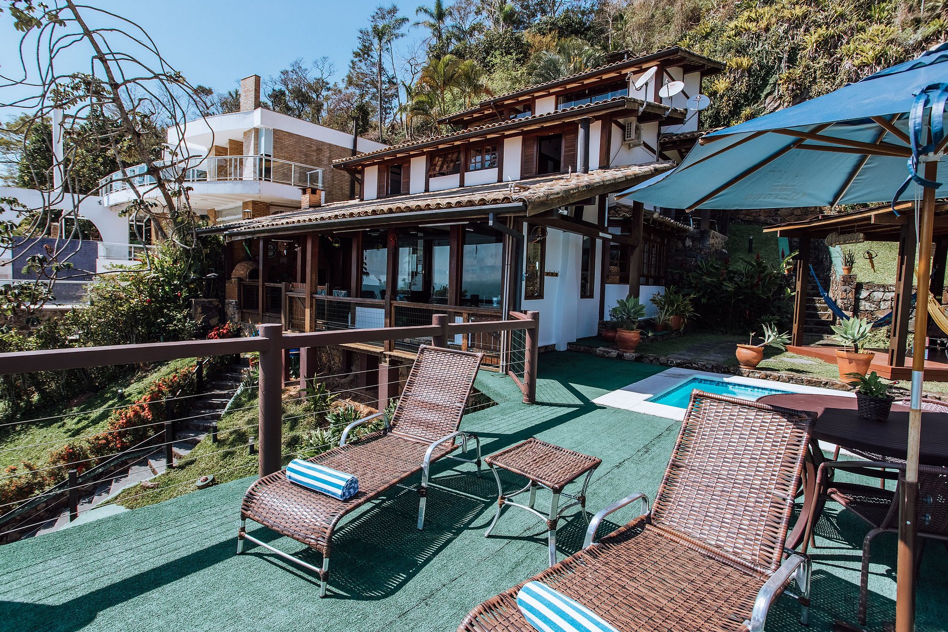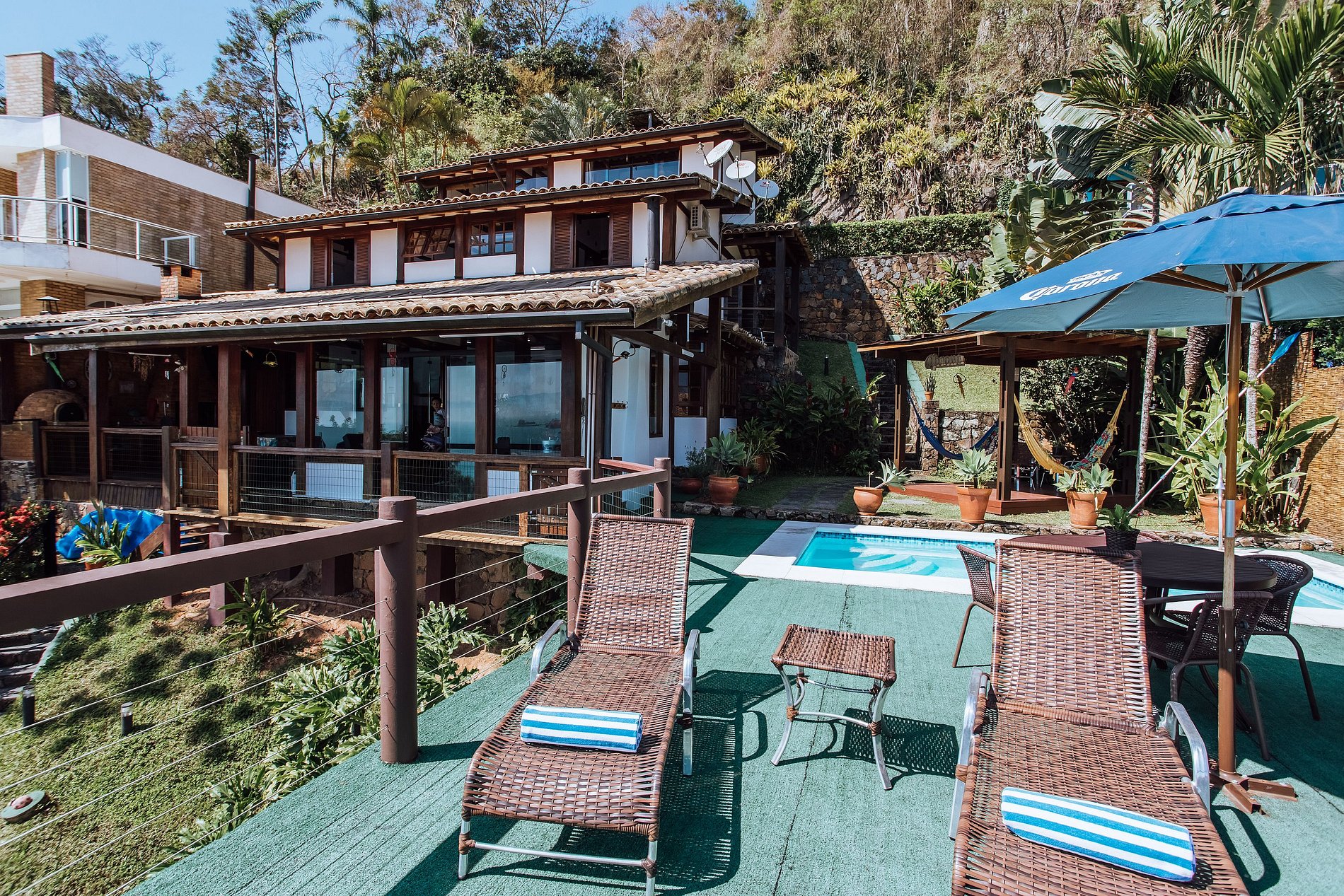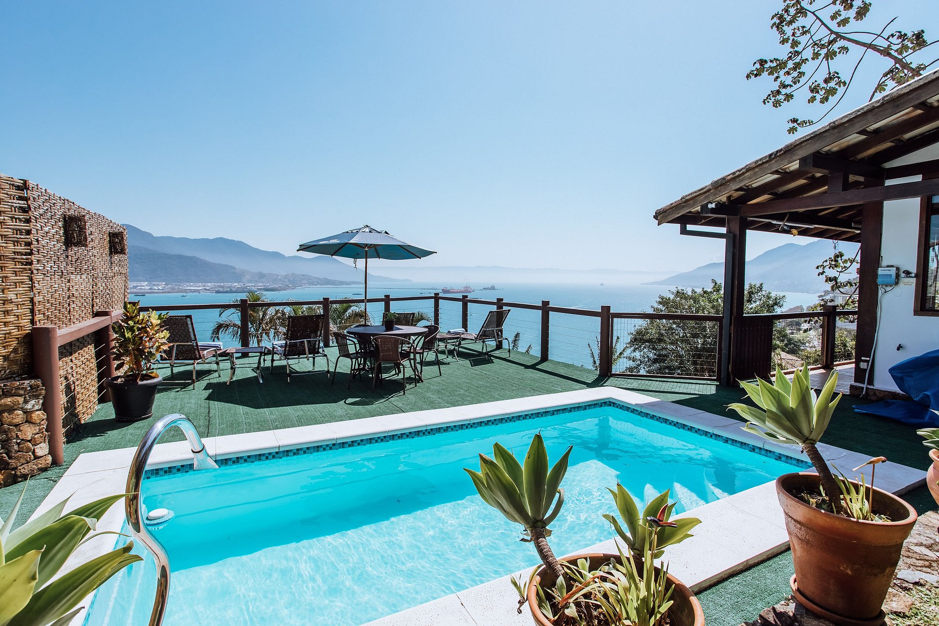We were blown away with the beauty of this home and the view. The pictures don't do it justice! The home was spotless and had everything we needed. We even stayed in and used the barbecue brick oven while enjoying the sunset. The pool was great, a short walk to the beach, and lots of shopping close by. If we come back to Ilhabela in the future, we'd stay in this home again. Thank you