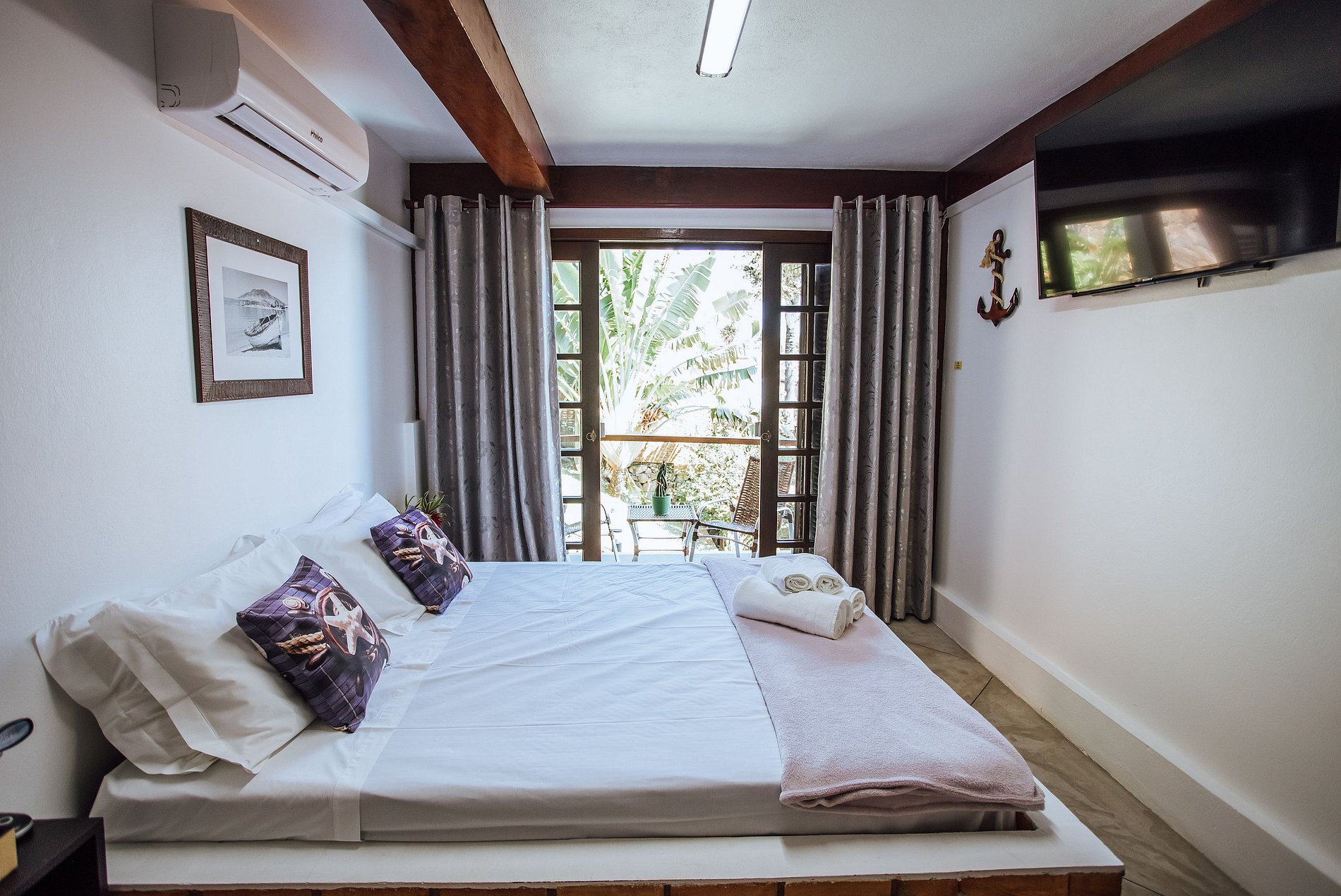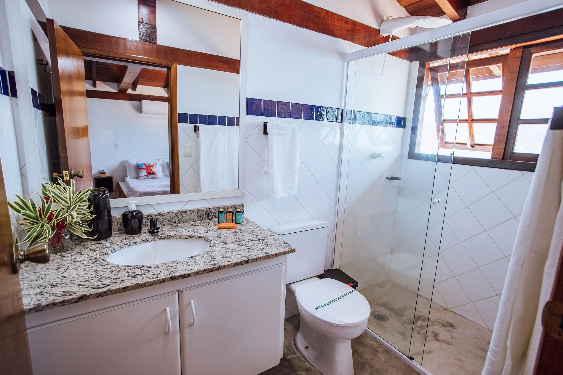 - Suíte 1 - 1 cama de casal; 1 Smart TV com acesso à Sky / Netflix; espaço para home office e ar-condicionado com as funções quente e frio;