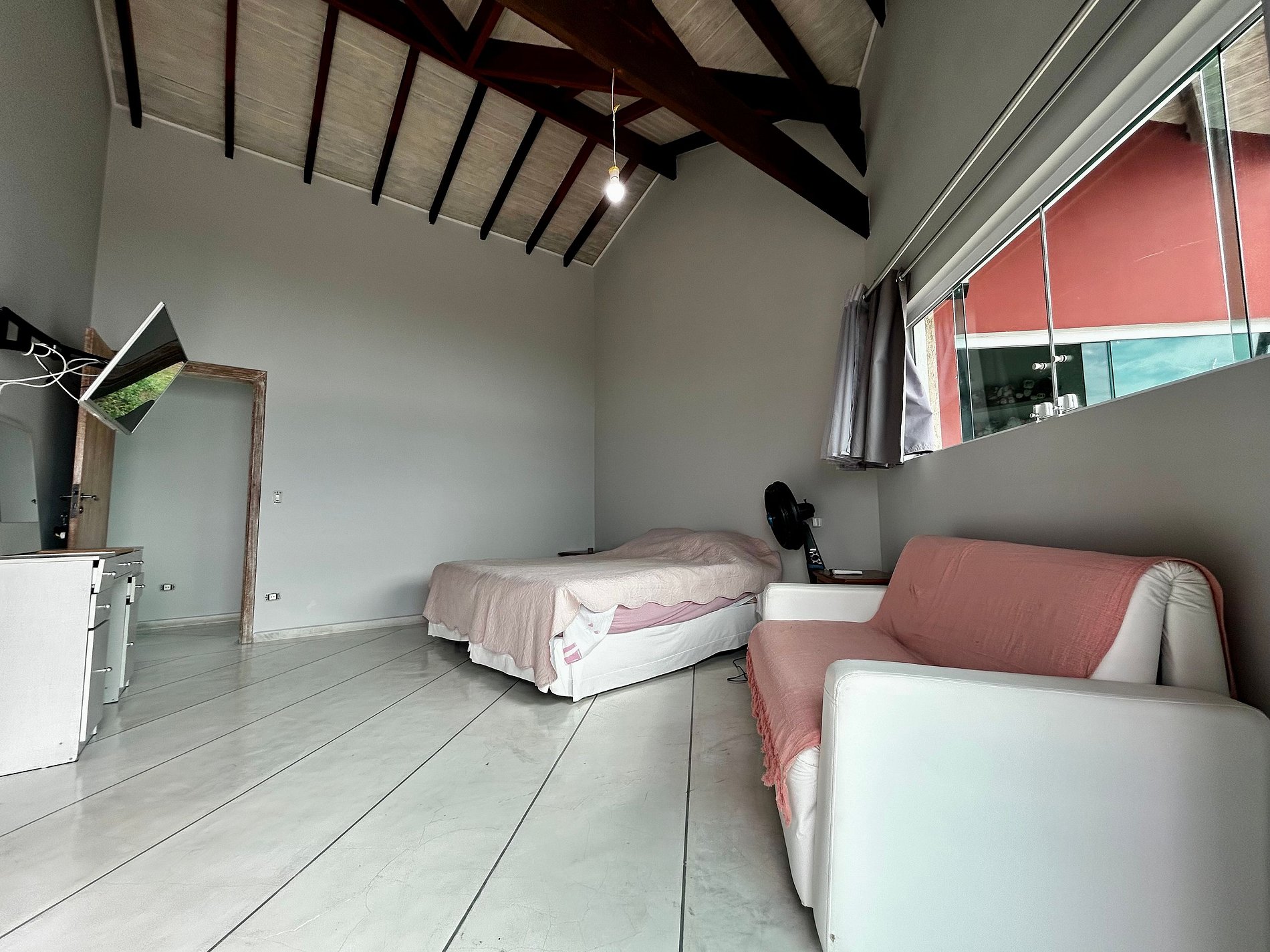 Suíte 4 (térreo) - 1 cama de casal e acesso à uma pequena varanda, sem vista.