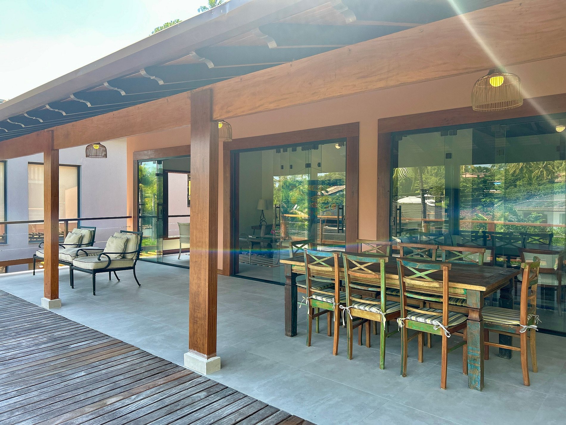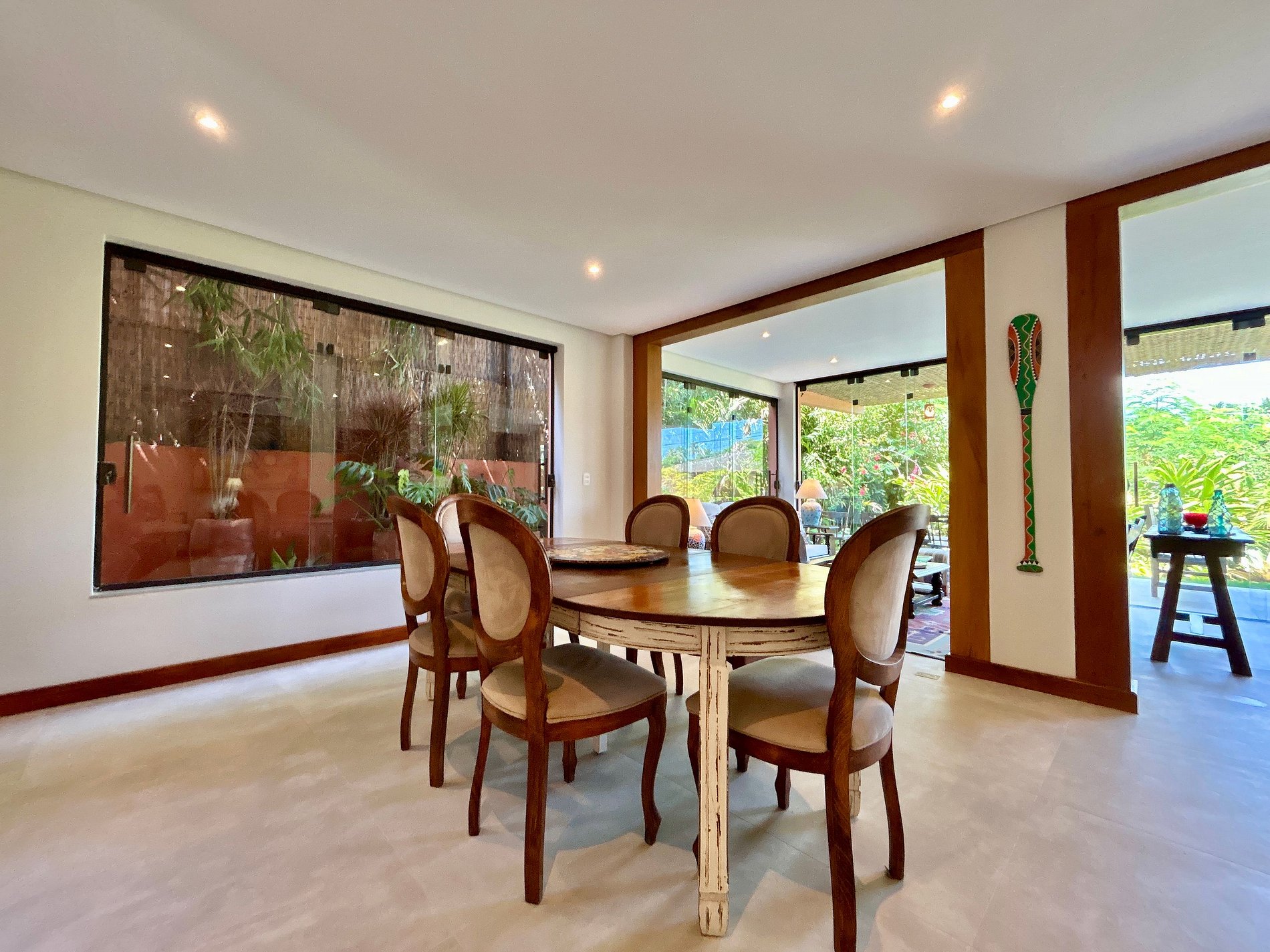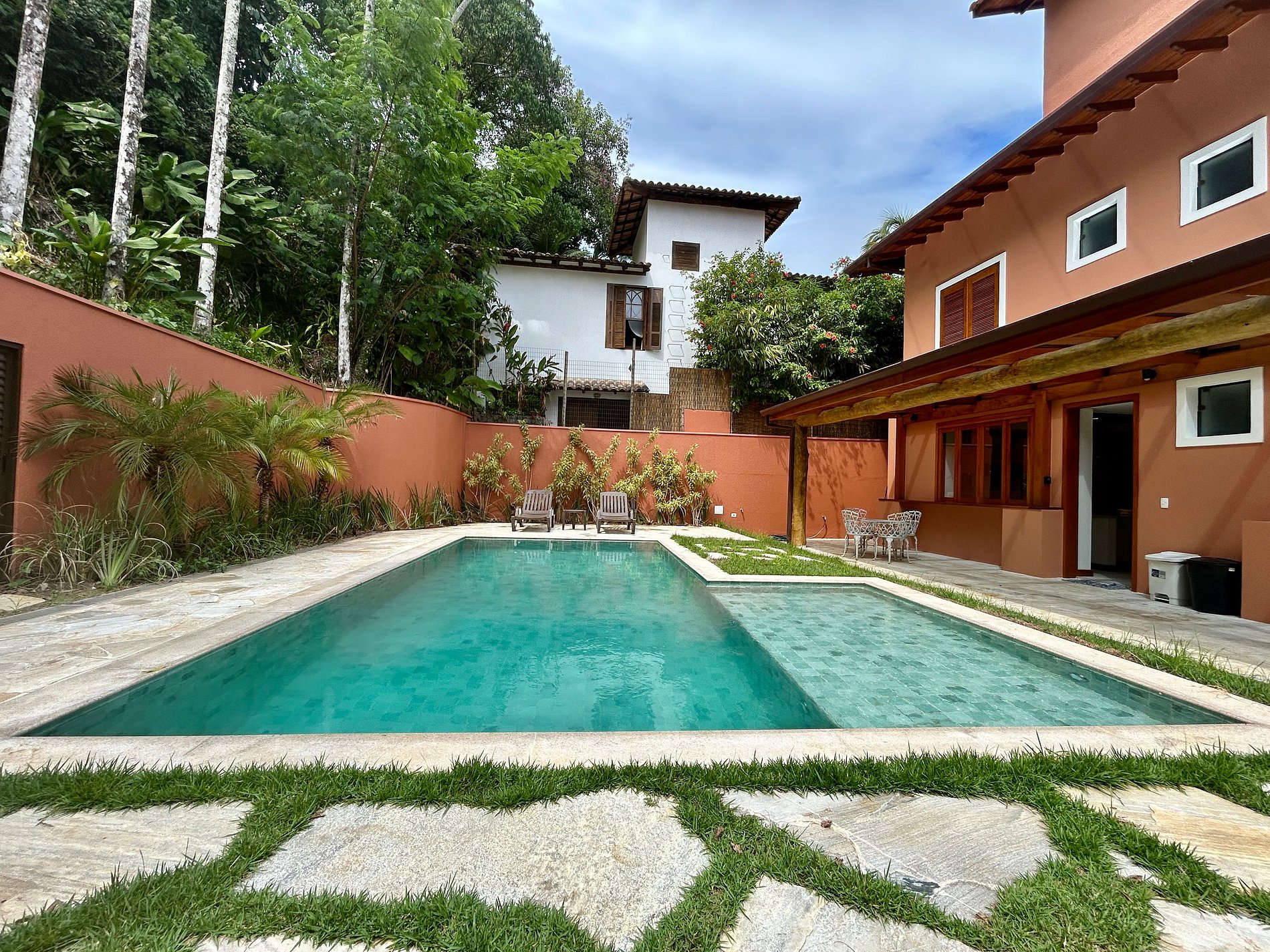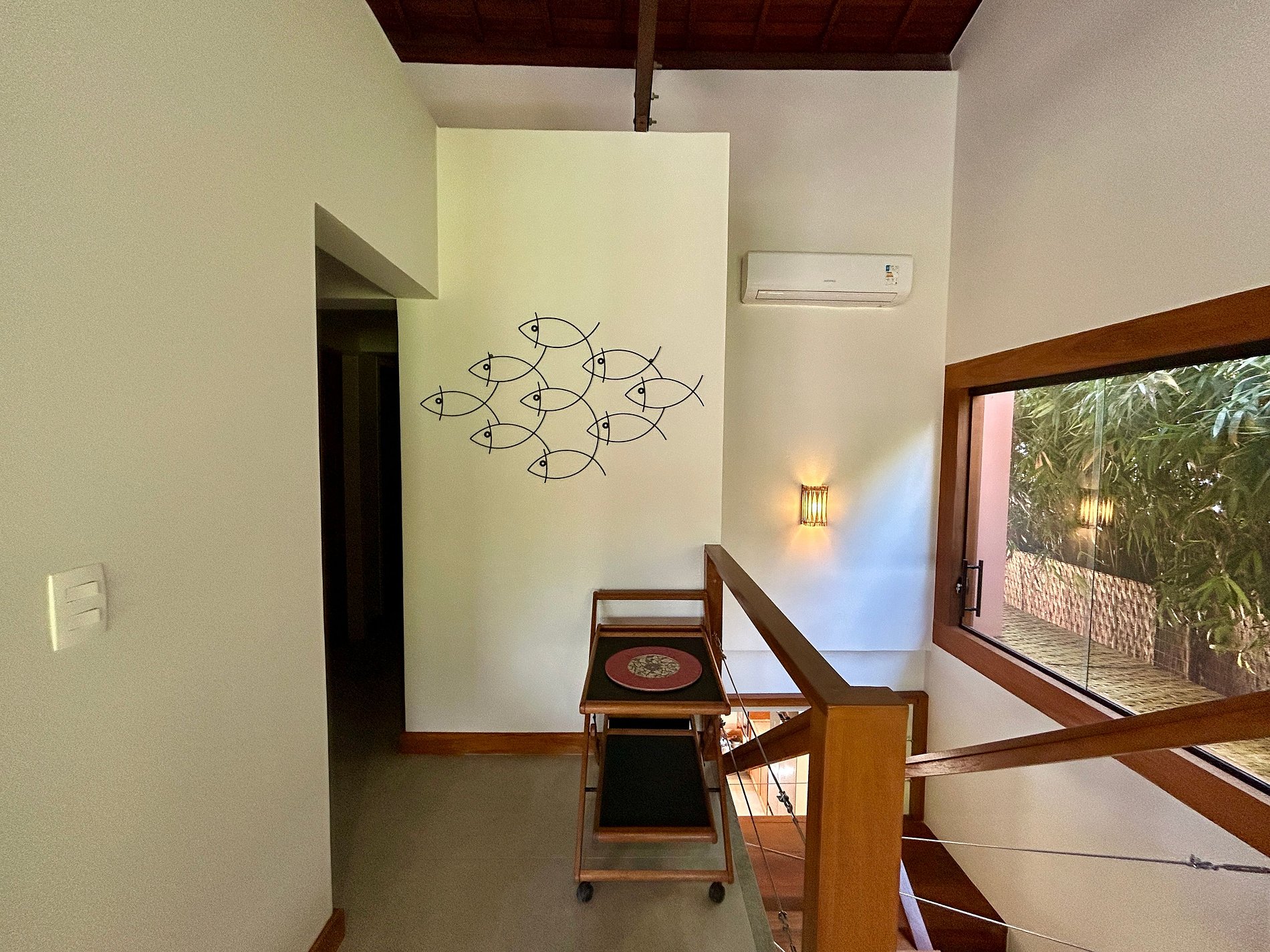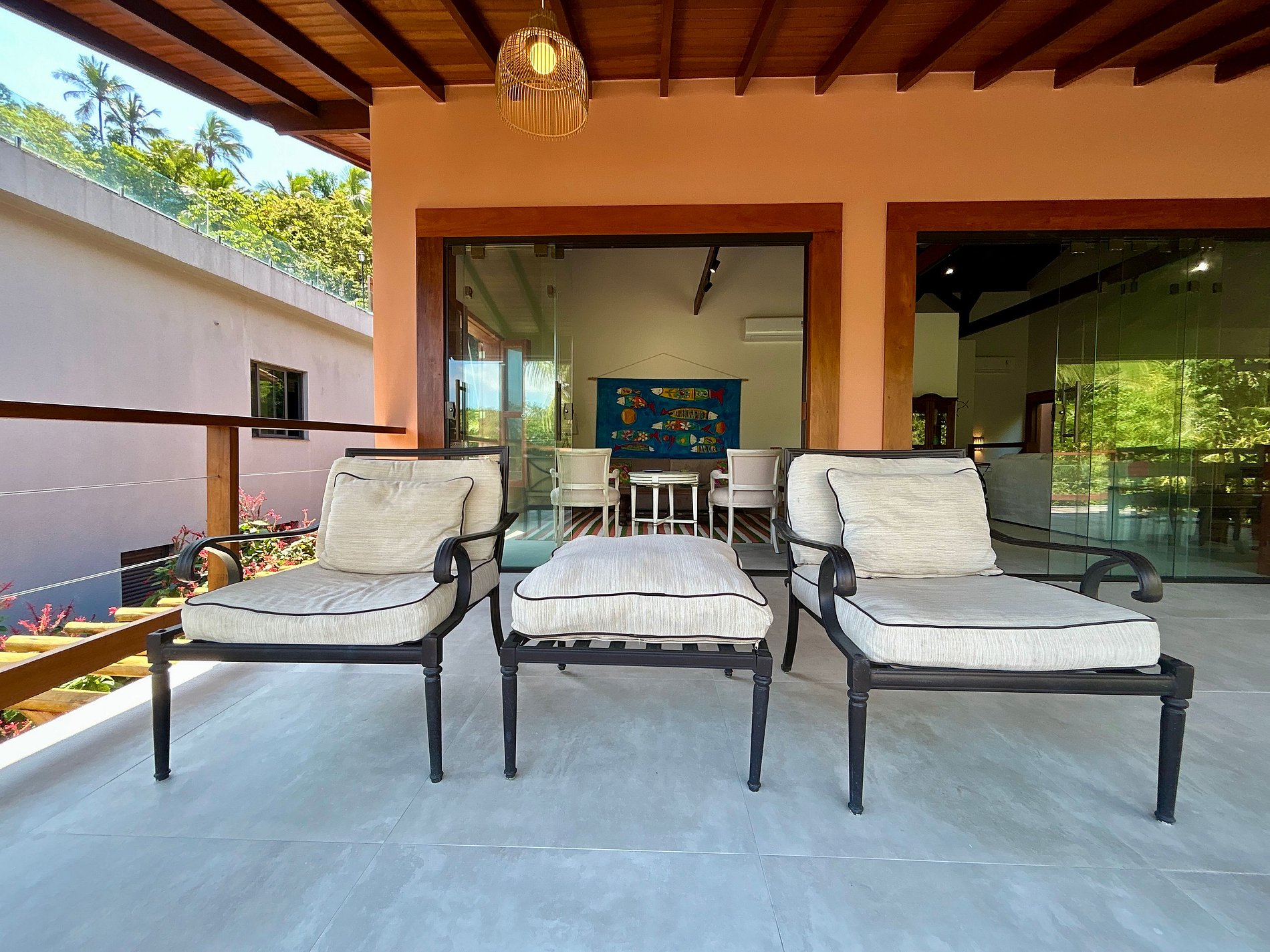 Uma das experiências mais acolhedoras e confortáveis de Ilhabela. Casa moderna e muito bem decorada, no São Mathias, tradicional condomínio pé na areia, na praia da Feiticeira, ao Sul de Ilhabela, onde o quintal é o mar. Ideal para 12 pessoas. São 6 suítes, todas com ar-condicionado. Salas de estar, jantar, cozinha e varanda integradas. Sala de TV e estar, varanda e deck no andar superior. Smart TV e Wi-fi. Área externa deliciosa, com piscina, churrasqueira portátil, belo jardim. É pet friendly!