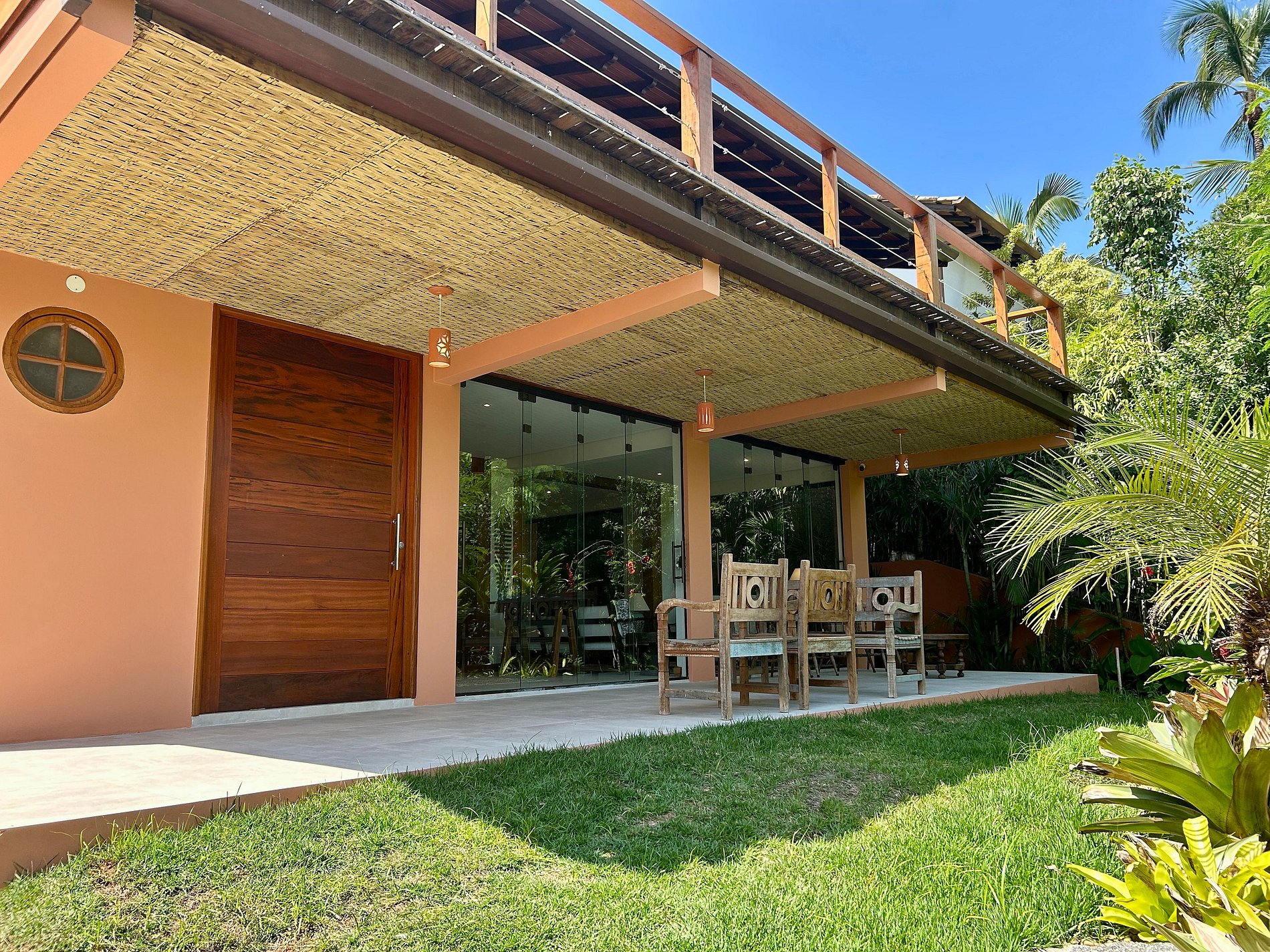 Imagine acordar com o som do mar e ter a praia como quintal. Esta casa moderna, iluminada e arejada está localizada no exclusivo Condomínio São Mathias, um tradicional condomínio pé na areia na desejada Praia da Feiticeira, ao sul de Ilhabela.