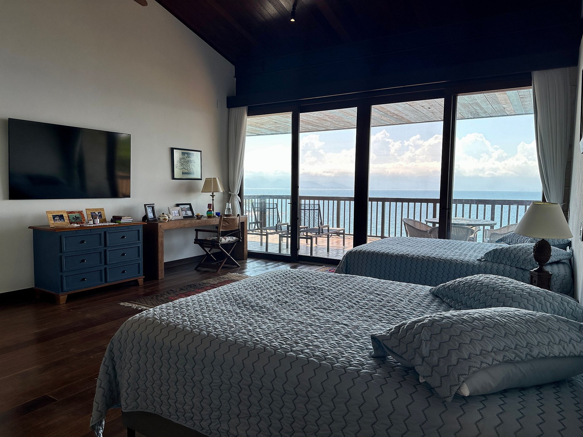 Suíte 5 - 1 cama de casal king size e 1 cama de solteiro, com acesso à varanda;