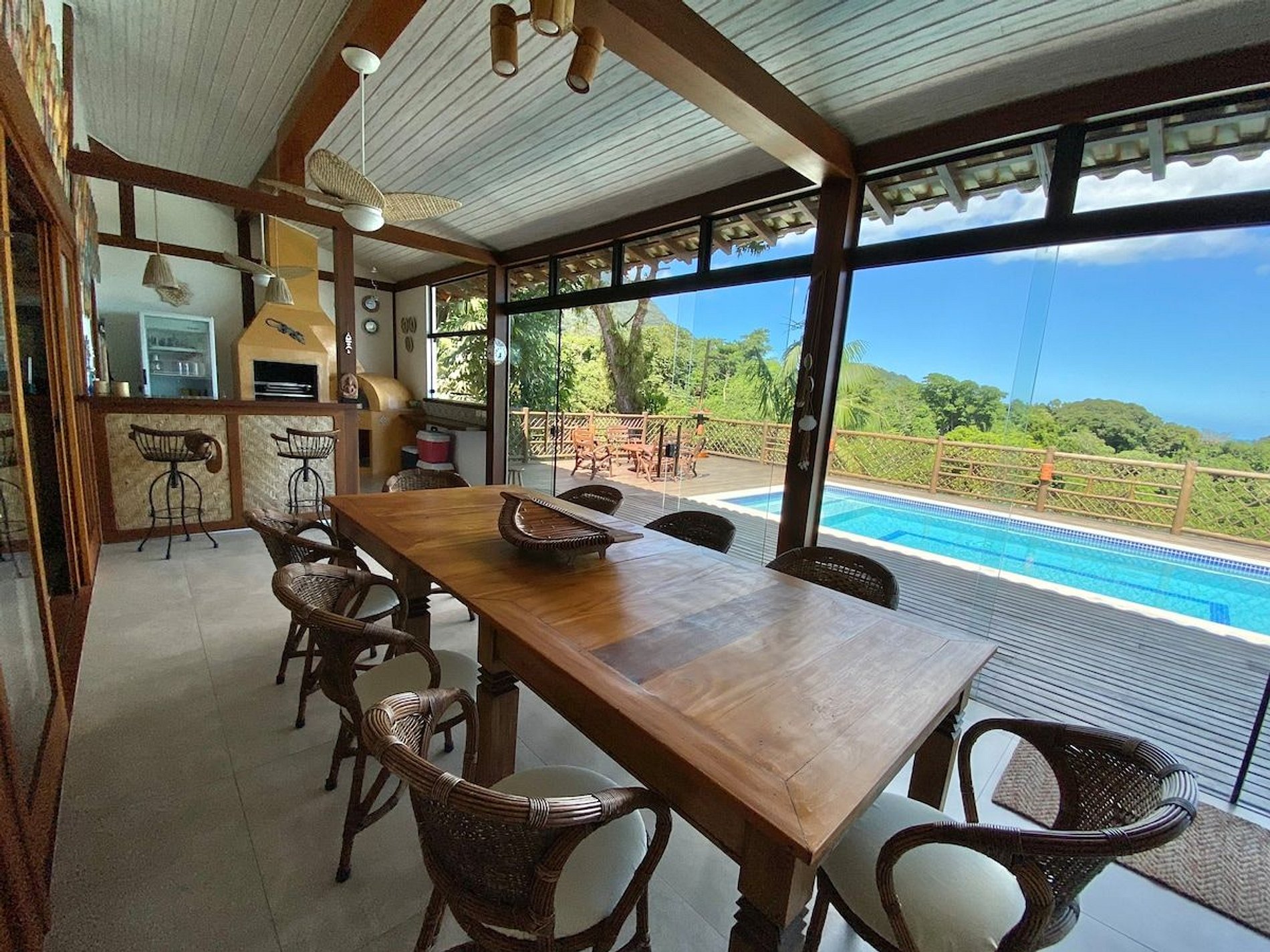 Experiência incrível ao Sul de Ilhabela! Vista cinematográfica para o mar e montanha, um pôr do sol espetacular, no condomínio Ponta da Sela, que conta com segurança, píer, quadra de tênis, campo de futebol e piscina na costeira. Ideal para 12 pessoas. São 6 suítes, todas com ar-condicionado. Área externa incrível, piscina, jardim, espaço gourmet com churrasqueira, forno de pizza e fogão a lenha. Salas de estar, jantar, TV e cozinha completa. Smart TV e Wi-fi. Espaço adequado para cadeirantes.
