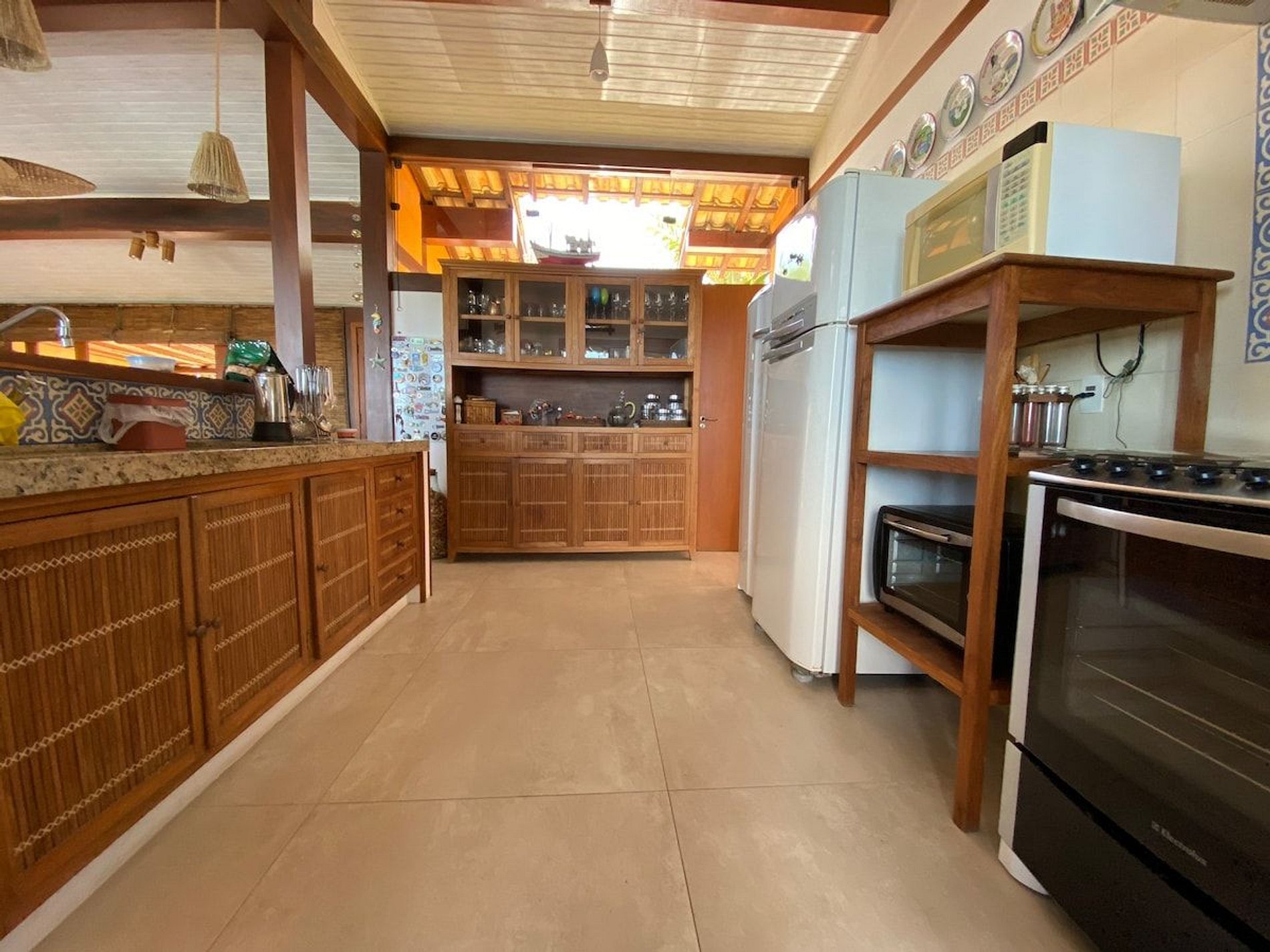A parte interna da casa conta com salas de estar, jantar, cozinha completa e um banheiro de apoio;