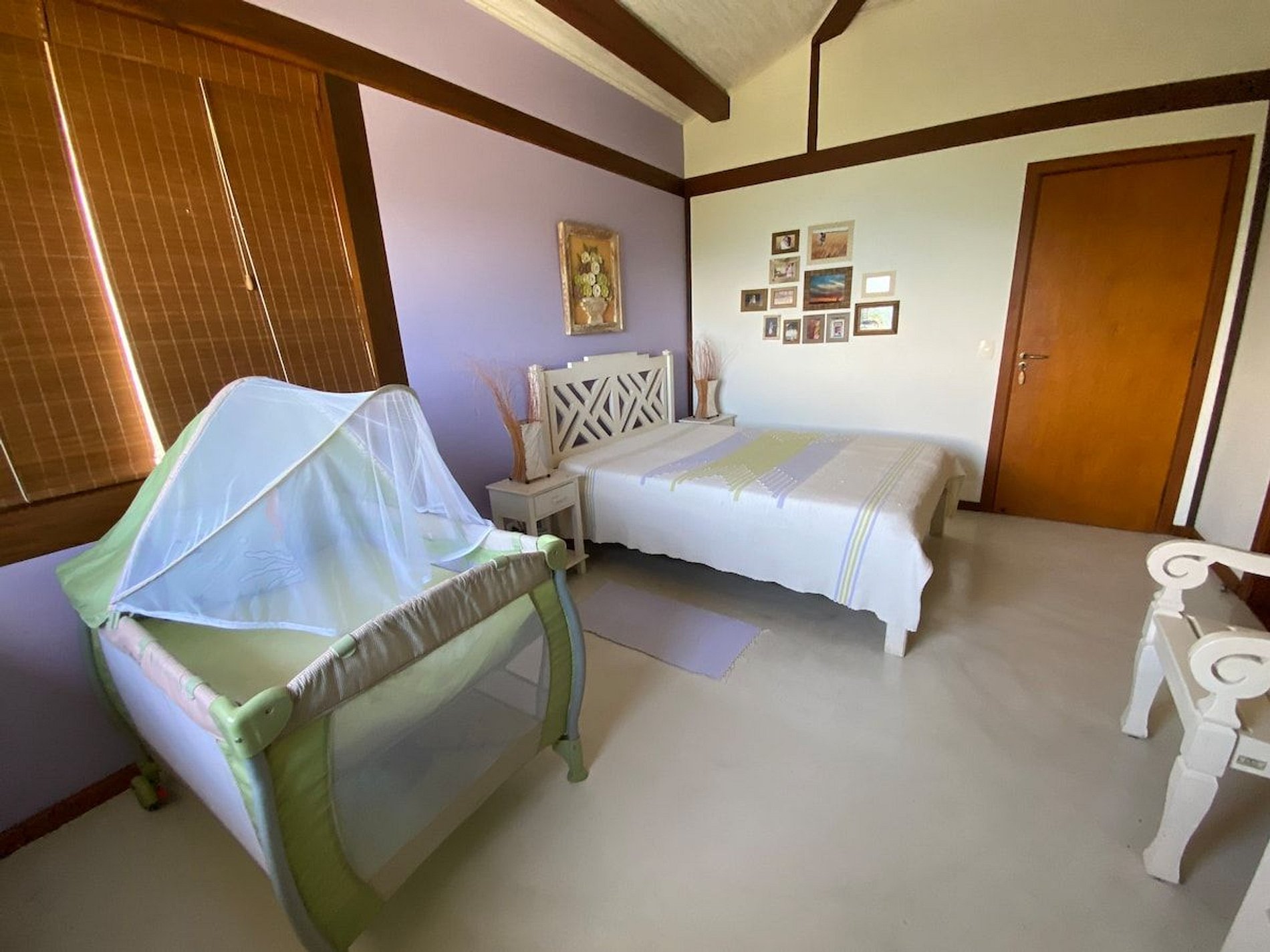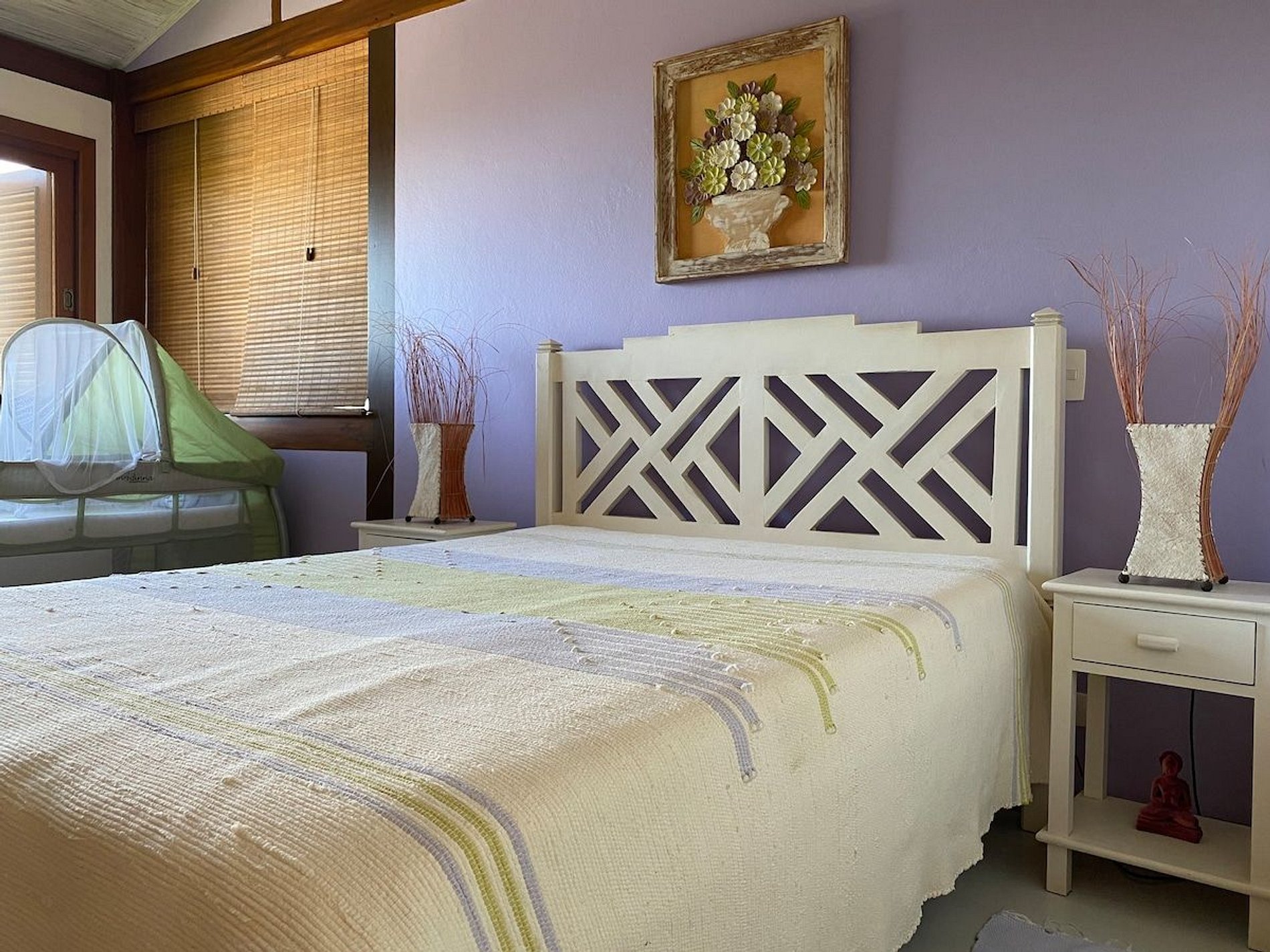 Suíte 6 - 1 cama de casal, 1 berço portátil, ventilador de teto e ar-condicionado.