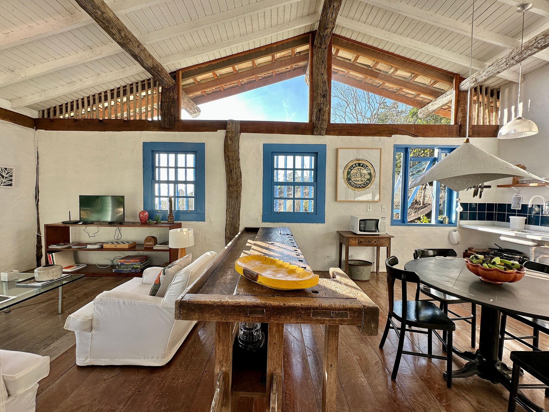 Para quem busca um refúgio confortável em meio à natureza, essa casa é perfeita! Linda propriedade no extremo Sul de Ilhabela, em um terreno de 1.100m2, todo cercado e com belo jardim. Acomoda até 4 pessoas, em 2 suítes com ar-condicionado. Construída em conceito aberto, suas salas de estar, TV, jantar e cozinha são integradas e voltadas para o mar, com direito ao pôr do sol mais bonito de toda ilha! Smart TV, Netflix, Wi-fi e uma churrasqueira portátil. Pet pequeno e médio são bem-vindos!