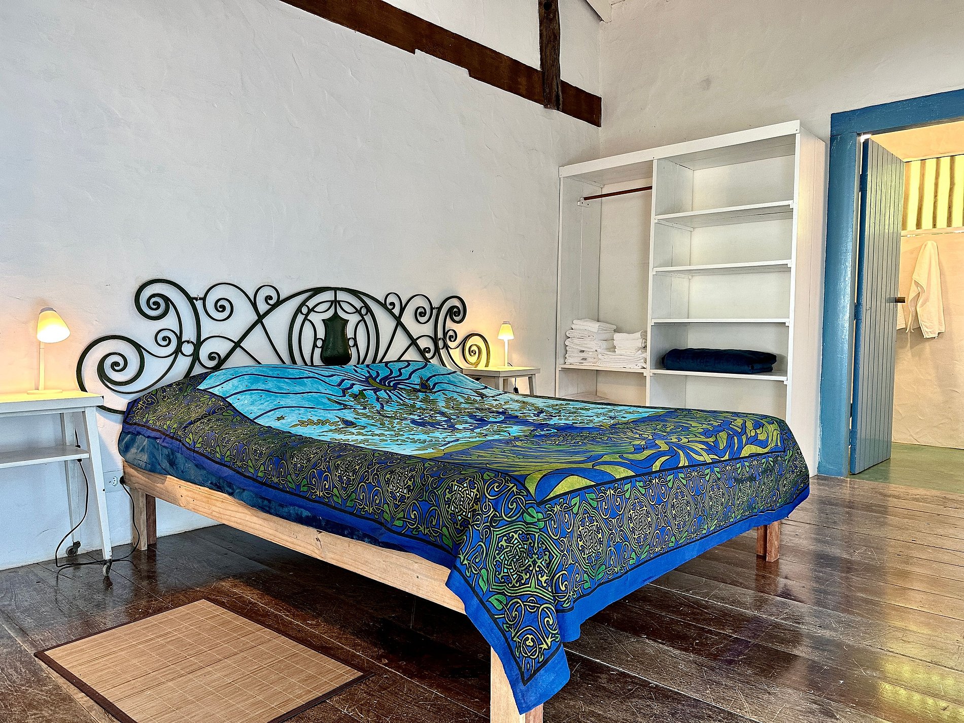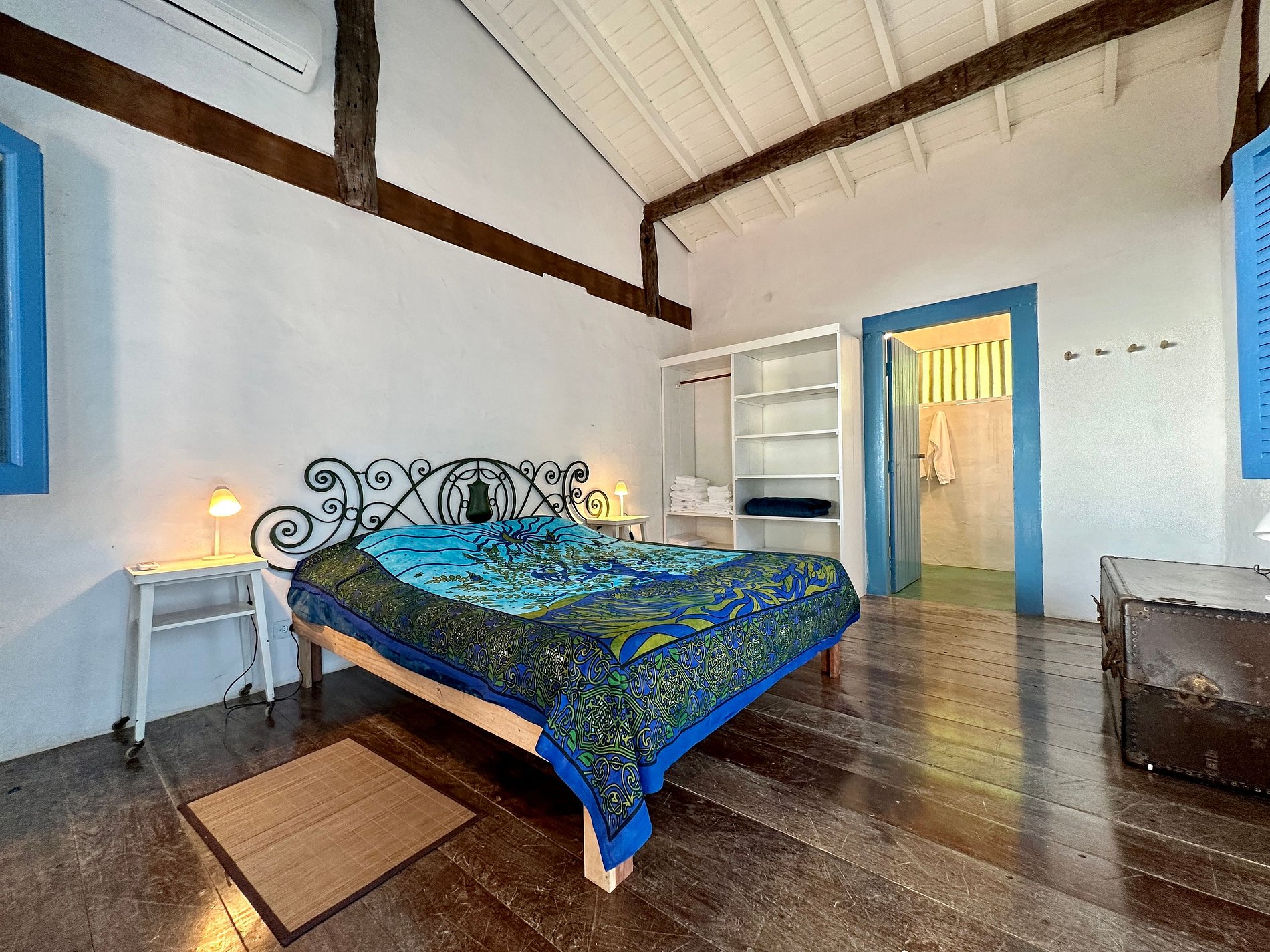 Suíte 1 - 1 cama de casal king, armário aberto, enxoval completo e acesso à varanda com vista para o mar;