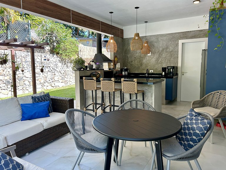 Uma das experiências mais agradáveis de Ilhabela. Casa moderna e muito bem decorada, no São Mathias, tradicional condomínio pé na areia, na praia da Feiticeira, ao Sul de Ilhabela, onde o quintal é o mar. Ideal para 11 pessoas. São 4 suítes, todas com ar-condicionado. Salas de estar, jantar, cozinha climatizadas e varanda integrada. Smart TV e Wi-fi. Área externa perfeita, com piscina e espaço gourmet integrados, garantindo momentos inesquecíveis entre familiares e amigos!