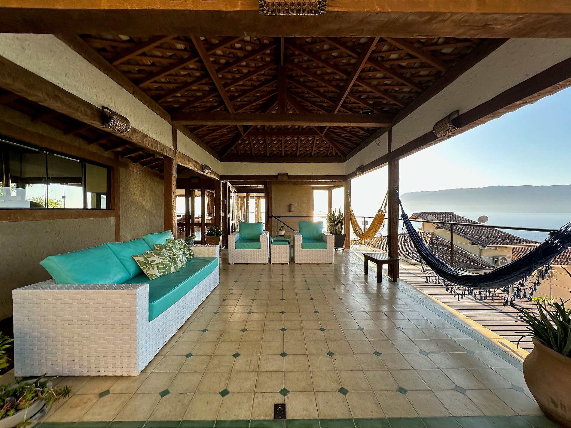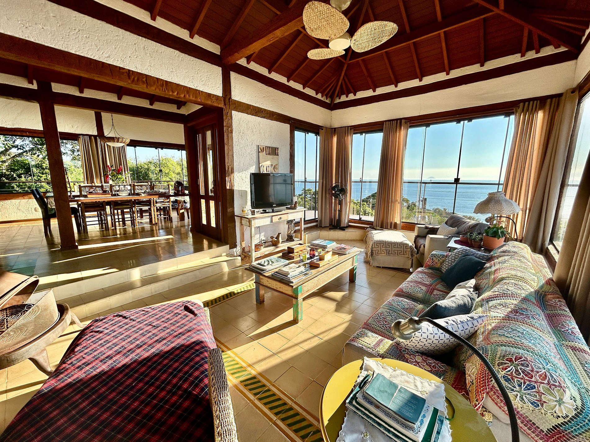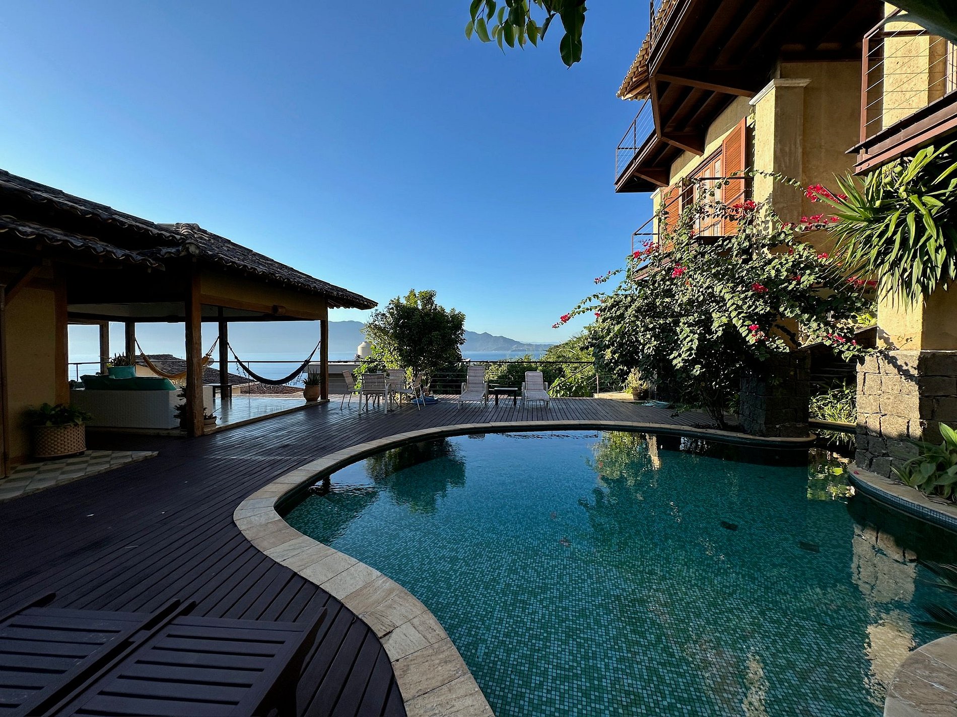 Casa confortável, com um visual deslumbrante de mar/montanha e acesso para piscinas naturais no mar, excelentes para snorkel e pesca. Condomínio completo, no Sul da ilha, com píer, quadra de tênis, futebol e trilhas. Ideal para 13 pessoas. Conta com wi-fi e smart TV. São 2 blocos que podem ser utilizados pelos hóspedes: