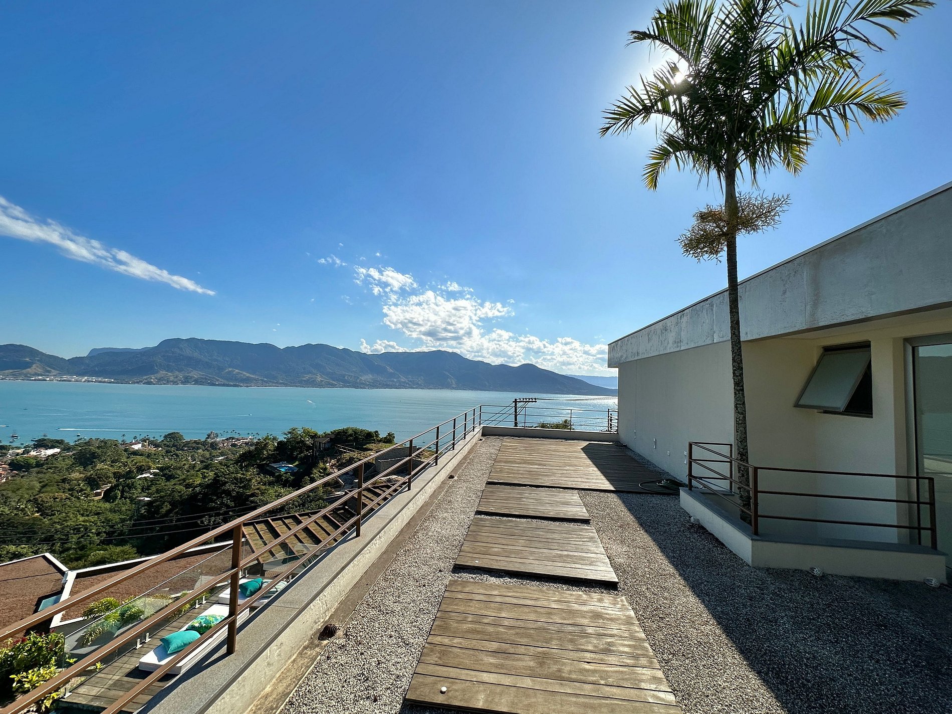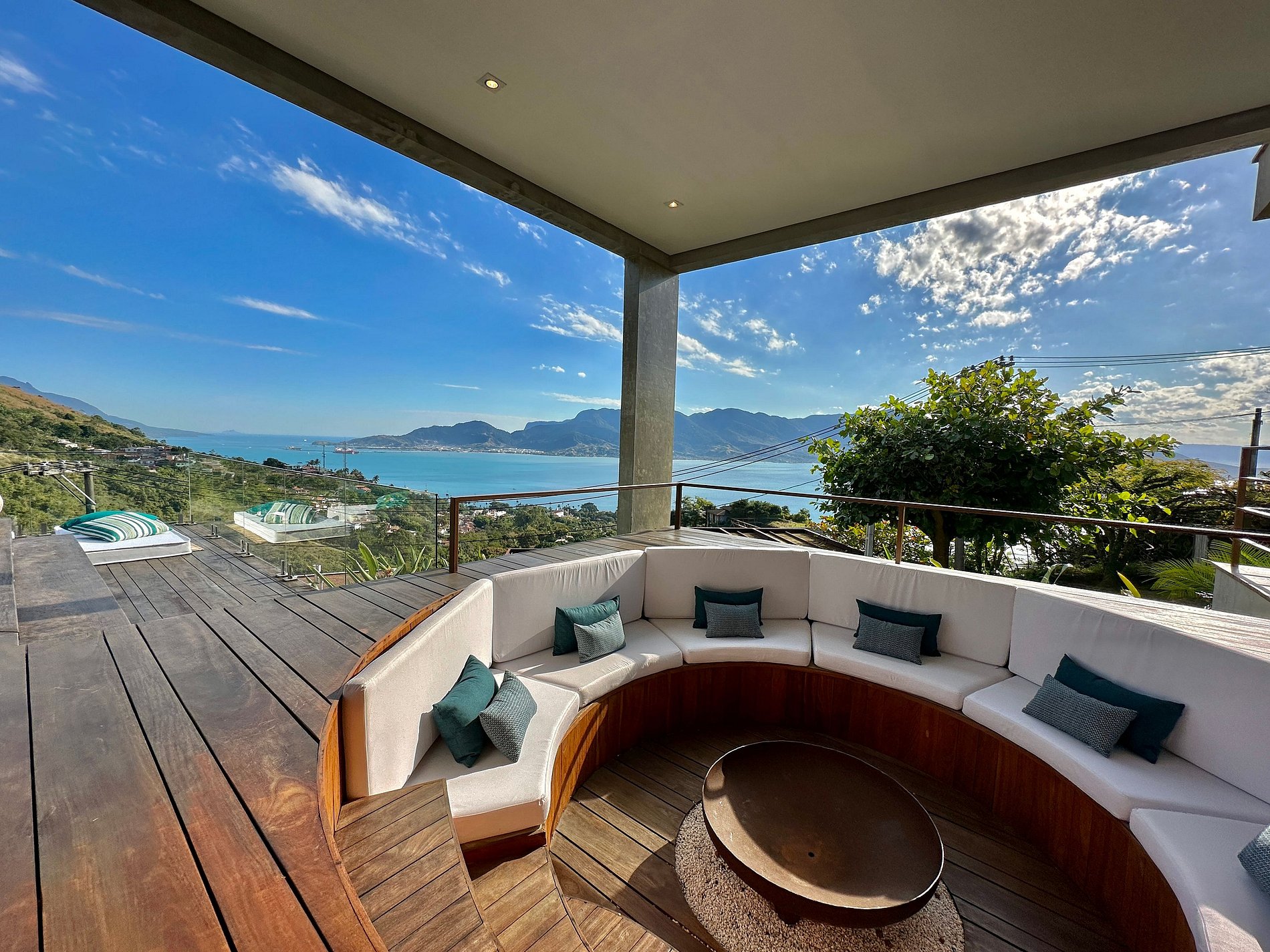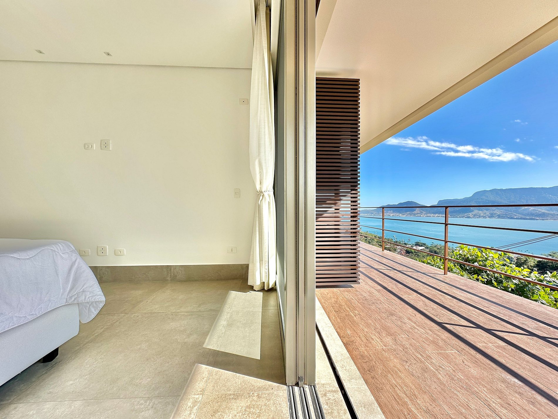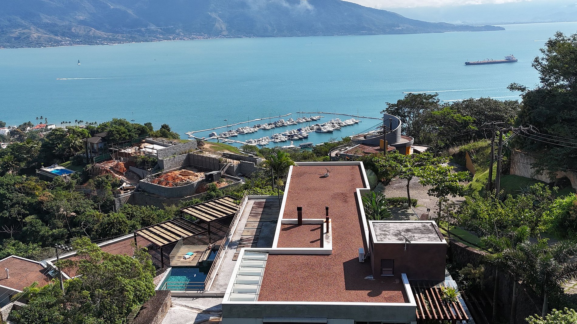 Casa moderna e luxuosa, no condomínio fechado Sobre o Mar, no Centro Histórico de Ilhabela. Um refúgio com conforto e requinte, em meio à exuberante Mata Atlântica. Ideal para 13 pessoas. São 5 suítes com vista para o mar e 2 quartos, todos com ar-condicionado. Áreas sociais integradas, visão de 180 graus para o canal. Sala de TV, cozinha completa, sala de jantar, lareira, varanda gourmet com churrasqueira, forno de pizza, máquina de gelo, piscina com borda infinita aquecida, SPA aquecido, sauna e fogueira externa.