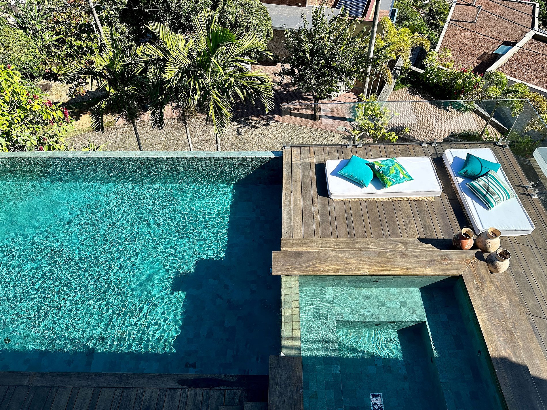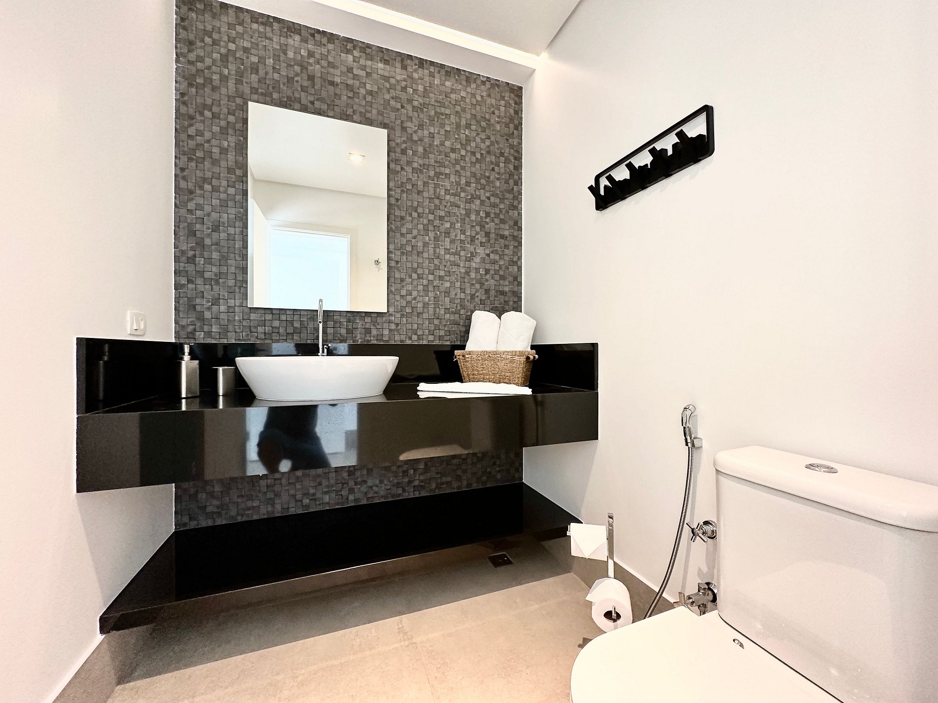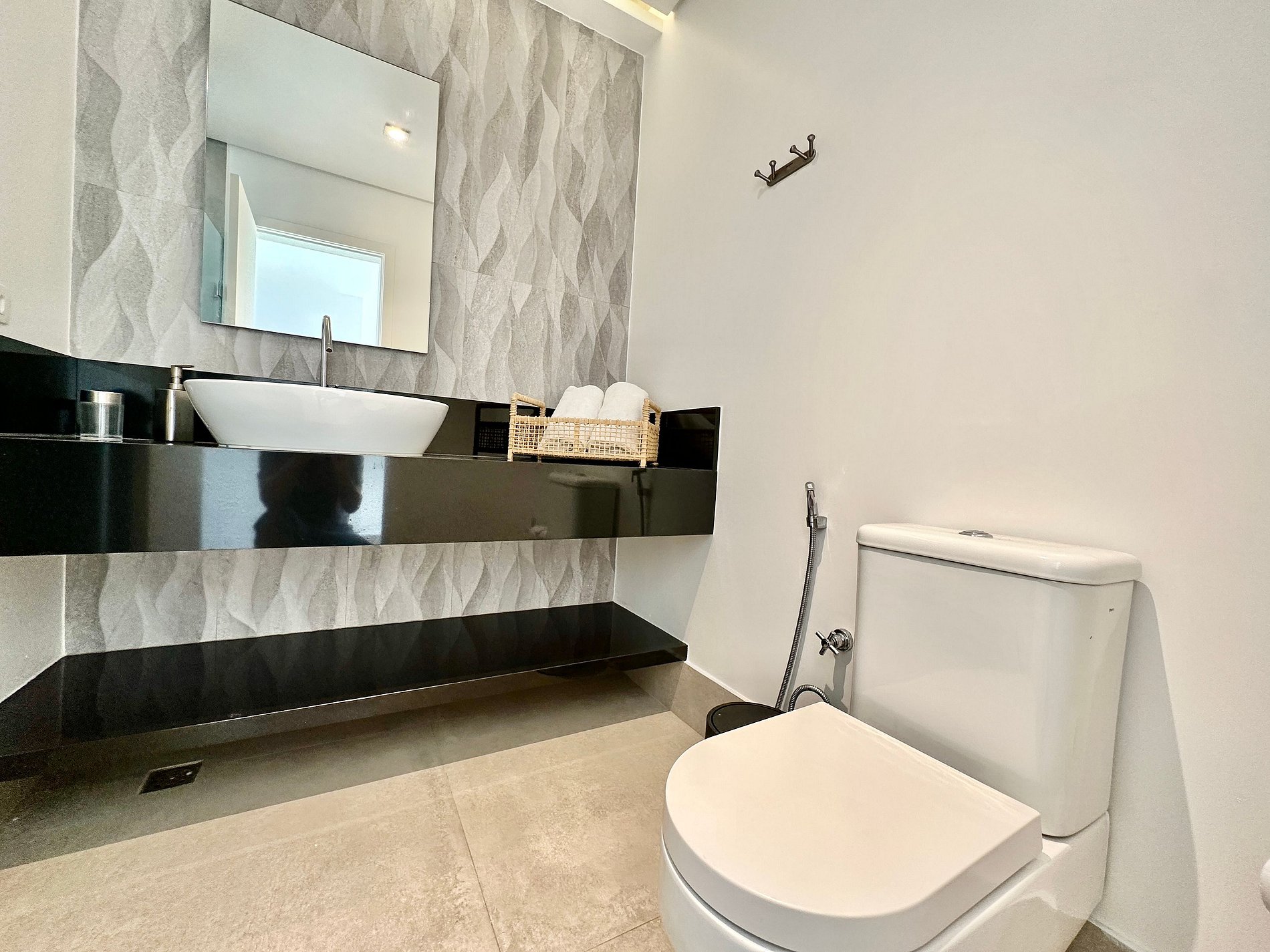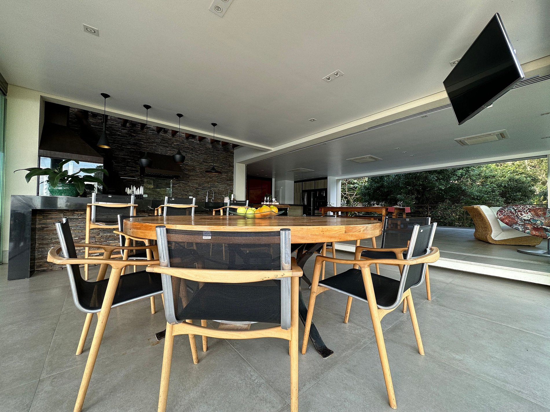 Casa moderna e luxuosa, no condomínio fechado Sobre o Mar, no Centro Histórico de Ilhabela. Um refúgio com conforto e requinte, em meio à exuberante Mata Atlântica. Ideal para 13 pessoas. São 5 suítes com vista para o mar e 2 quartos, todos com ar-condicionado. Áreas sociais integradas, visão de 180 graus para o canal. Sala de TV, cozinha completa, sala de jantar, lareira, varanda gourmet com churrasqueira, forno de pizza, máquina de gelo, piscina com borda infinita aquecida, SPA aquecido, sauna e fogueira externa.