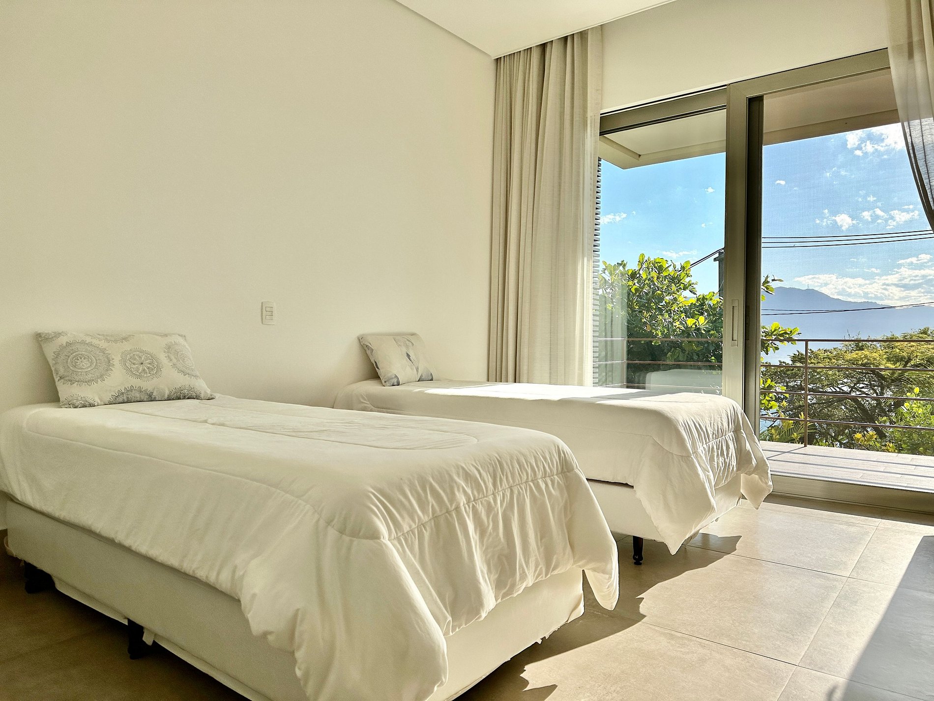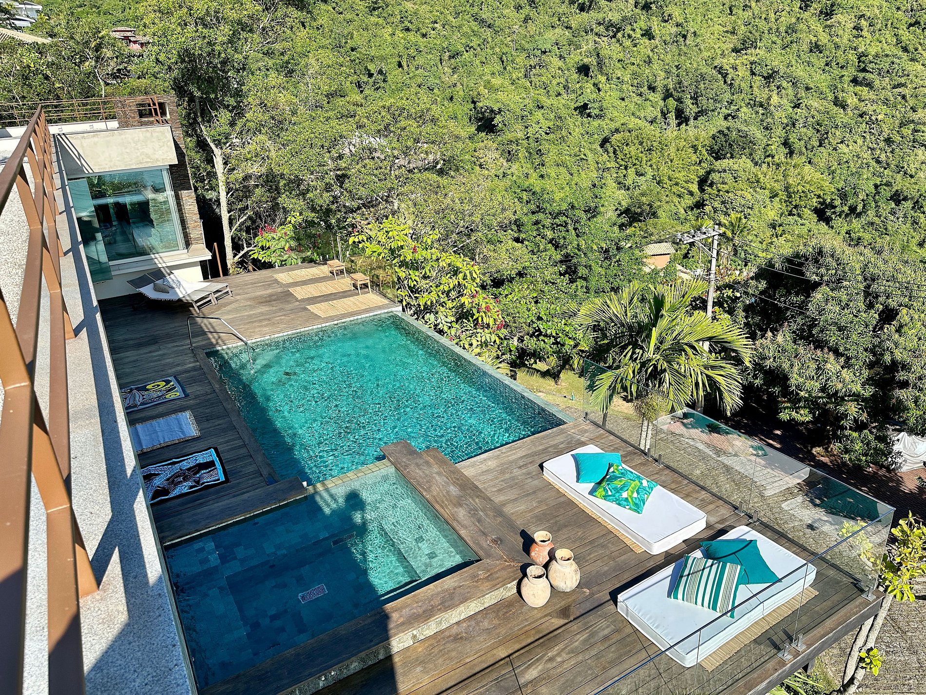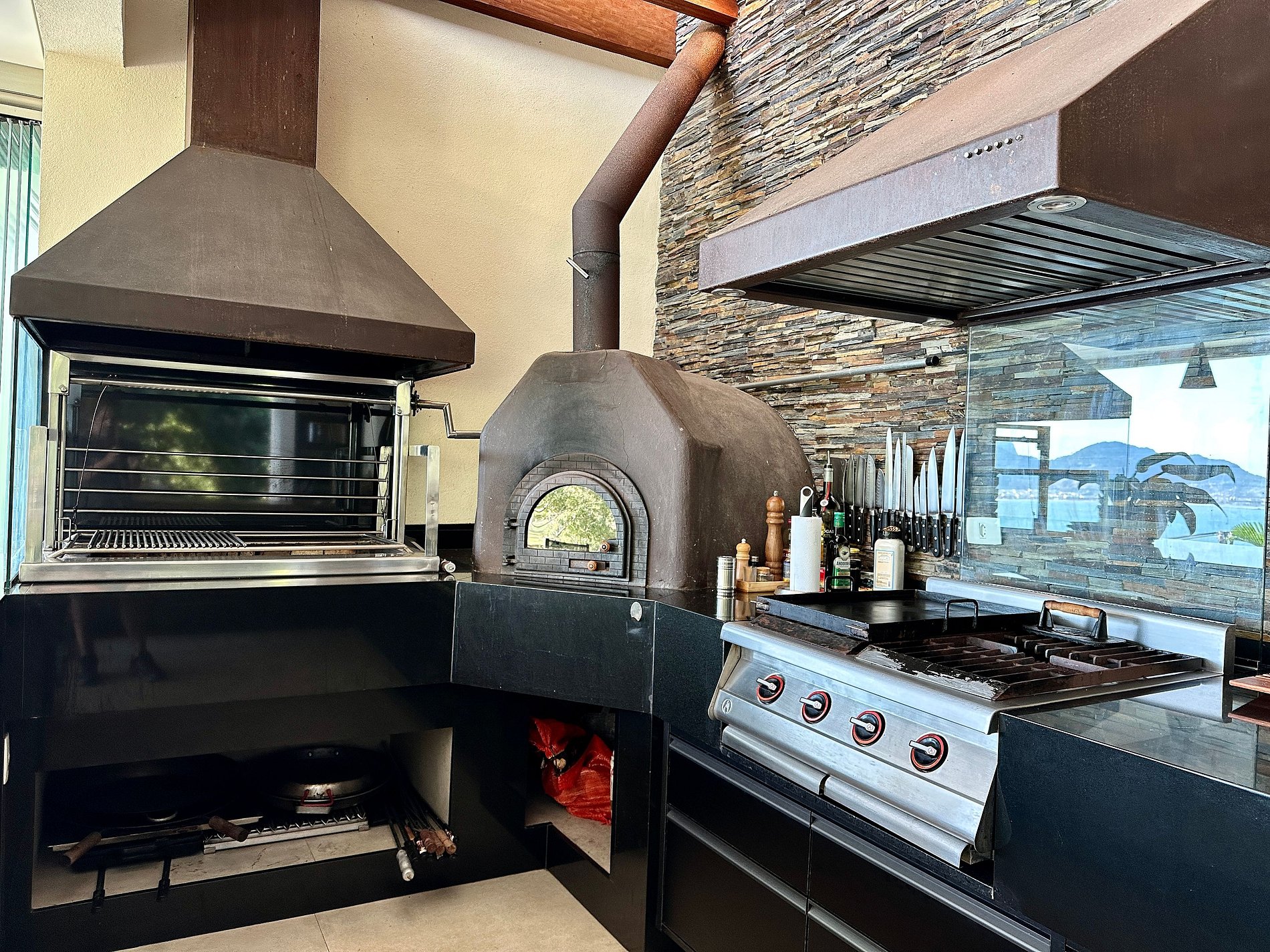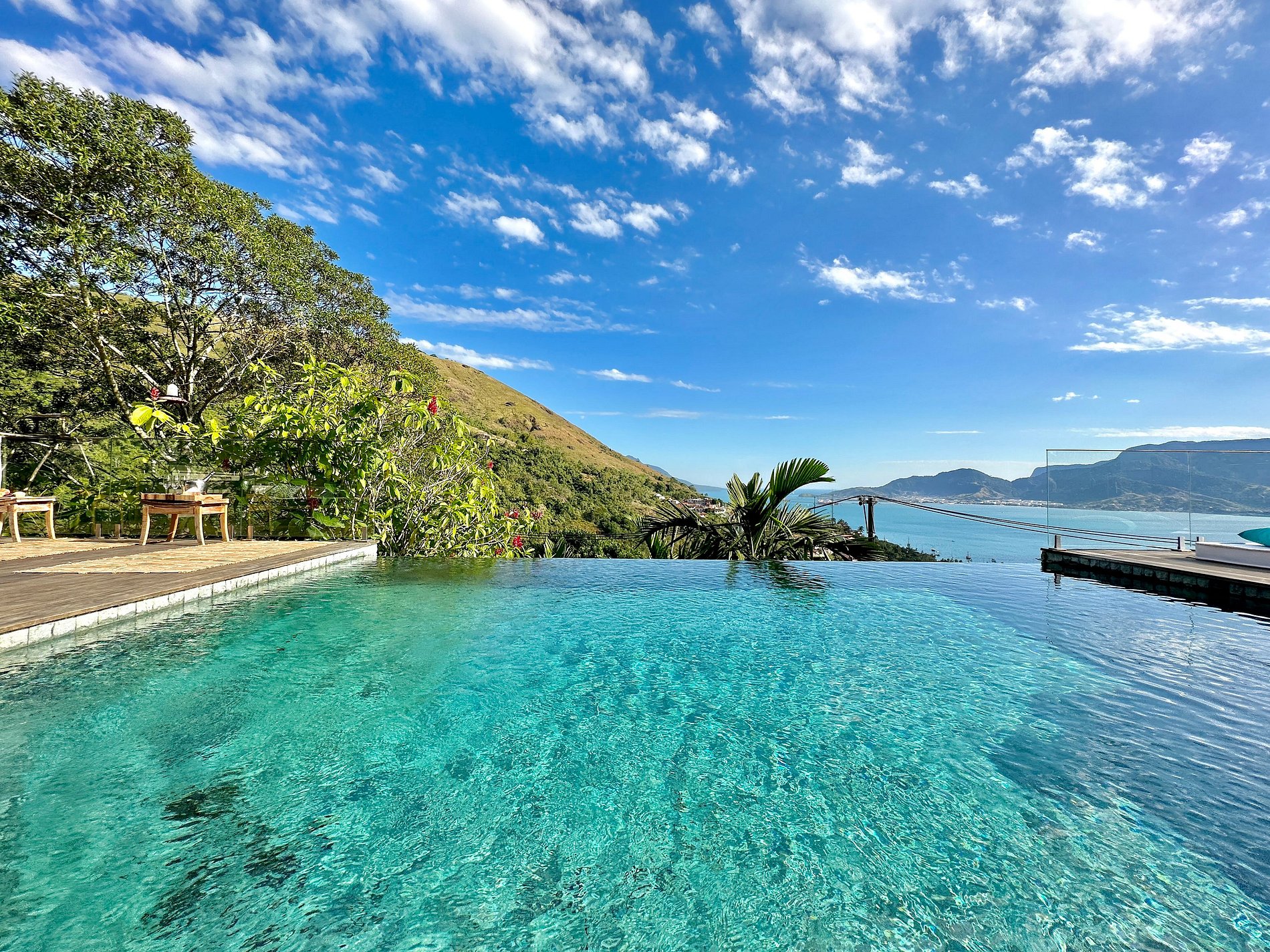 Casa moderna e luxuosa, no condomínio fechado Sobre o Mar, no Centro Histórico de Ilhabela. Um refúgio com conforto e requinte, em meio à exuberante Mata Atlântica. Ideal para 13 pessoas. São 5 suítes com vista para o mar e 2 quartos, todos com ar-condicionado. Áreas sociais integradas, visão de 180 graus para o canal. Sala de TV, cozinha completa, sala de jantar, lareira, varanda gourmet com churrasqueira, forno de pizza, máquina de gelo, piscina com borda infinita aquecida, SPA aquecido, sauna e fogueira externa.