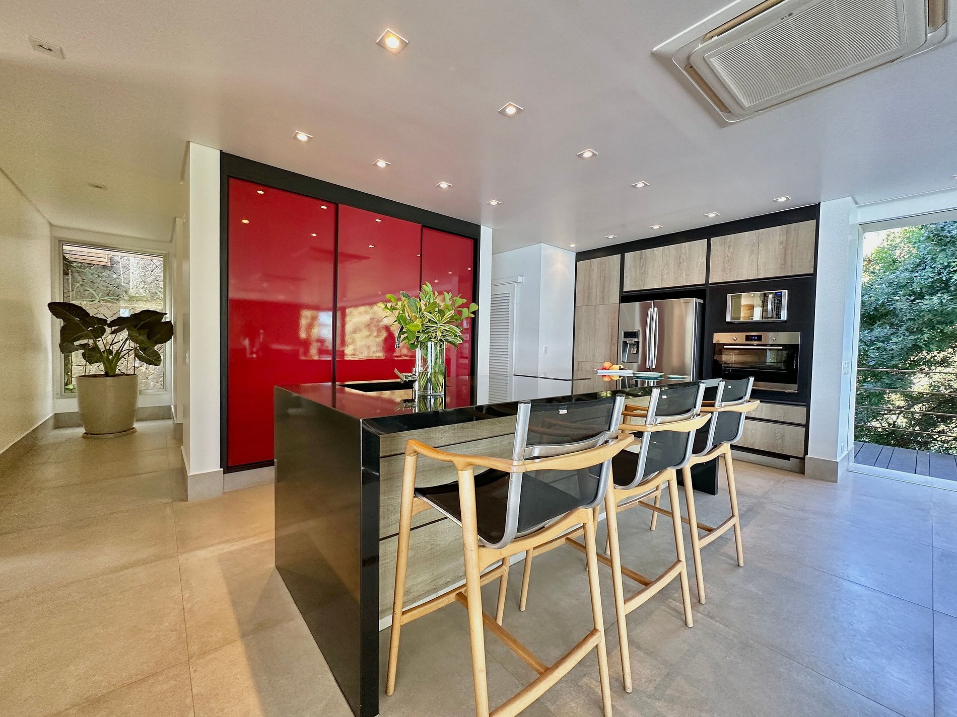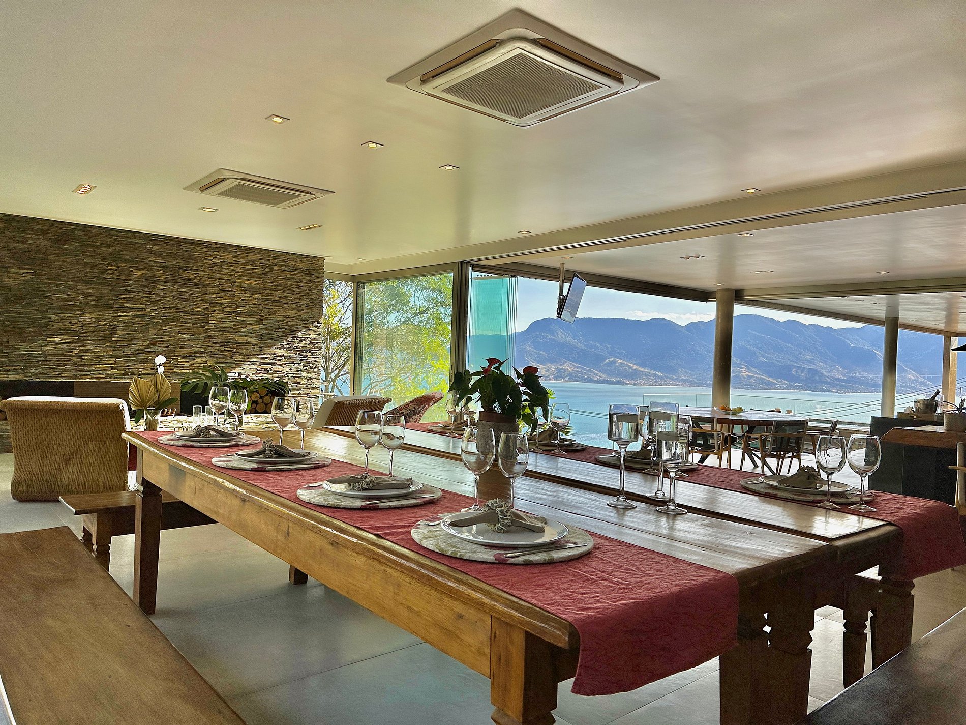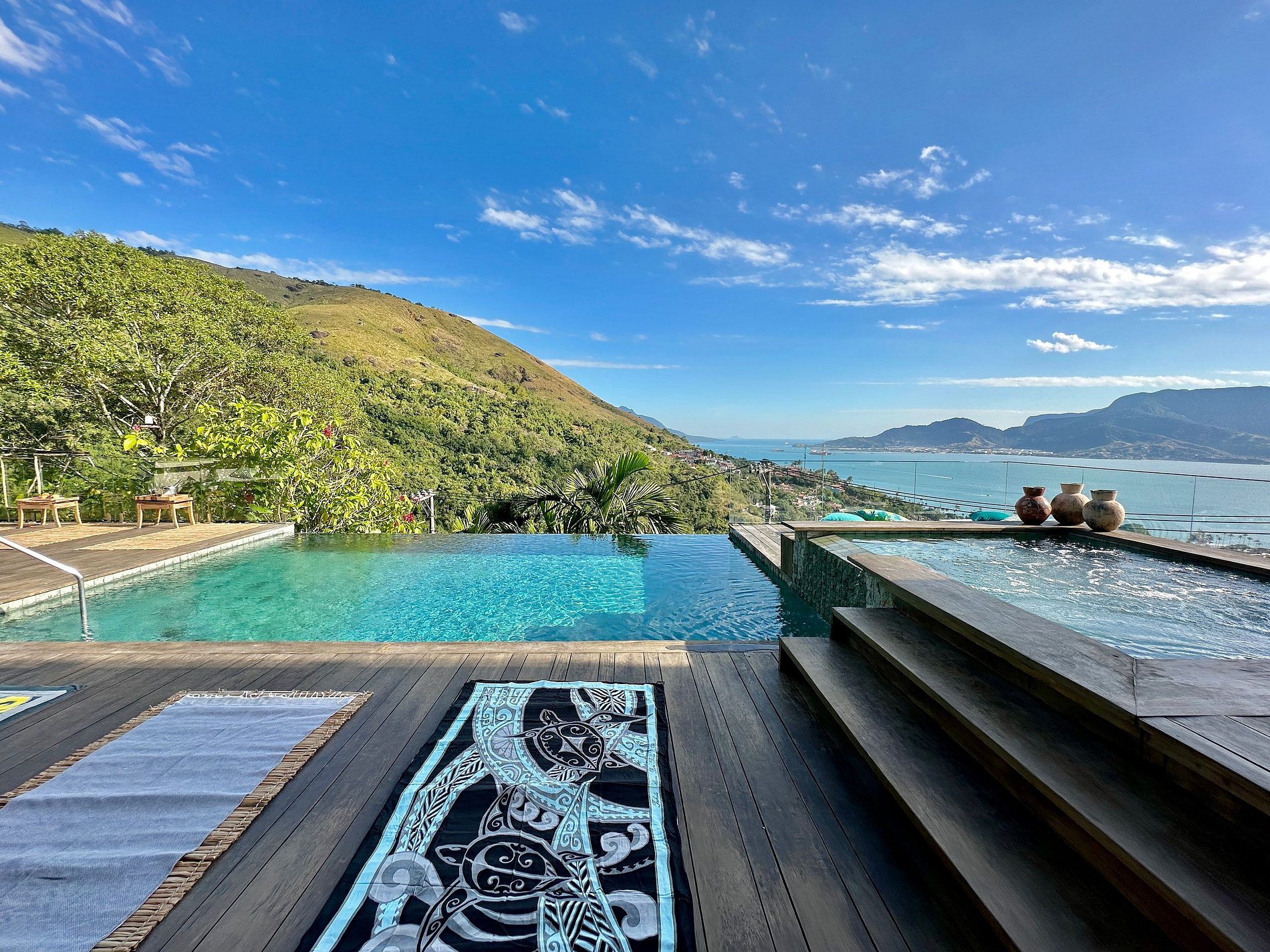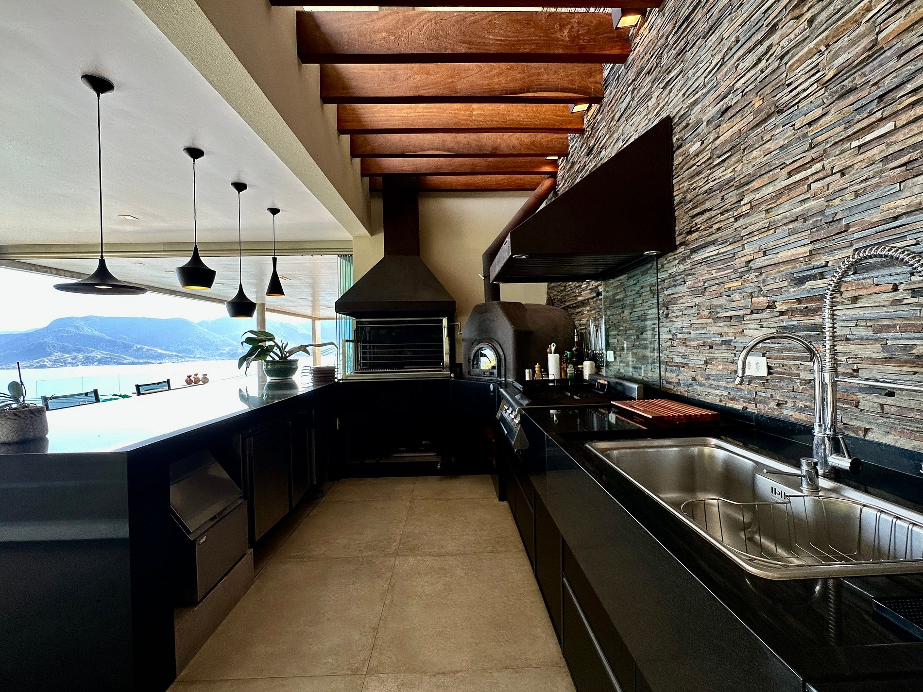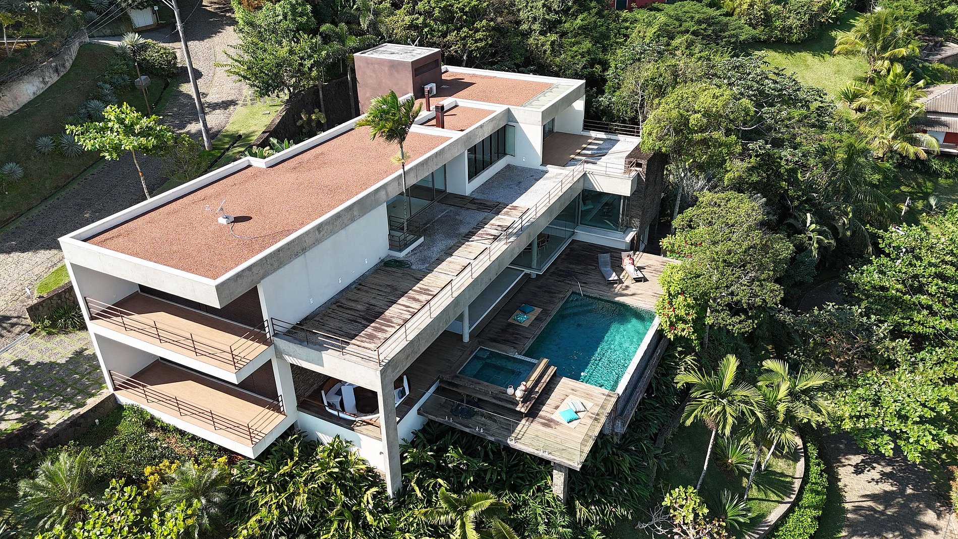 Casa moderna e luxuosa, no condomínio fechado Sobre o Mar, no Centro Histórico de Ilhabela. Um refúgio com conforto e requinte, em meio à exuberante Mata Atlântica. Ideal para 13 pessoas. São 5 suítes com vista para o mar e 2 quartos, todos com ar-condicionado. Áreas sociais integradas, visão de 180 graus para o canal. Sala de TV, cozinha completa, sala de jantar, lareira, varanda gourmet com churrasqueira, forno de pizza, máquina de gelo, piscina com borda infinita aquecida, SPA aquecido, sauna e fogueira externa.