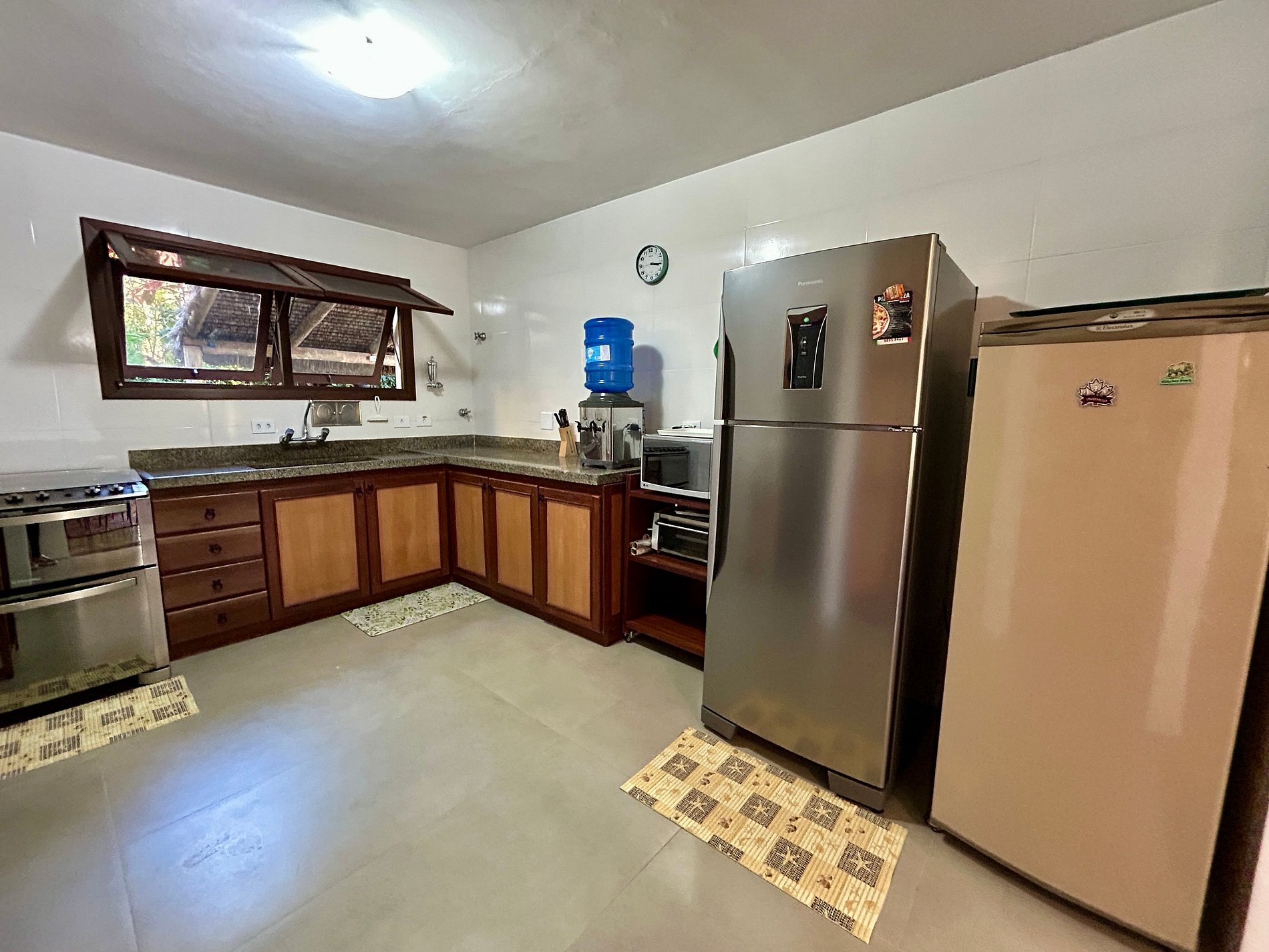 - Cozinha completa, com fogão, forno, micro-ondas, geladeira, filtro de água, liquidificador, torradeira, louças, talheres e demais utensílios para uma estadia perfeita;