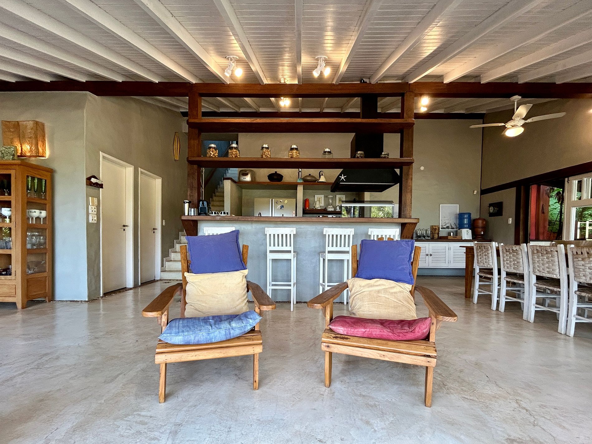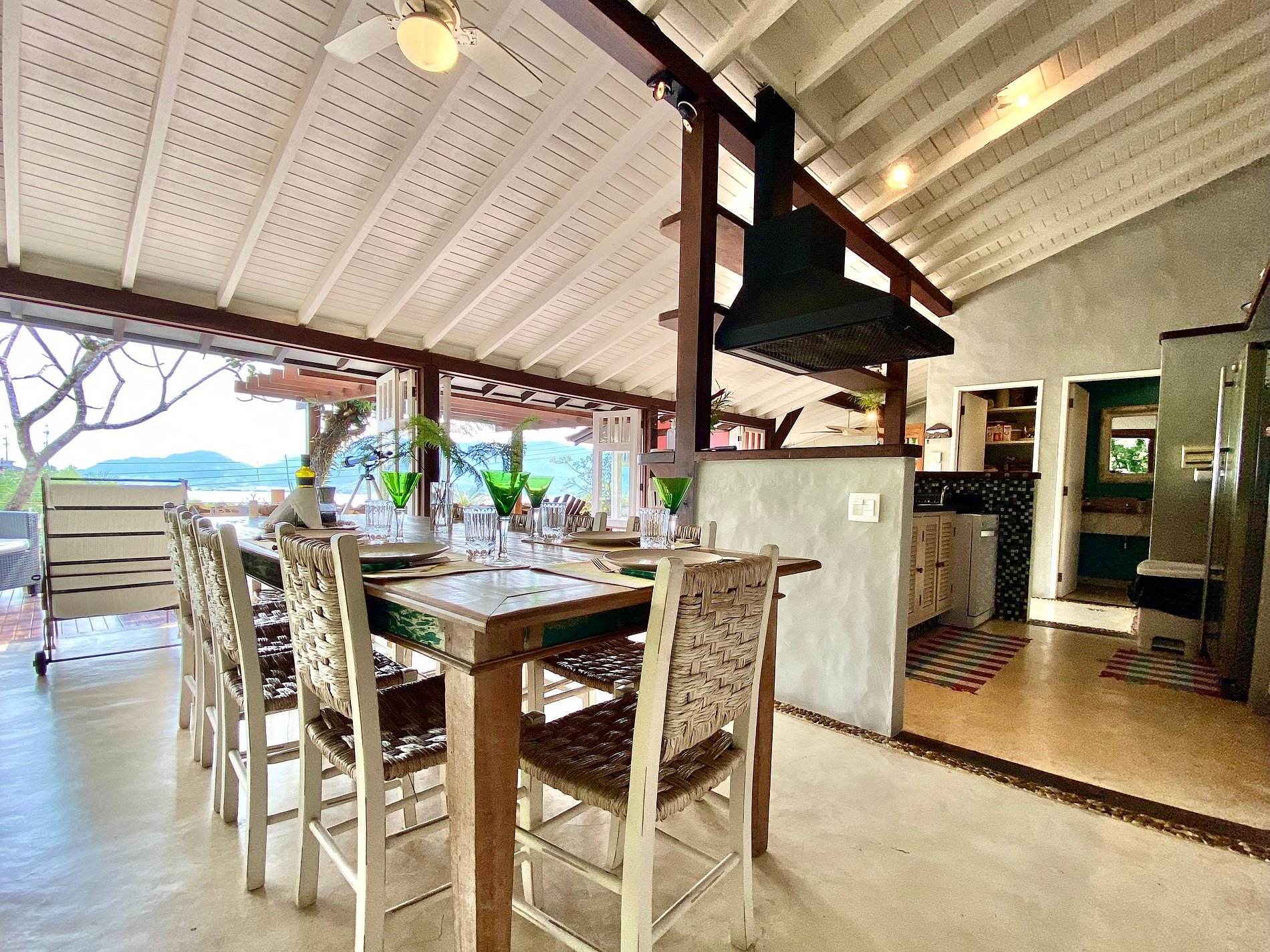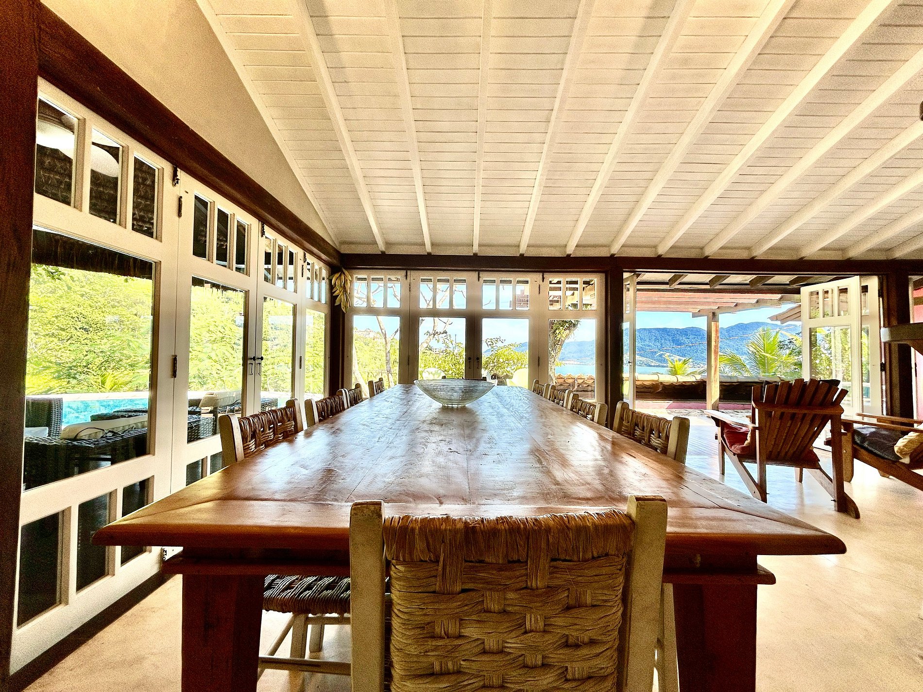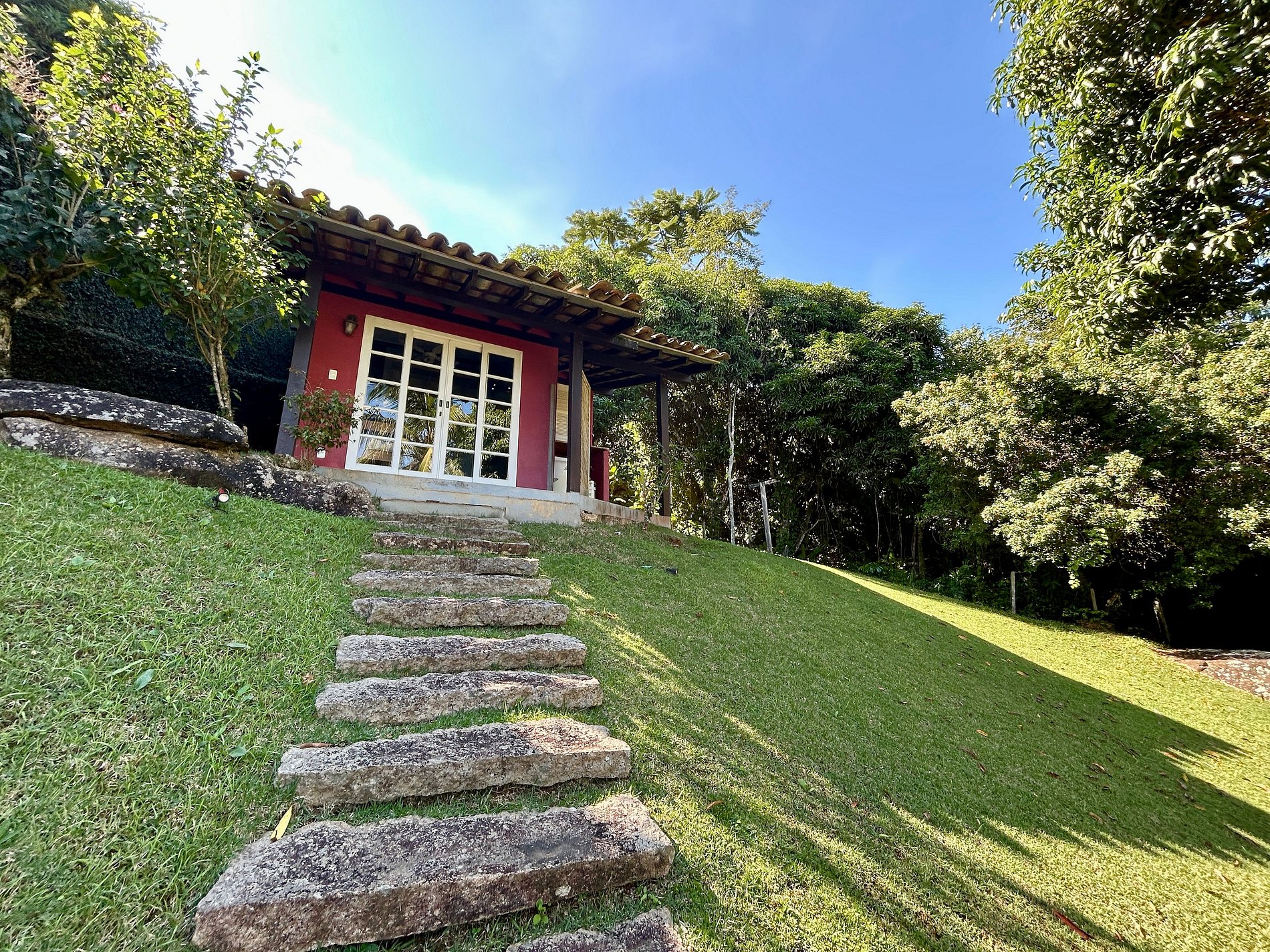 - Toda a propriedade é incrível e super bem equipada, tem tudo para uma estadia perfeita! O terreno é enorme e proporciona muito contato com a natureza. As portas das salas e cozinha com abertura para área externa, integram o espaço interno e tornam o ambiente muito arejado e iluminado.