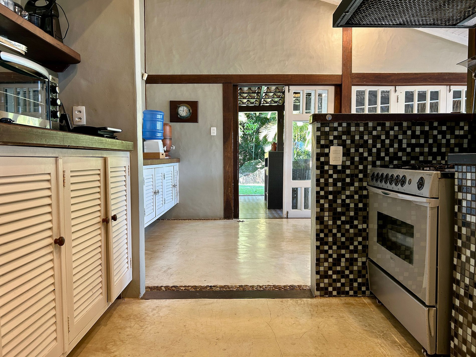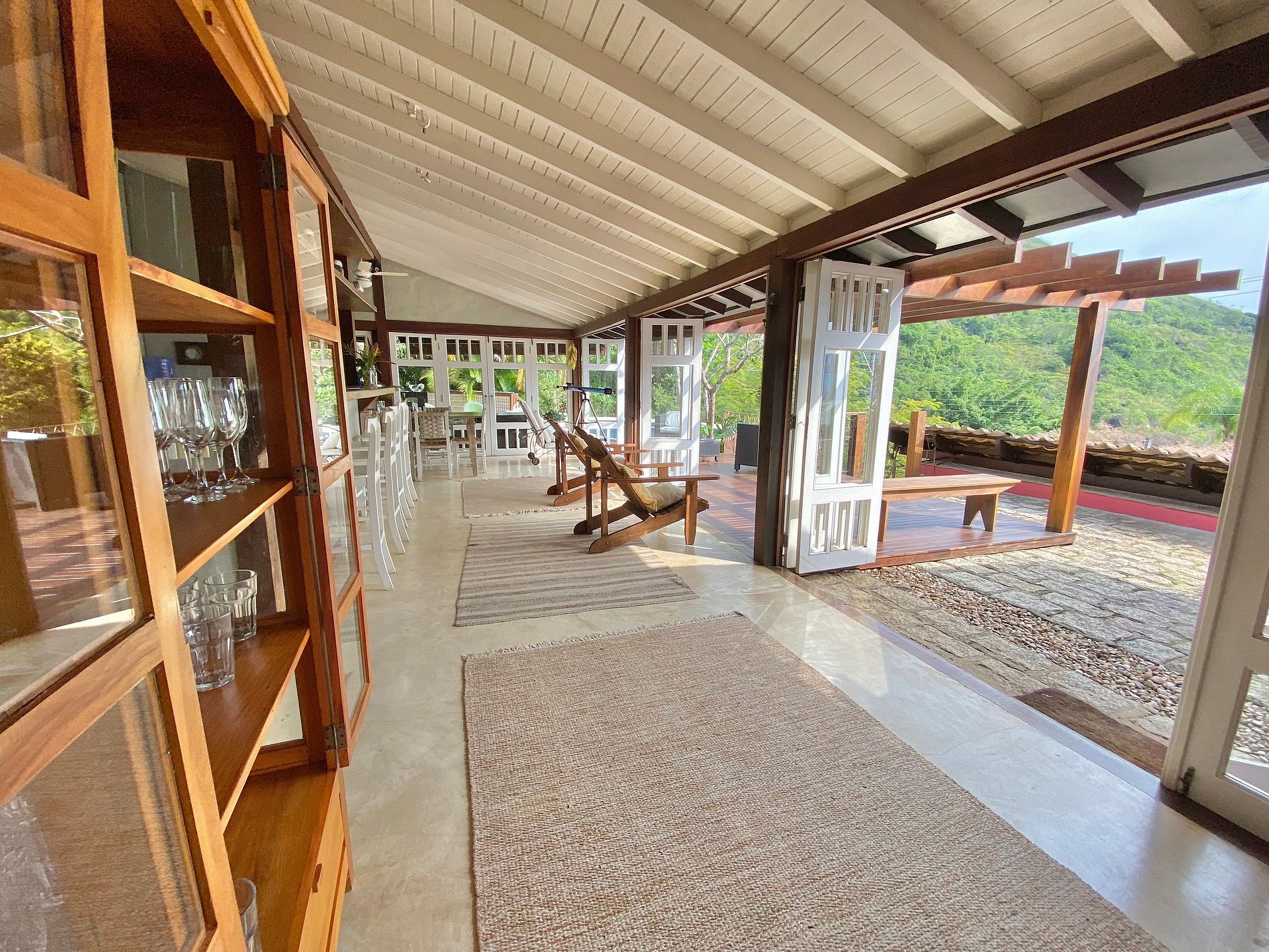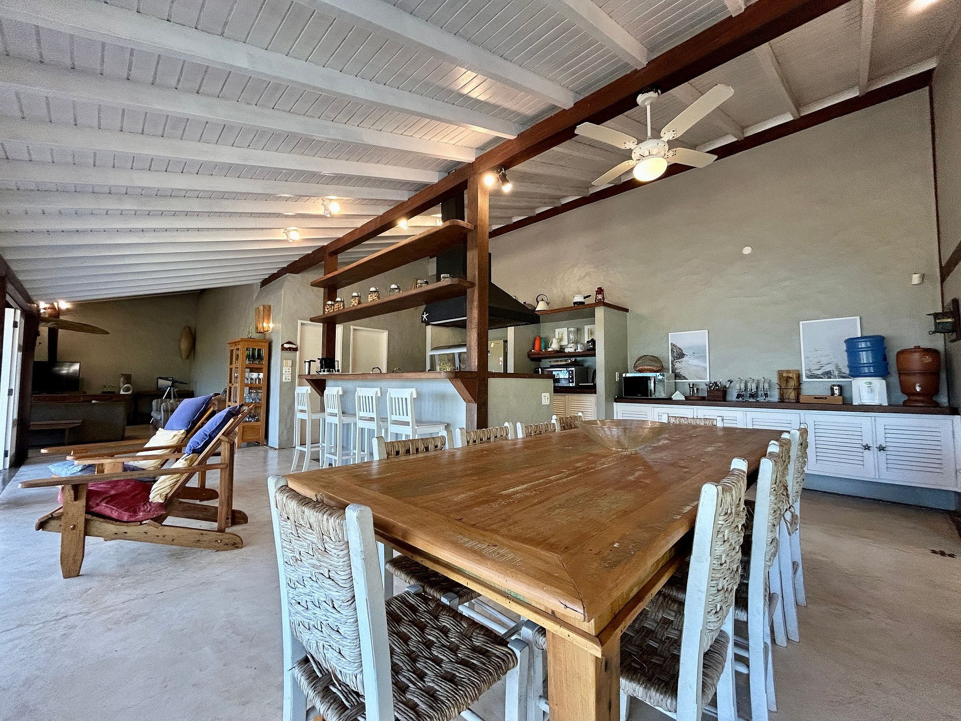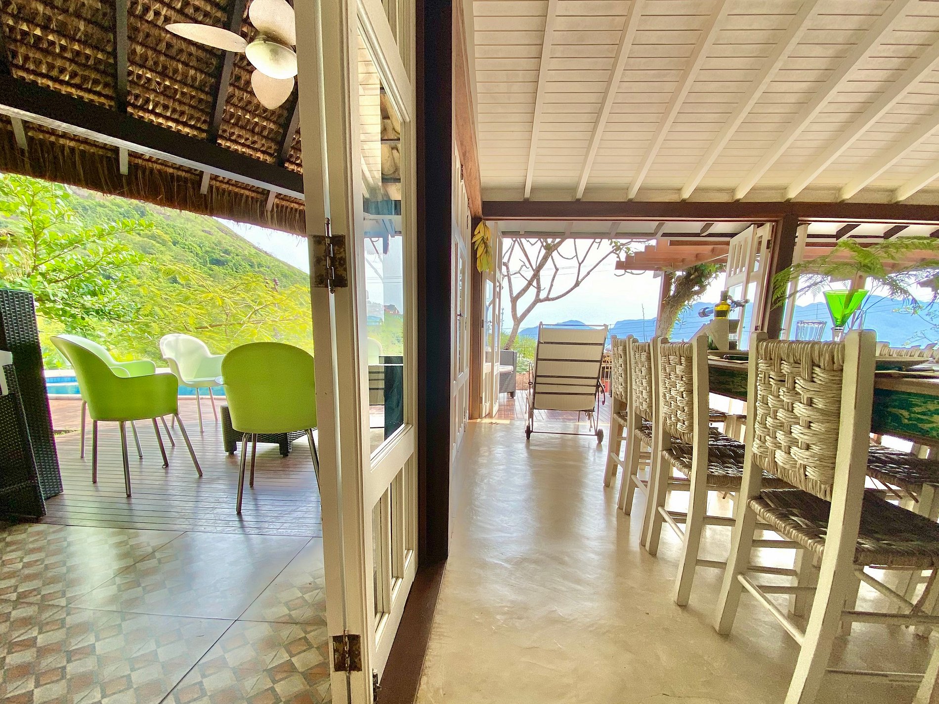 - Toda a propriedade é incrível e super bem equipada, tem tudo para uma estadia perfeita! O terreno é enorme e proporciona muito contato com a natureza. As portas das salas e cozinha com abertura para área externa, integram o espaço interno e tornam o ambiente muito arejado e iluminado.