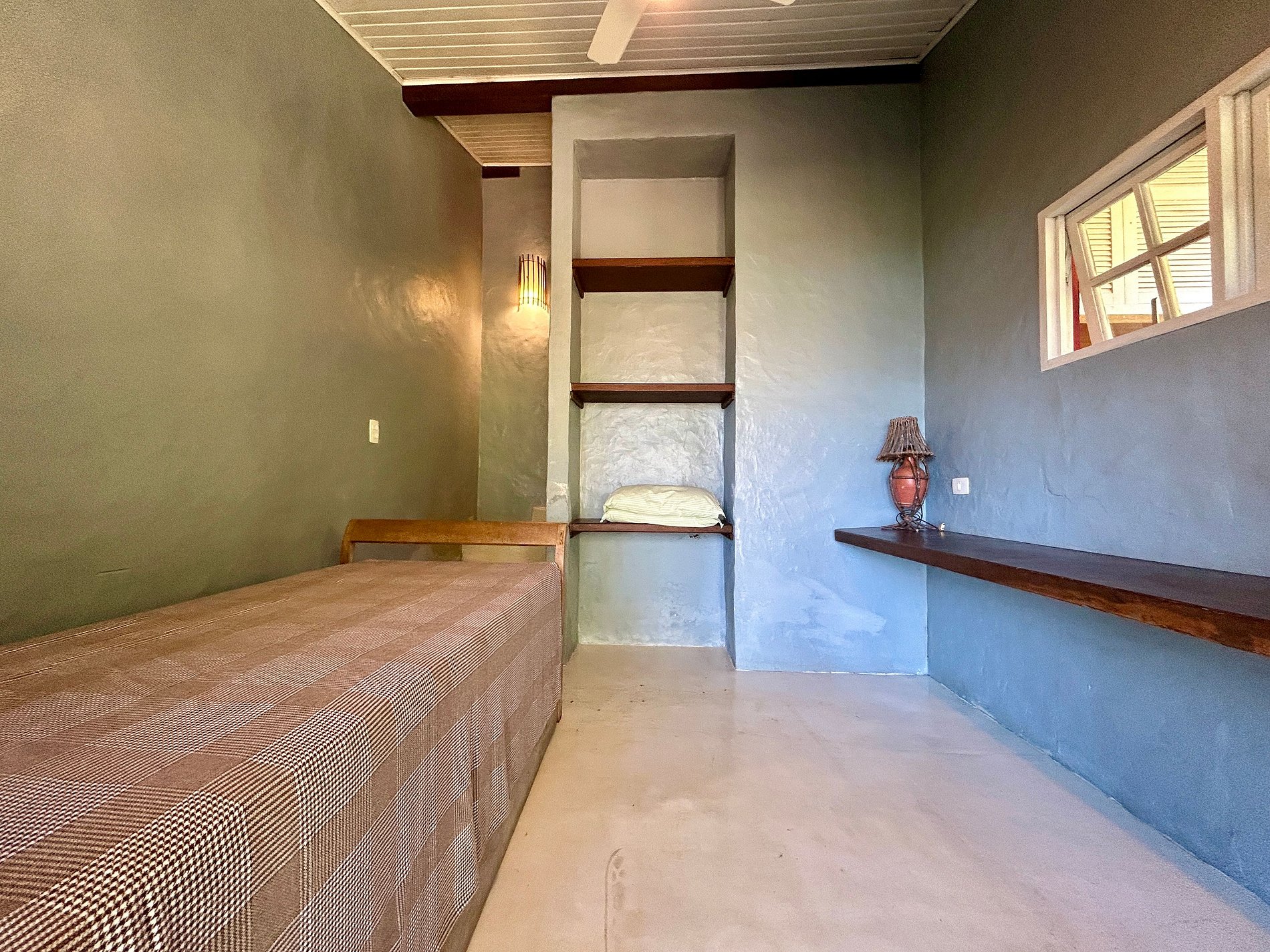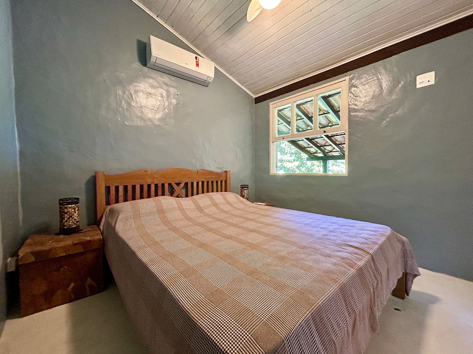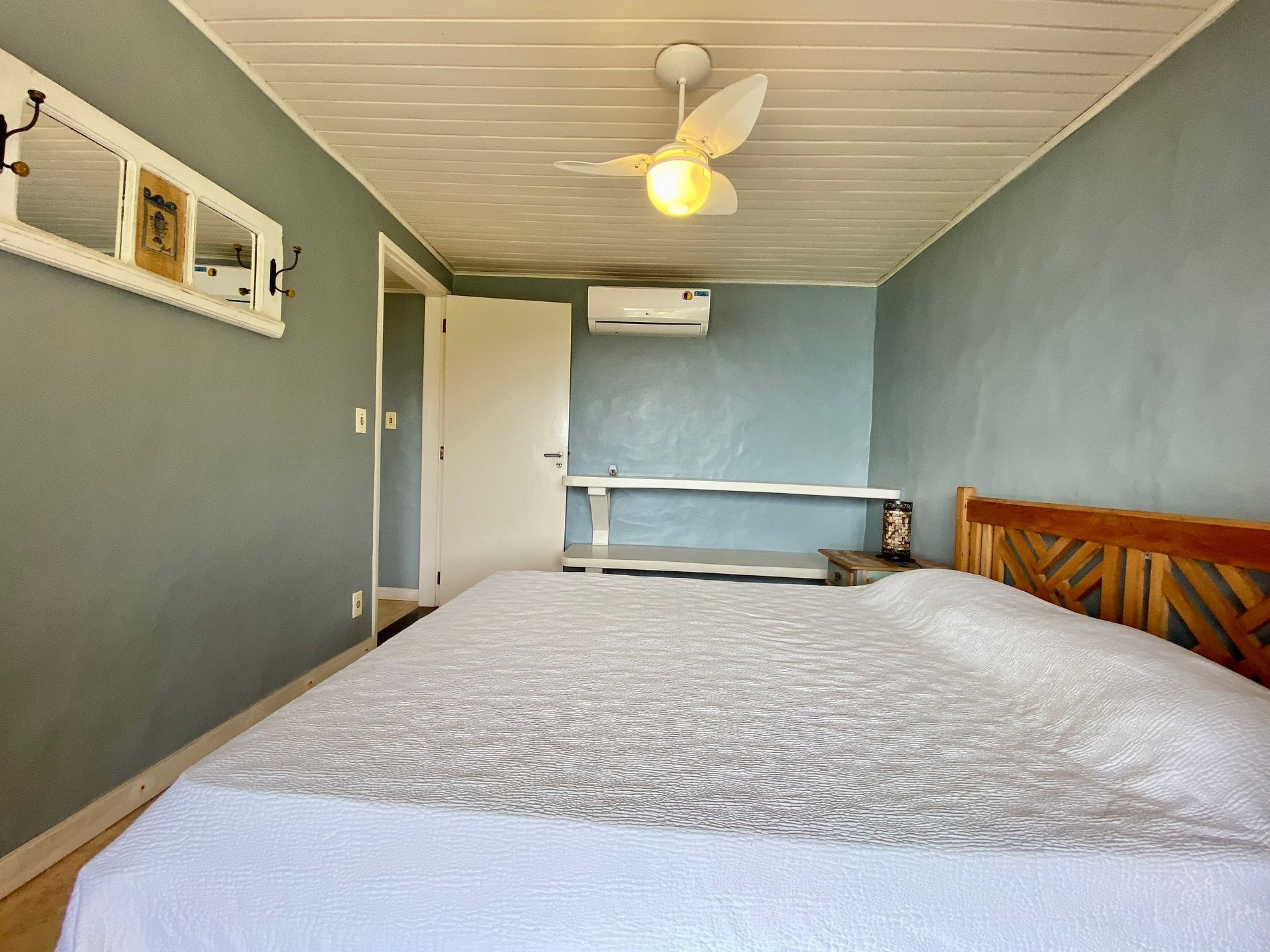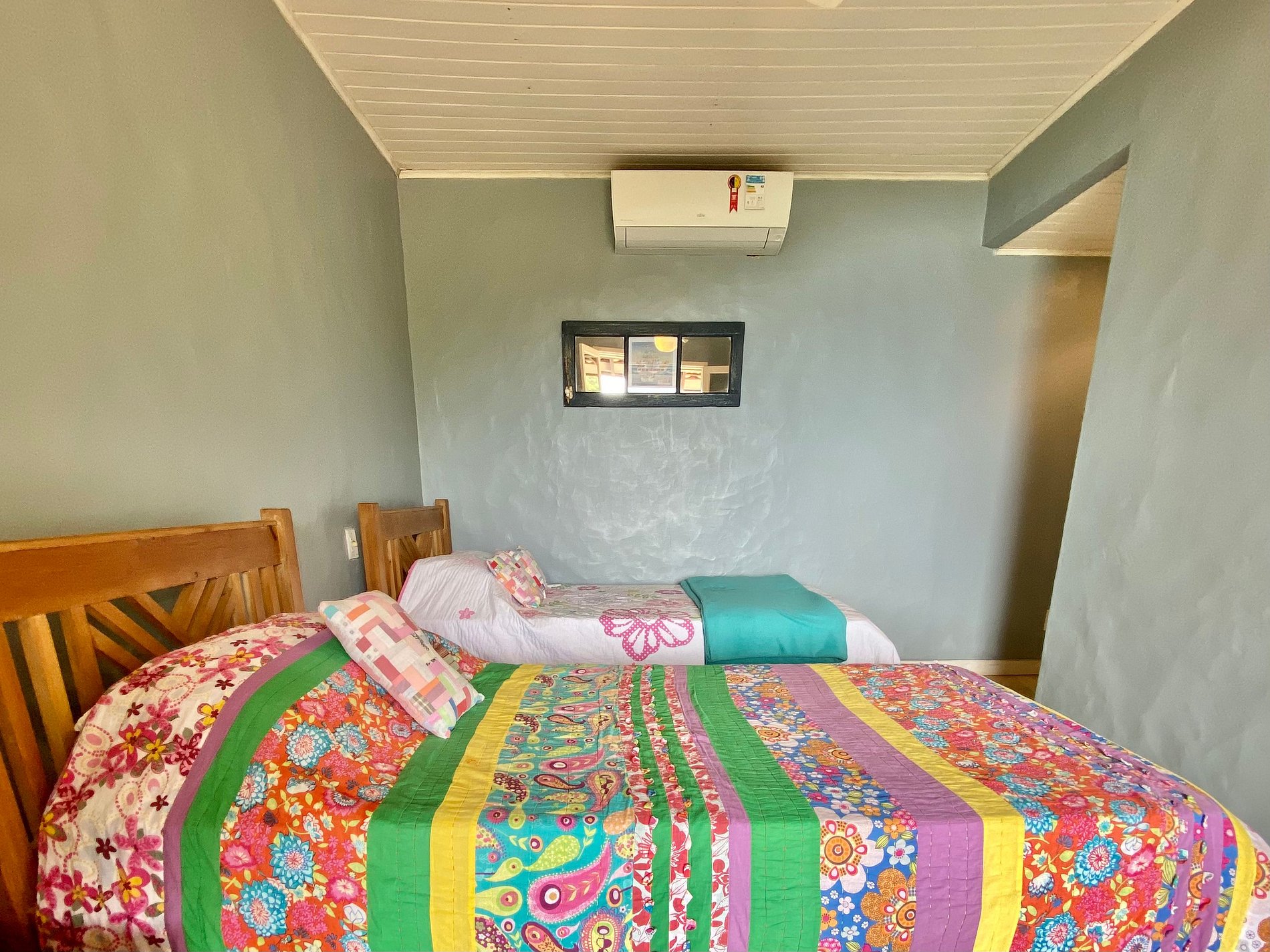 Suíte 3 (externa) - 1 cama de casal e uma bicama de solteiro, enxoval completo e ar-condicionado;