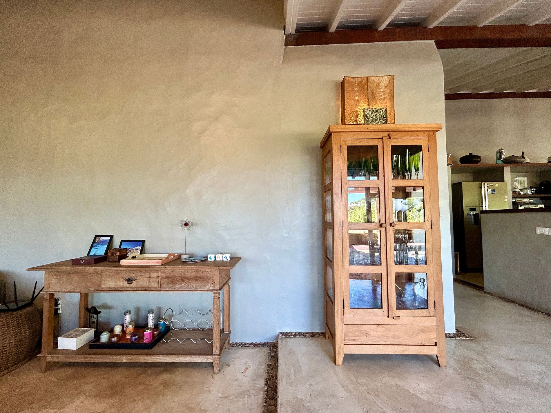- A parte interna conta com salas de estar, jantar e cozinha completa.