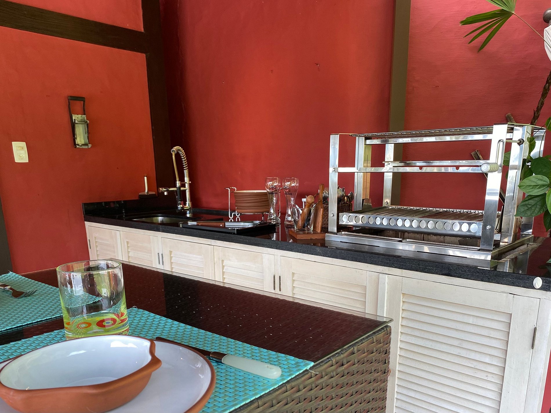 - Toda a propriedade é incrível e super bem equipada, tem tudo para uma estadia perfeita! O terreno é enorme e proporciona muito contato com a natureza. As portas das salas e cozinha com abertura para área externa, integram o espaço interno e tornam o ambiente muito arejado e iluminado.