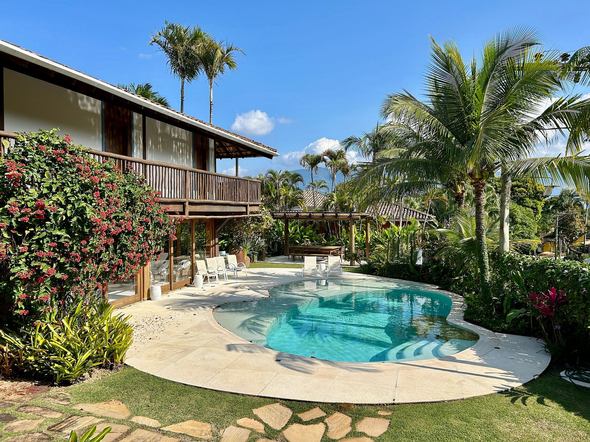 Sem dúvida, uma das melhores experiências de Ilhabela! Localização incrível, a 50m da praia do Engenho D'Água, região nobre e tranquila. São 5 suítes climatizadas. Para grupos familiares de até 10 pessoas. O condomínio Real Residence possui área exclusiva de praia, campo de futebol, gourmet e de descanso. Casa ampla, moderna, acolhedora e com decoração de bom gosto. Salas de estar, TV, jantar e cozinha integradas. Smart TV e Wi-fi. Espaço gourmet com churrasqueira, varanda, piscina e jardim!