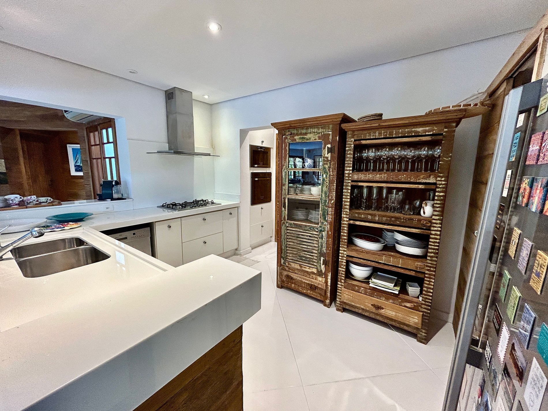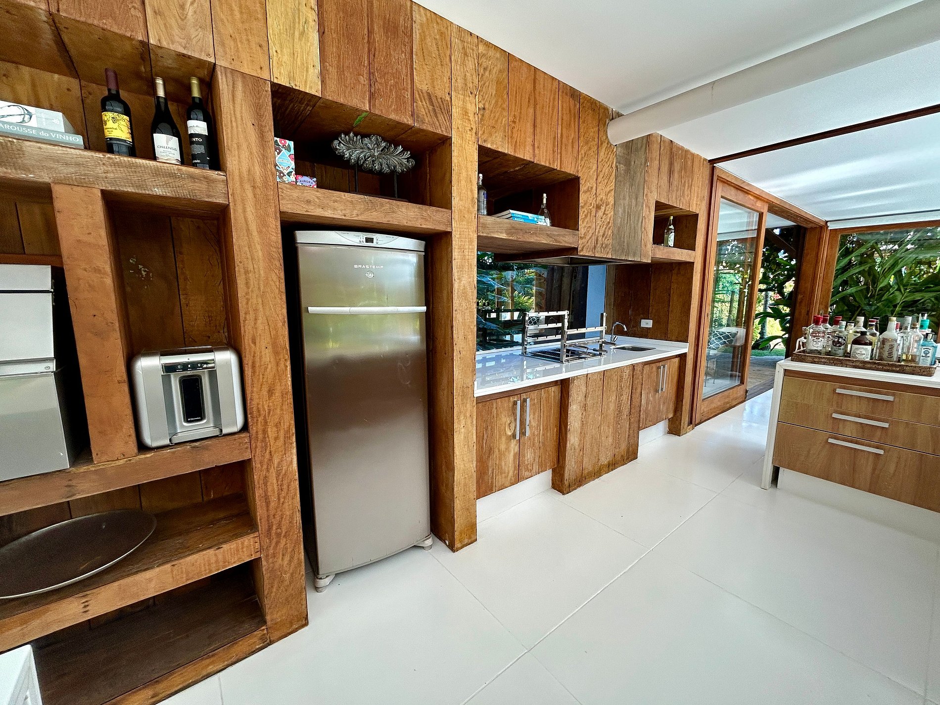 - Casa ampla, iluminada e arejada, que conta com lavabo, salas de estar, jantar, TV e cozinha totalmente integradas, em ambiente climatizado. Integrado à área interna e externa, um maravilhoso espaço gourmet com churrasqueira, fogão, máquina de gelo, geladeira, bancadas de apoio, mesa para refeições e uma área de estar muito confortável;