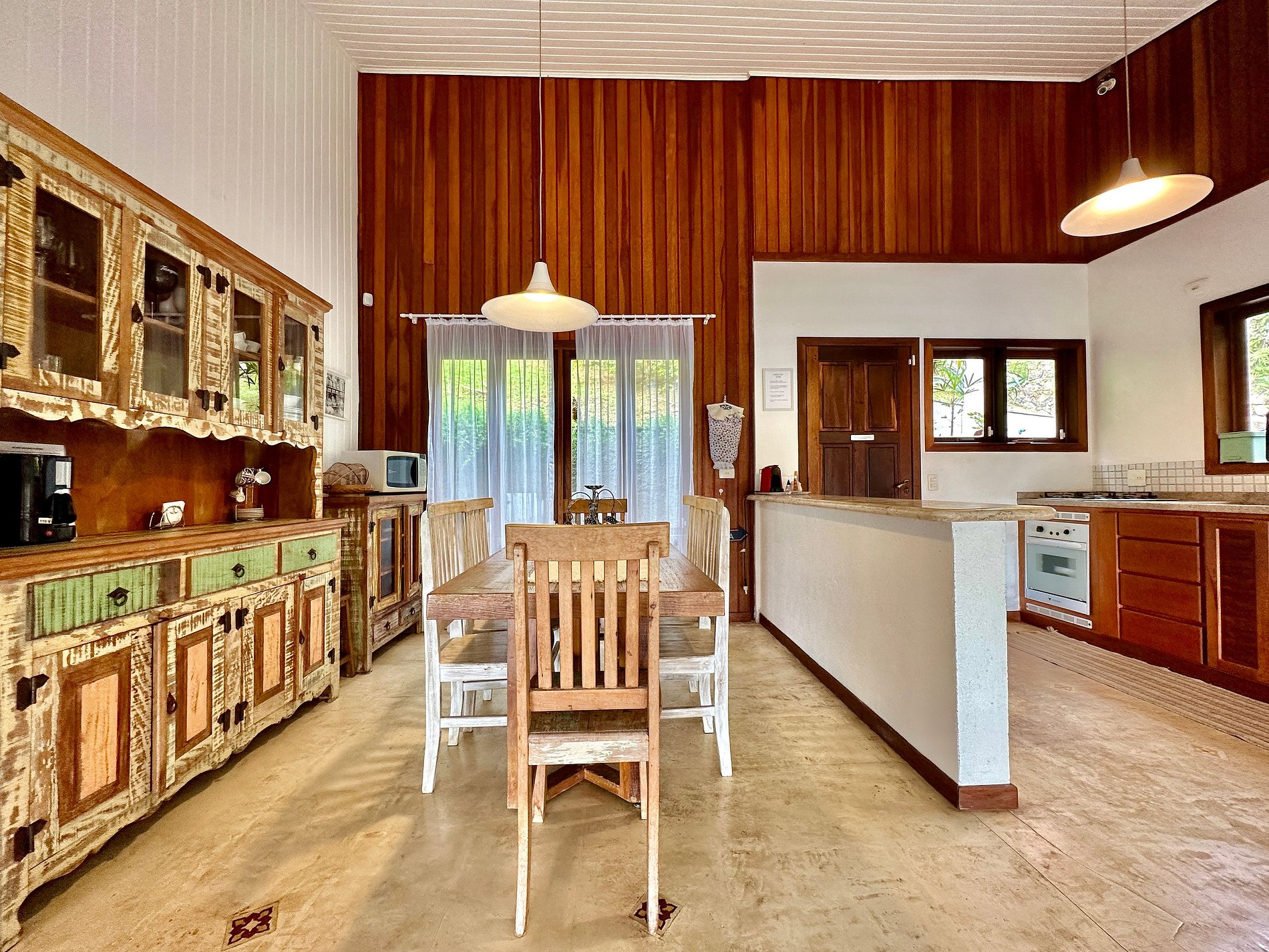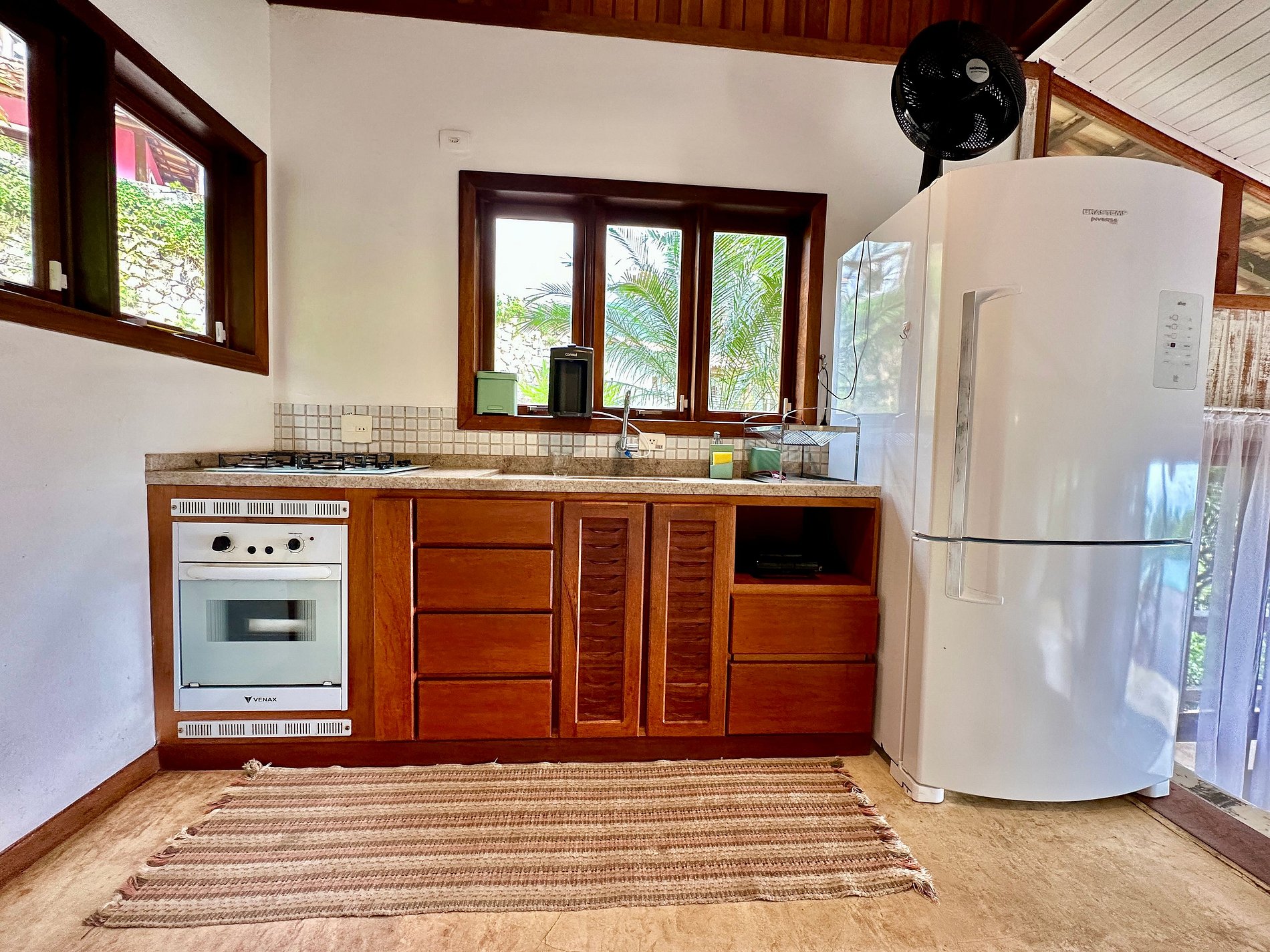 - Cozinha estilo americana, bem equipada e com sala de jantar integrada. A cozinha dispõe de fogão, forno, geladeira com freezer, micro-ondas, filtro de água, liquidificador, torradeira, cefeteira Nespresso, louças, talheres e demais utensílios necessários para uma estadia perfeita;