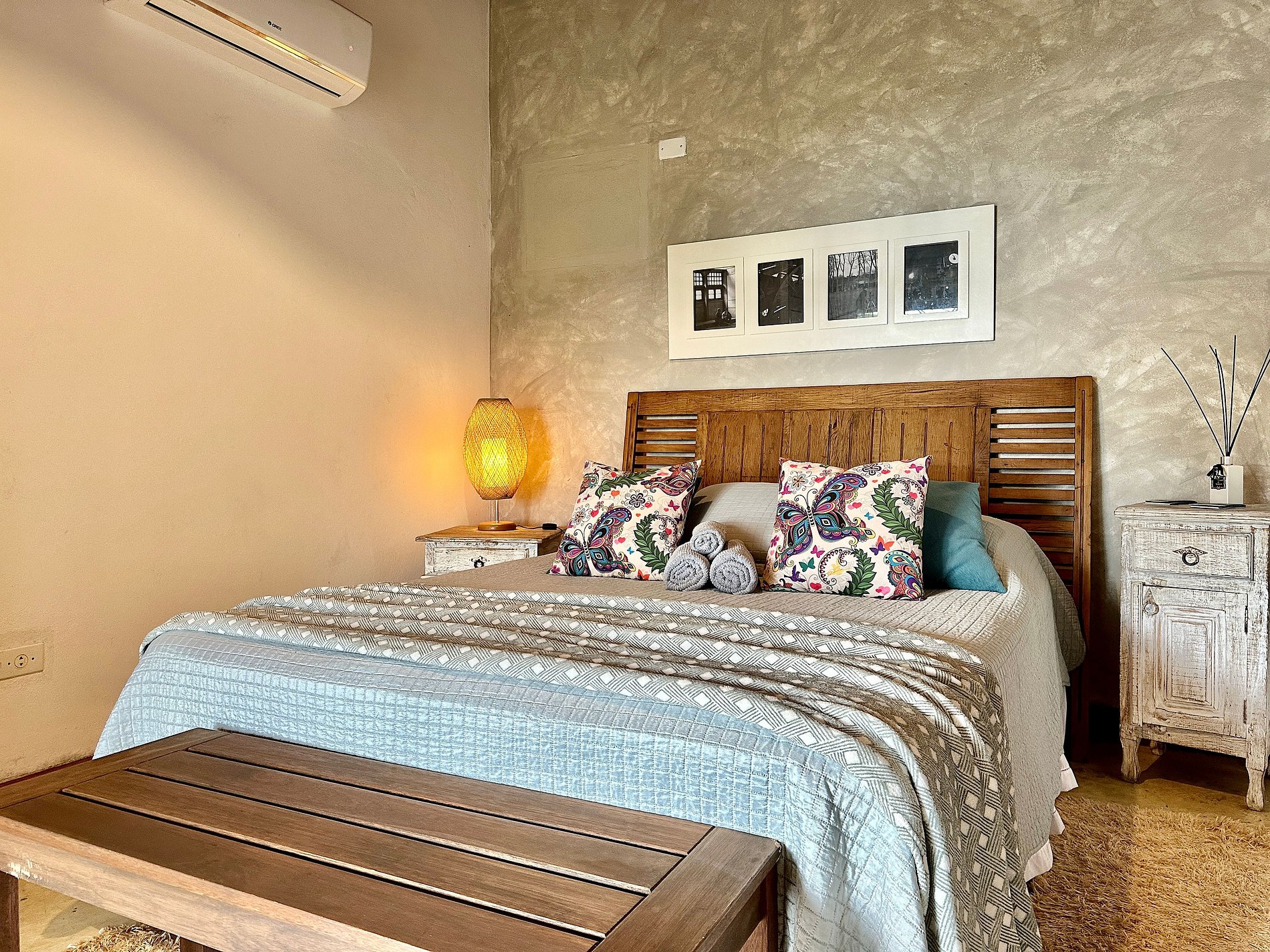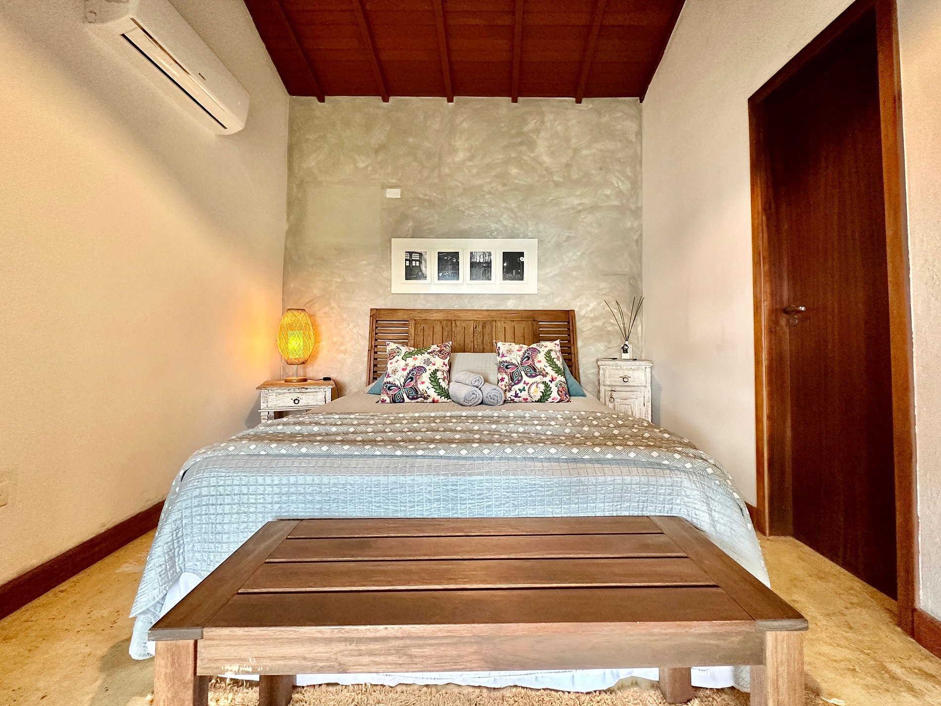 Suíte (interna) - 1 cama de casal queen, armário e ar-condicionado;
