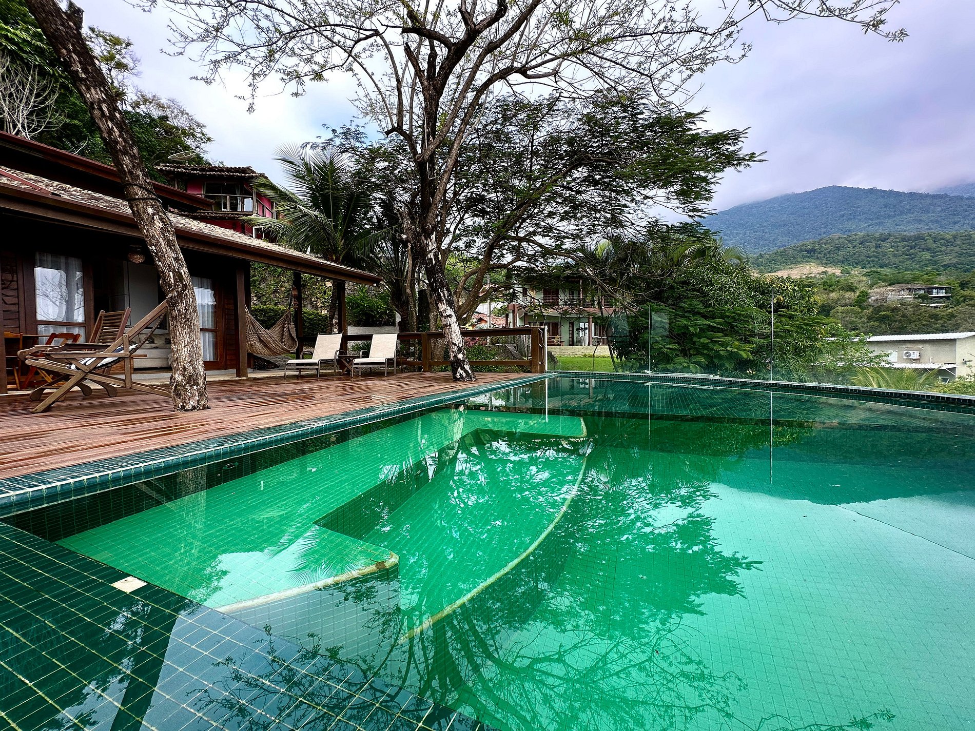 Experiência acolhedora com vista incrível para a belíssima Praia do Curral, uma das mais badaladas ao Sul de Ilhabela. Ideal para 08 pessoas. São 2 quartos e 1 suíte, todos com ar-condicionado. Área externa com churrasqueira, ducha, varanda integrada a um deck de madeira e uma piscina de borda infinita deslumbrante. A área interna conta com salas de estar, TV, jantar e uma cozinha completa. Estarão disponíveis Smart TV com acesso a Netflix e Wi-fi. *Pet friendly, taxa de R$ 200/dia/por pet.