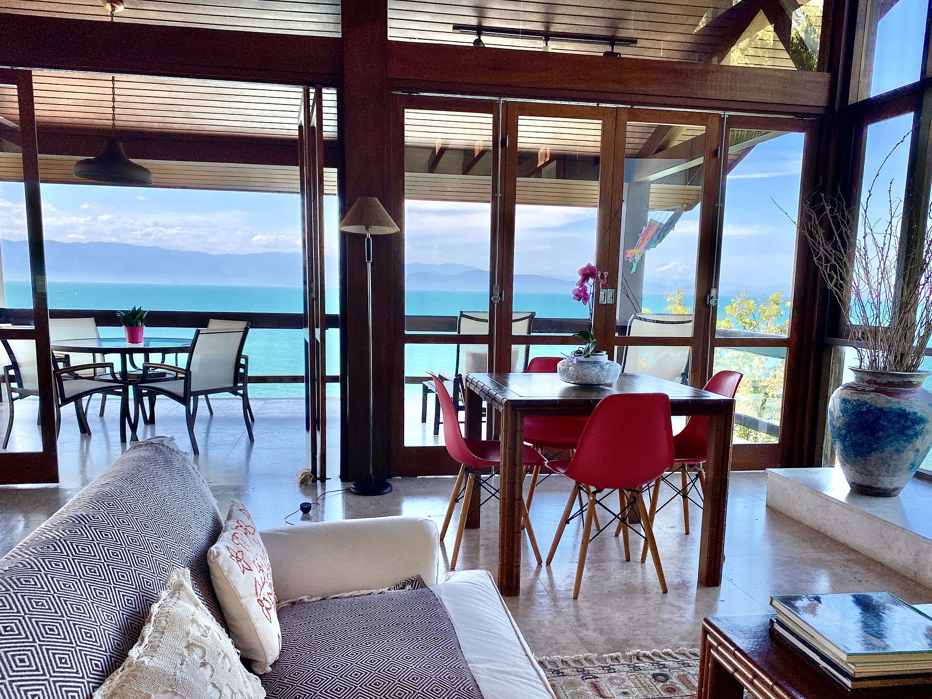 - Construída em uma das costeiras mais belas da ilha, totalmente integrada à natureza e com vista para o mar de quase todos os seus ambientes, essa casa de 3 andares é um espetáculo! Ao abrir a porta principal, tem-se a sensação de que está em um navio, tamanha a beleza da vista;