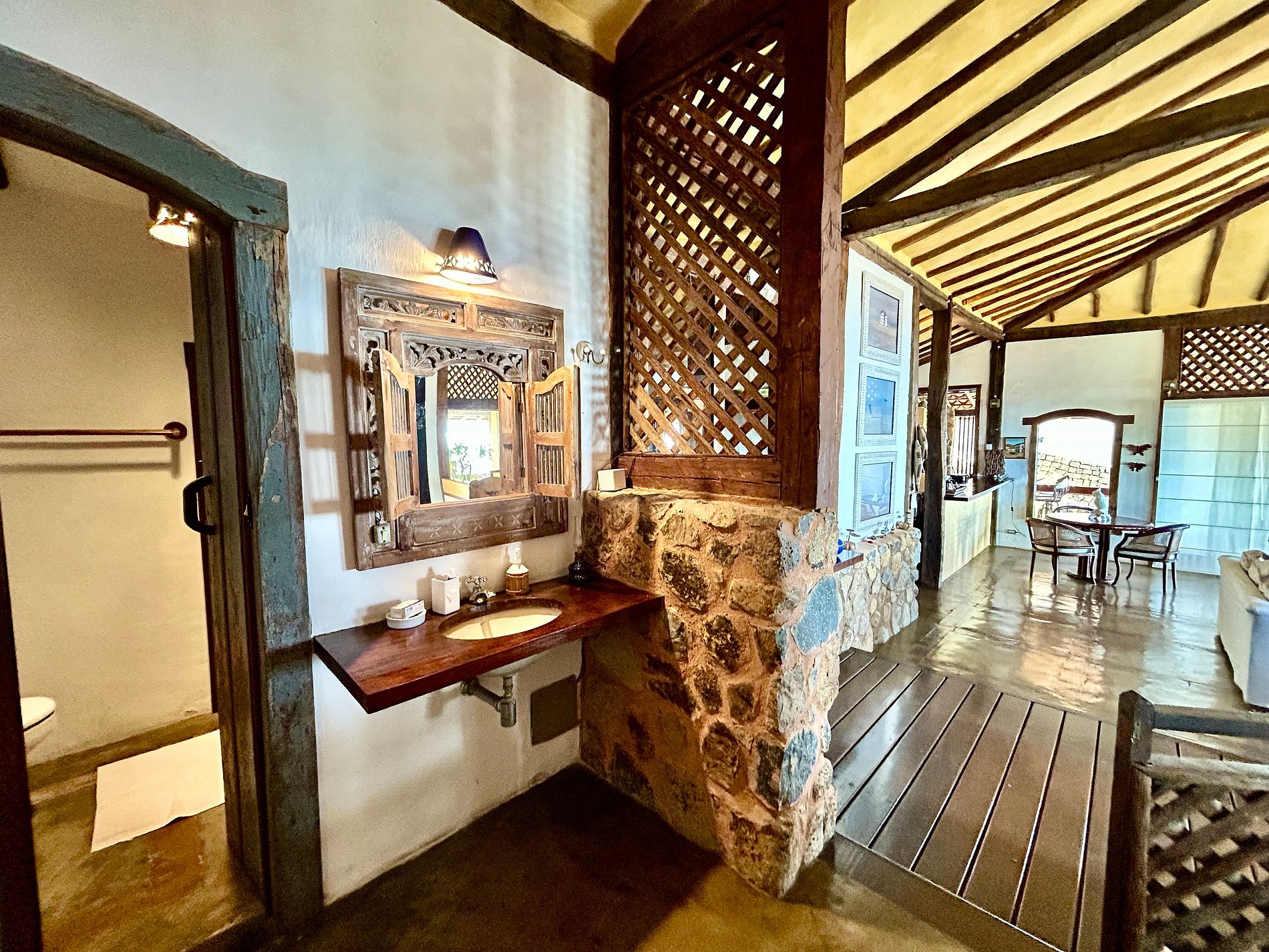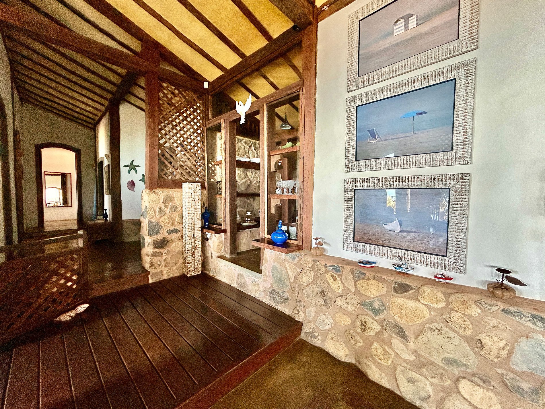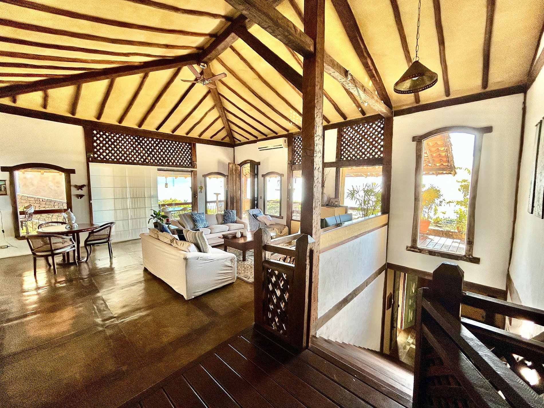 - O ambiente interno concentra a sala de estar climatizada, TV com canais a cabo, lareira, banheiro e cozinha completa e está integrado à varanda gourmet com churrasqueira, mesa para refeições e um balcão, com uma vista deslumbrante para mar e montanha;