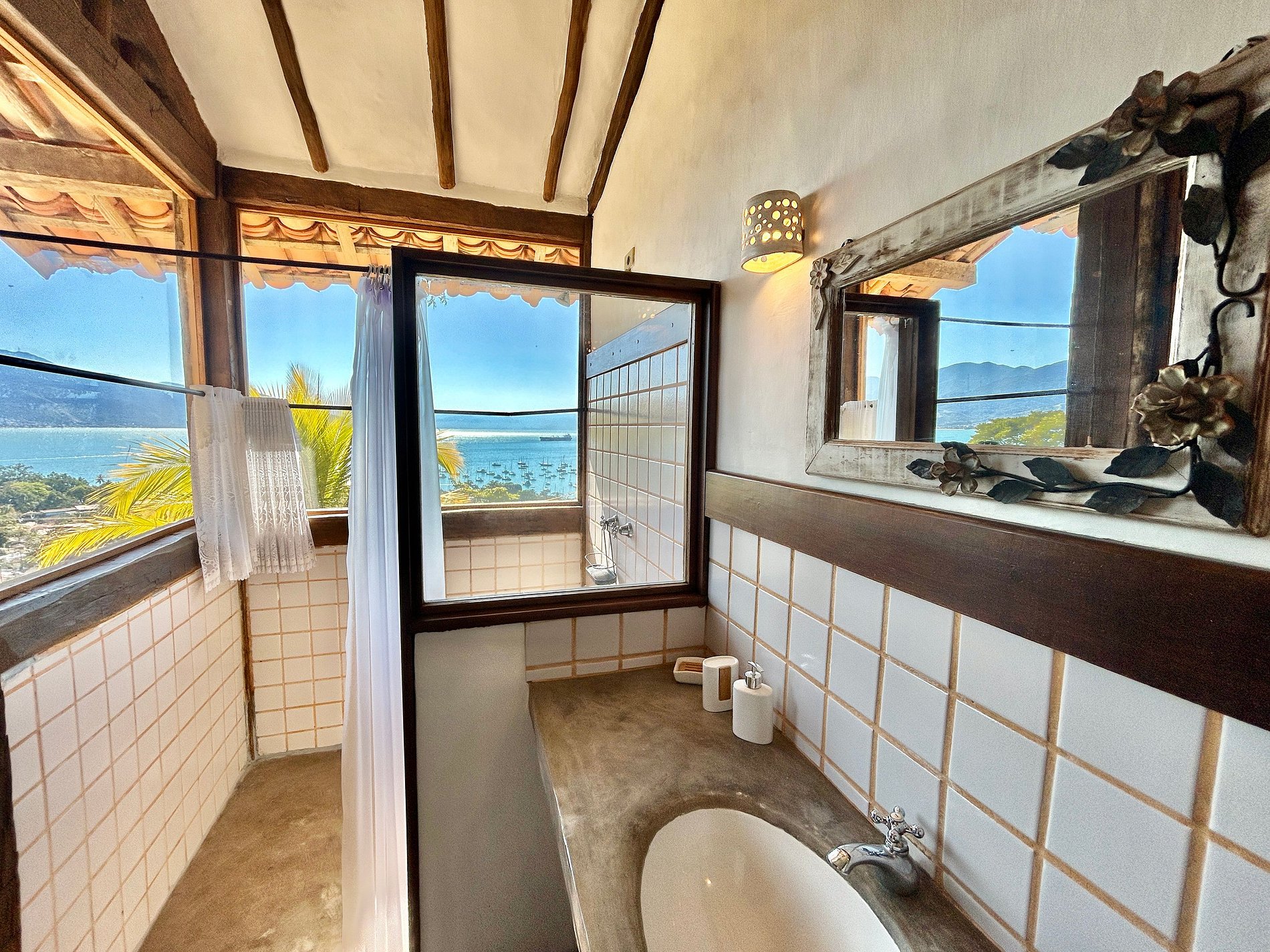 Desfrute momentos inesquecíveis com família e amigos nesta linda casa na Praia do Engenho D'Água, a apenas 1,6 km da Vila Histórica. Com vista incrível para o mar e montanhas, acomoda até 14 pessoas em 3 suítes e 2 quartos com ar-condicionado. Ambientes integrados, sala climatizada com lareira, cozinha completa, varanda gourmet com churrasqueira, jardim e piscina. Viva o melhor de Ilhabela!